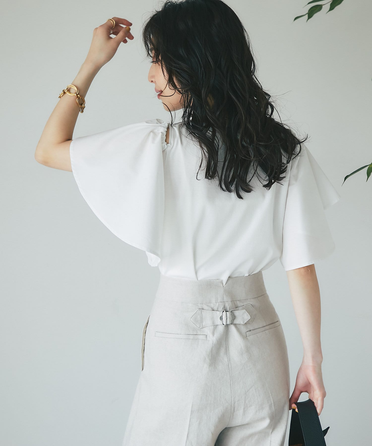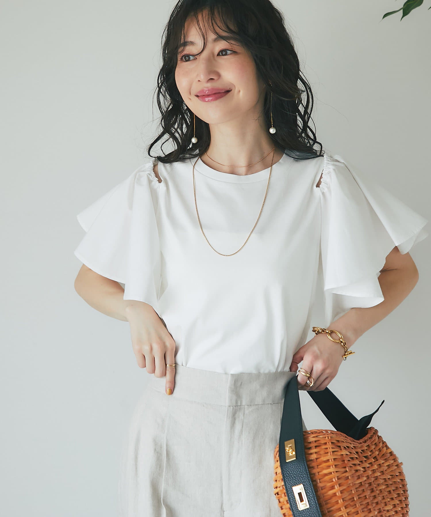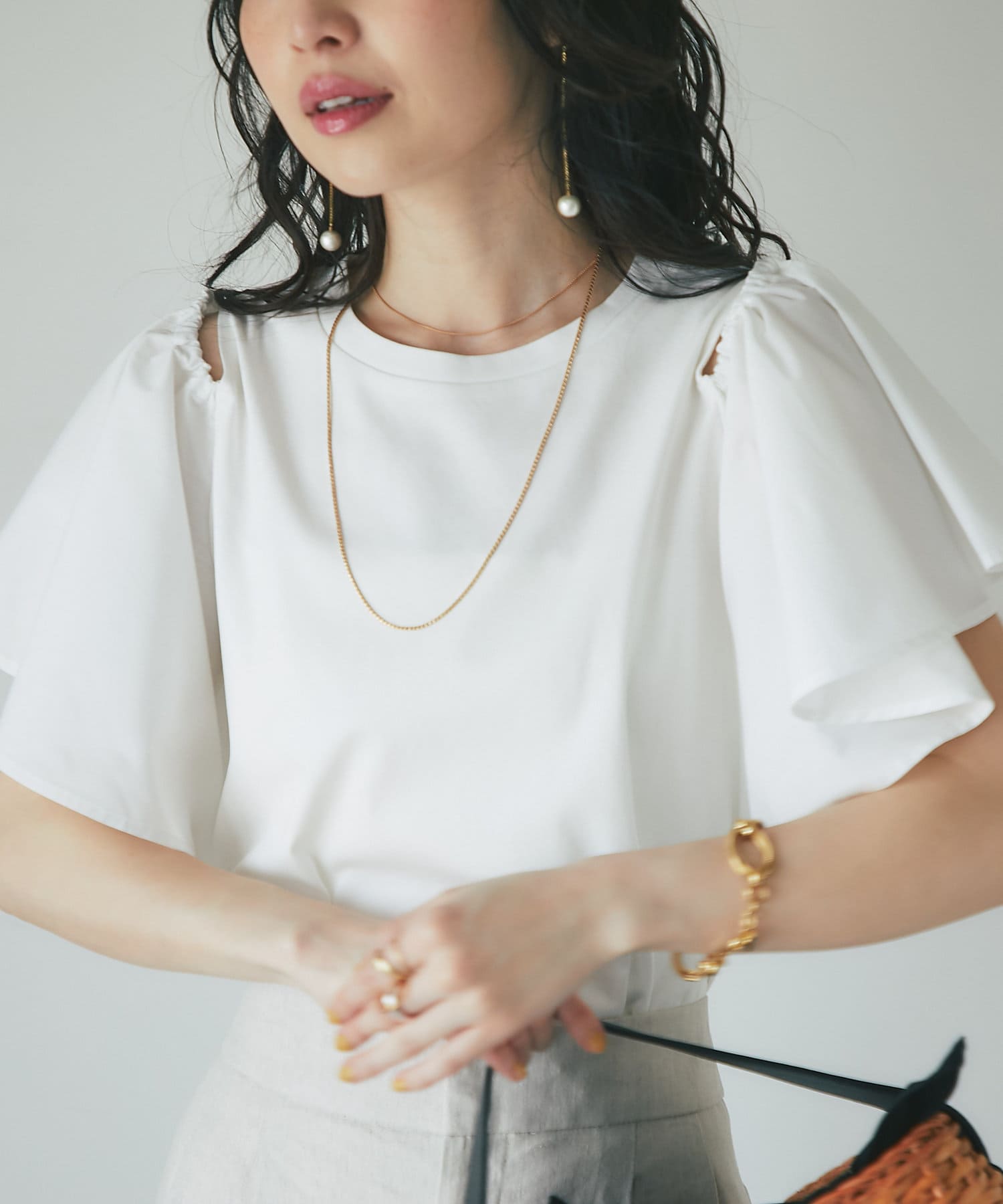 【最強魅力·3WAY】異素材荷葉袖T恤