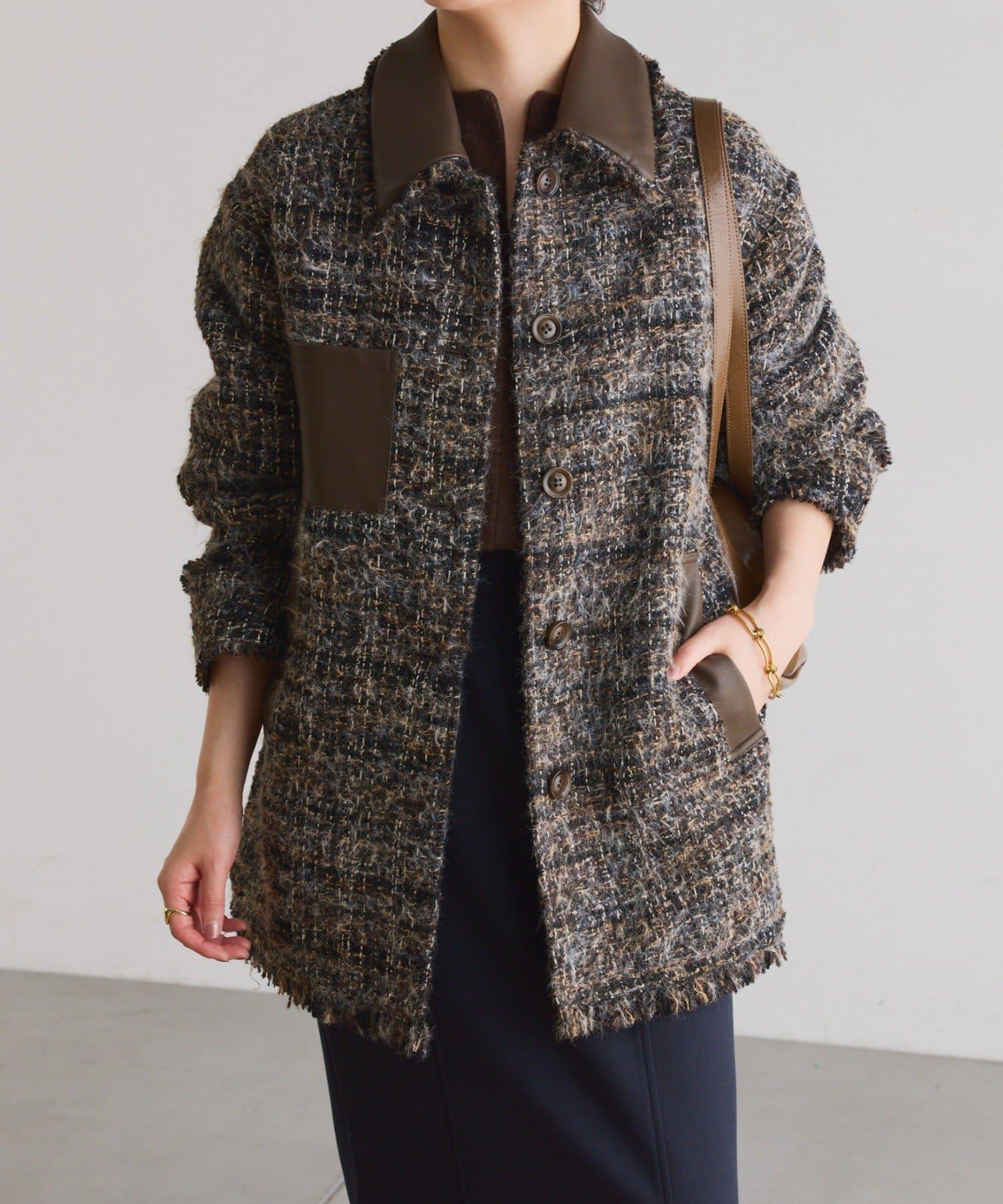 領口、袖口和下襬處的流蘇增添了斜紋軟呢的質感。