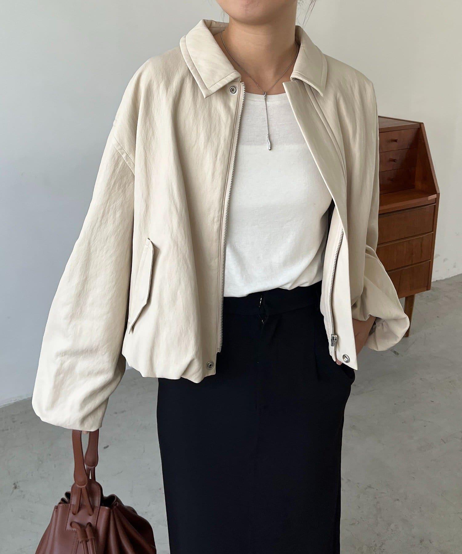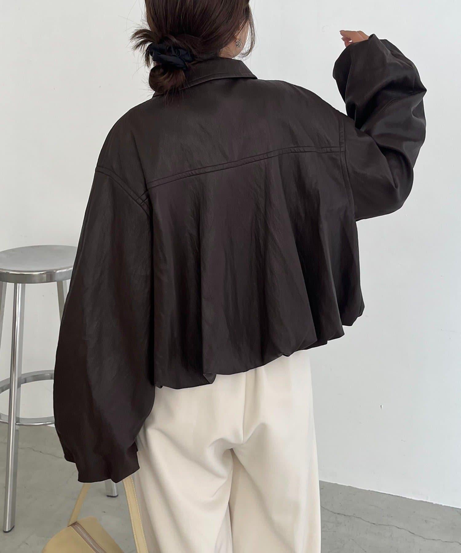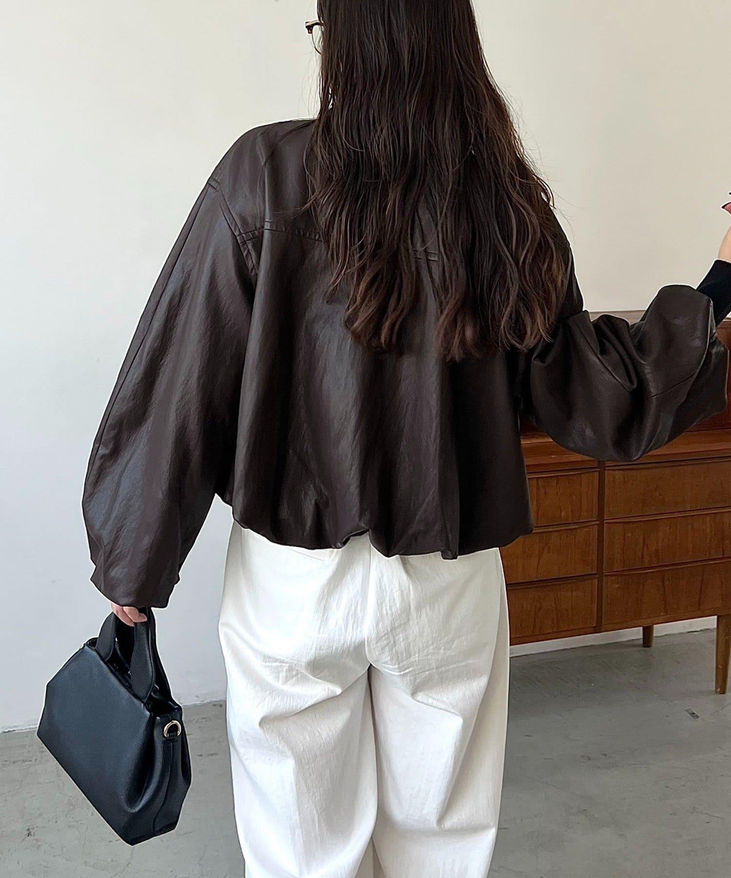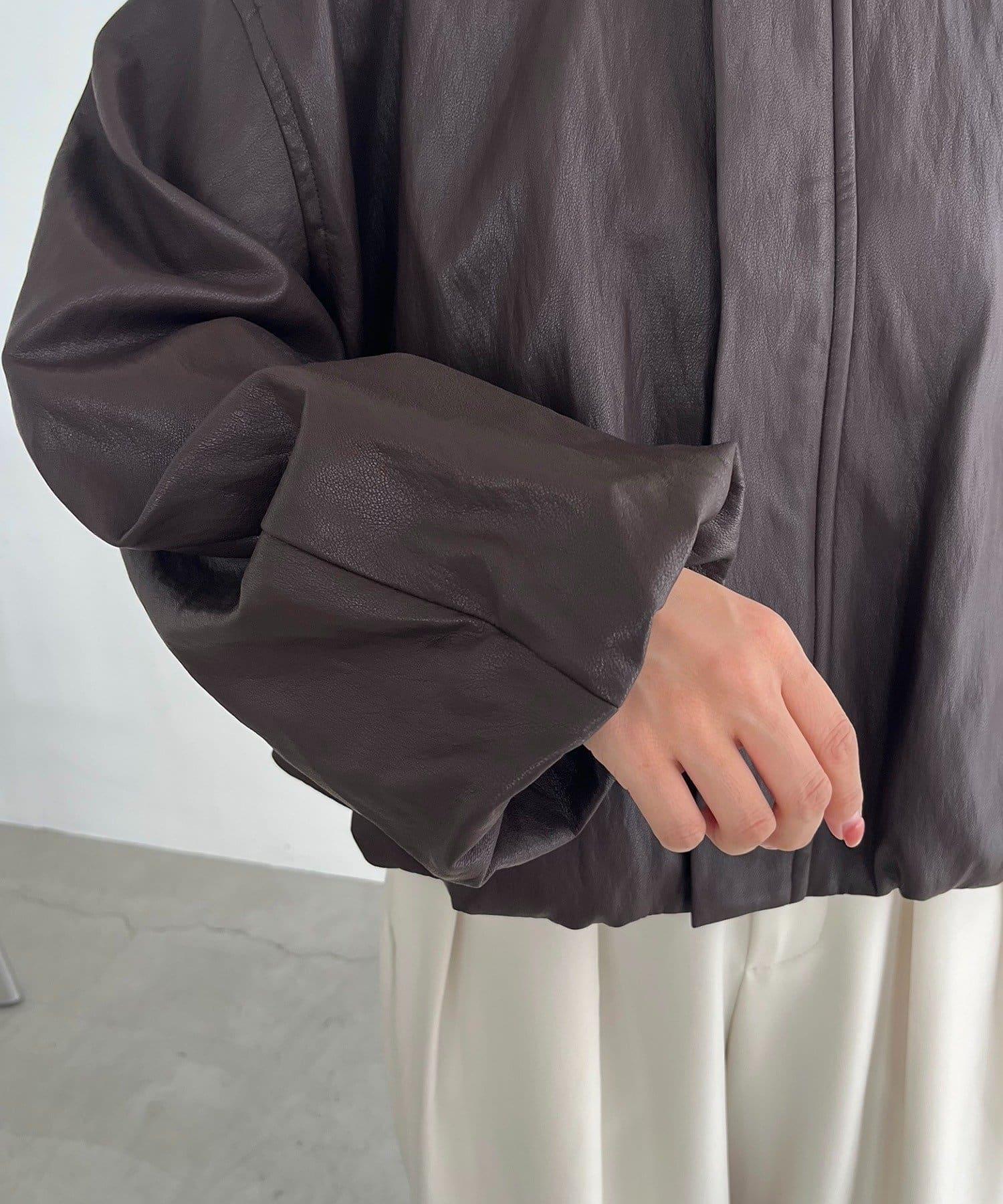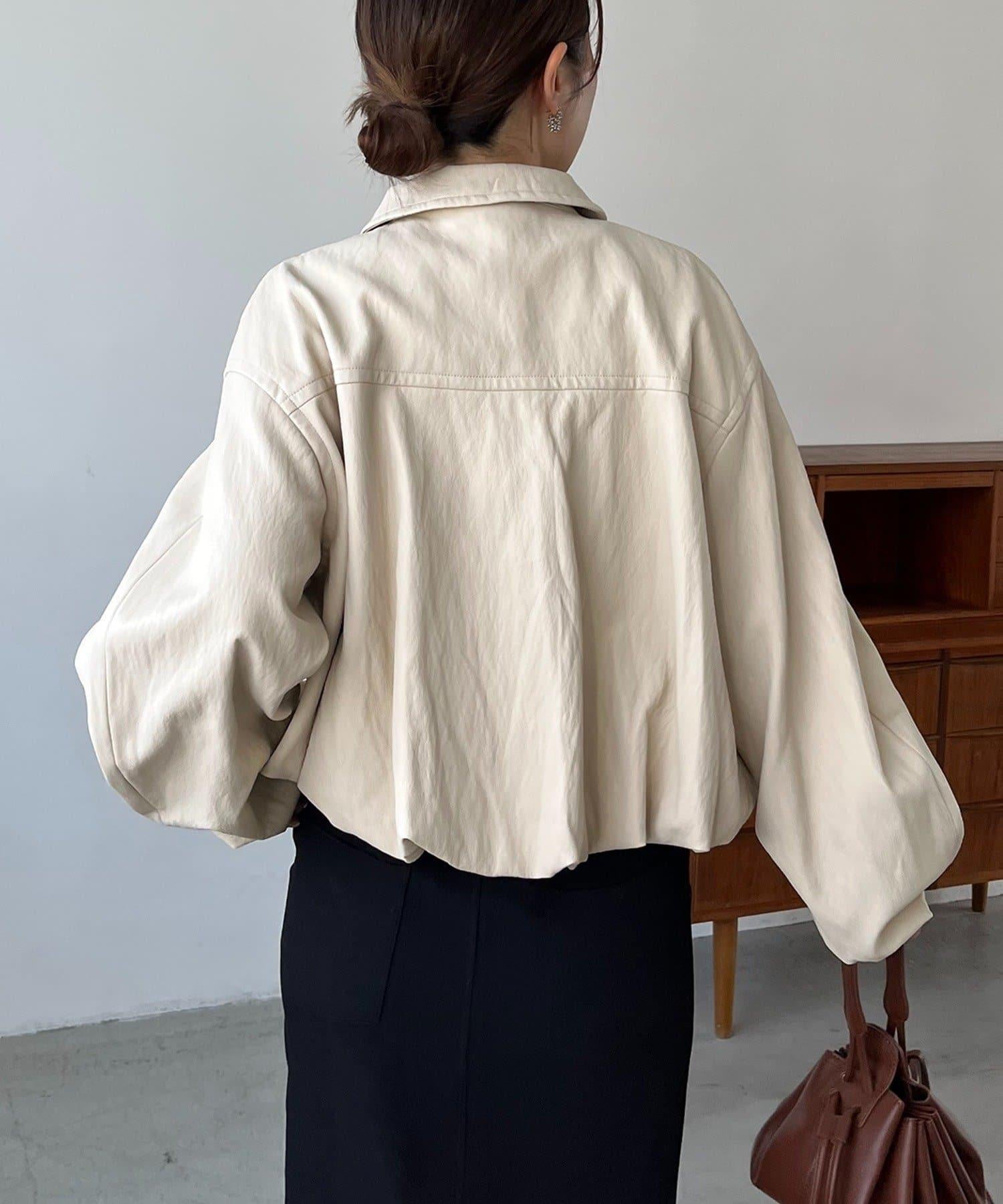 【有多種尺碼/輕量】泡泡袖皮革夾克