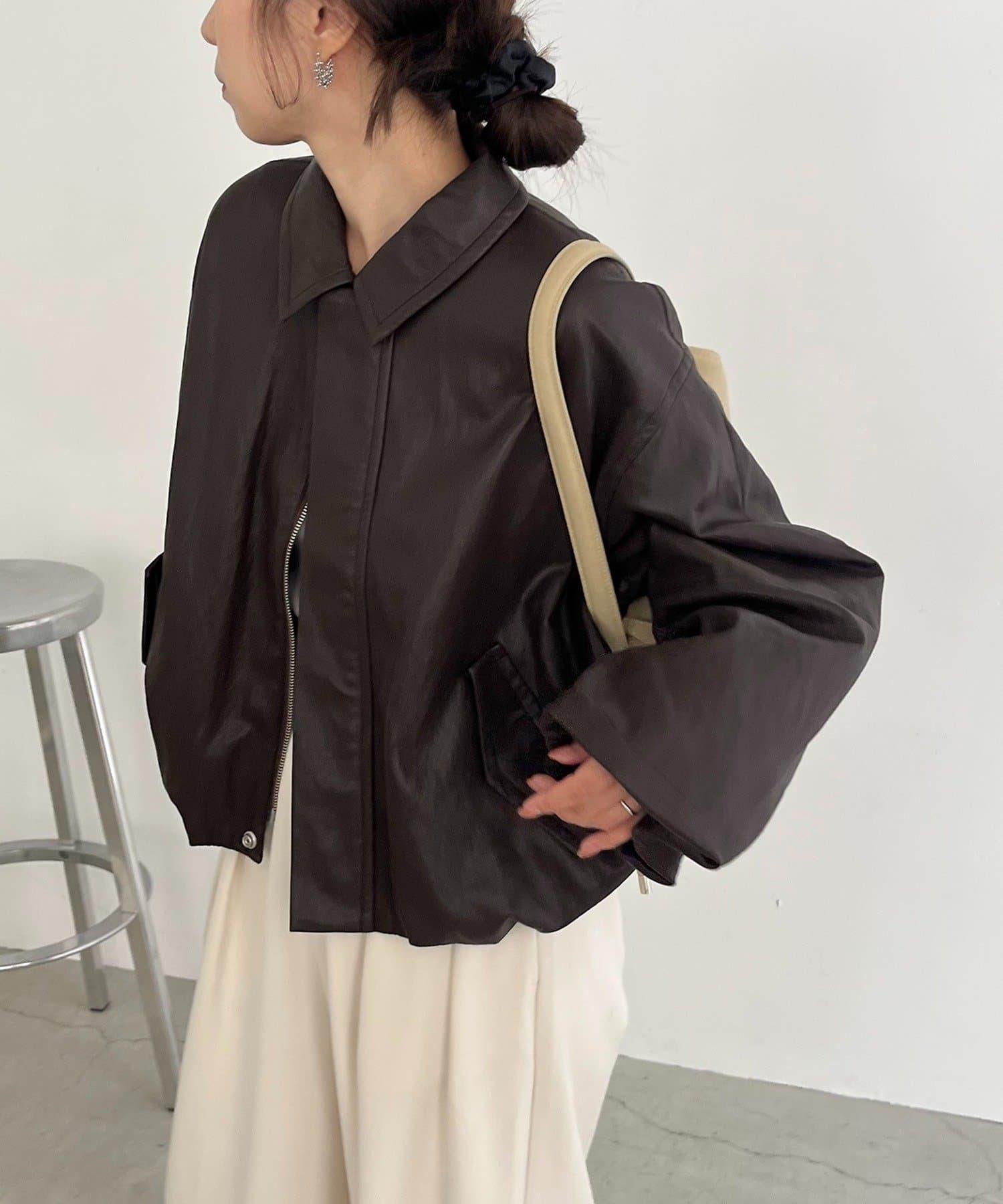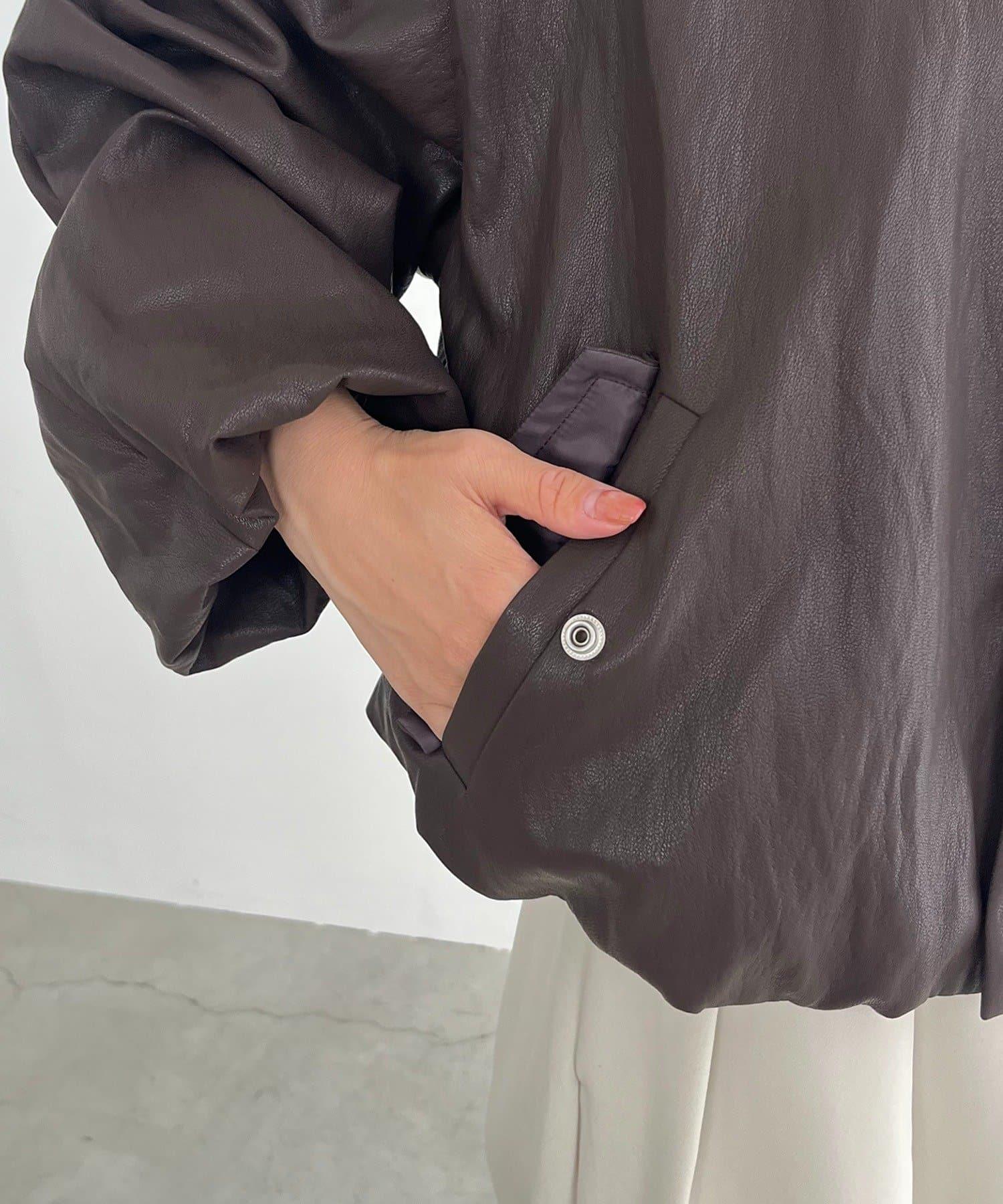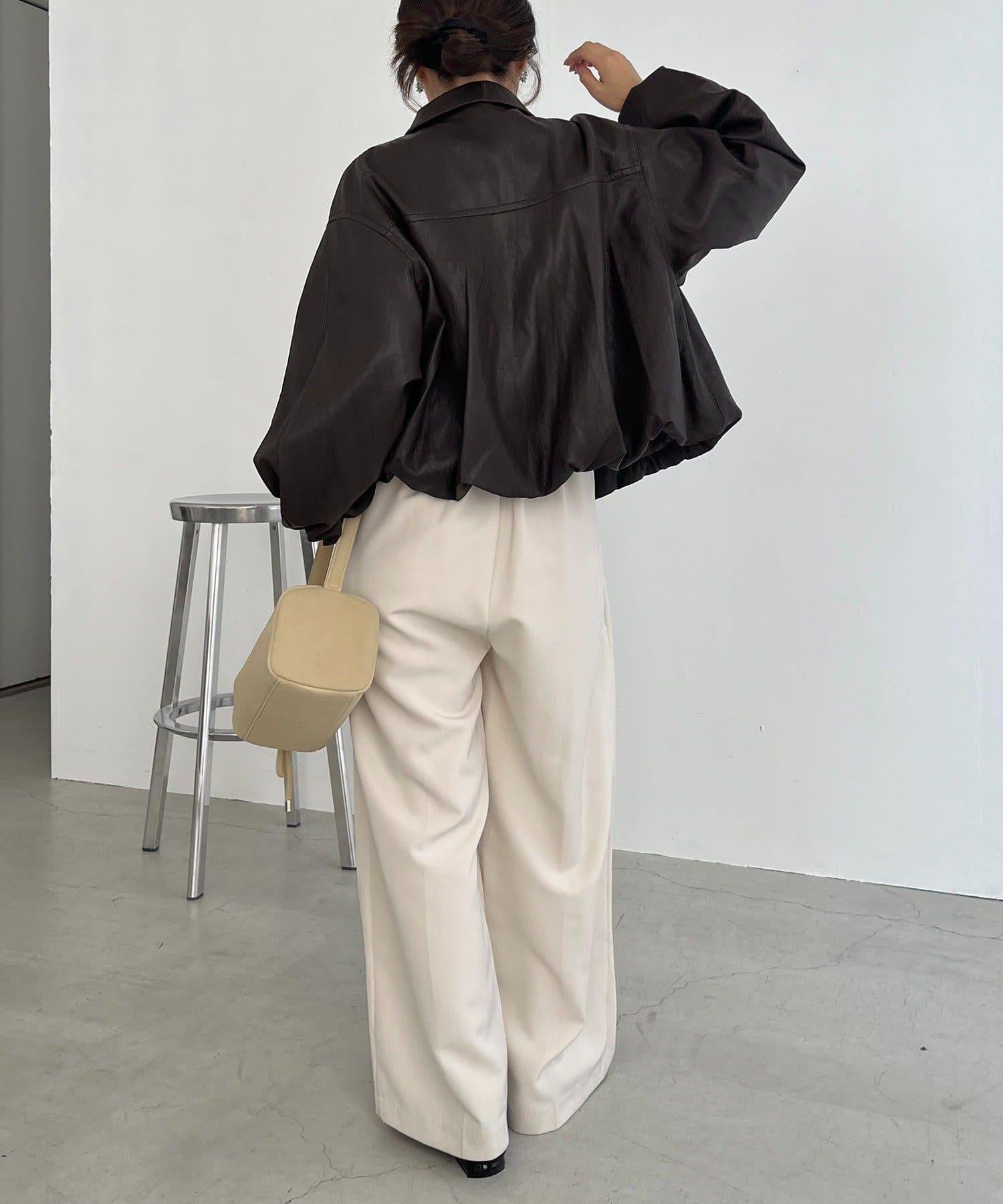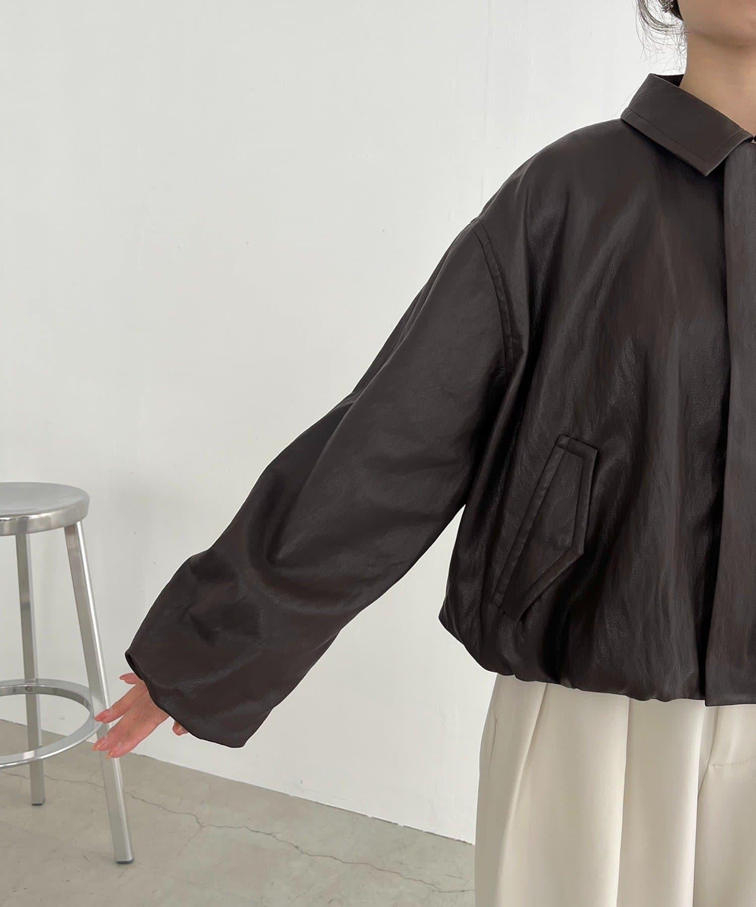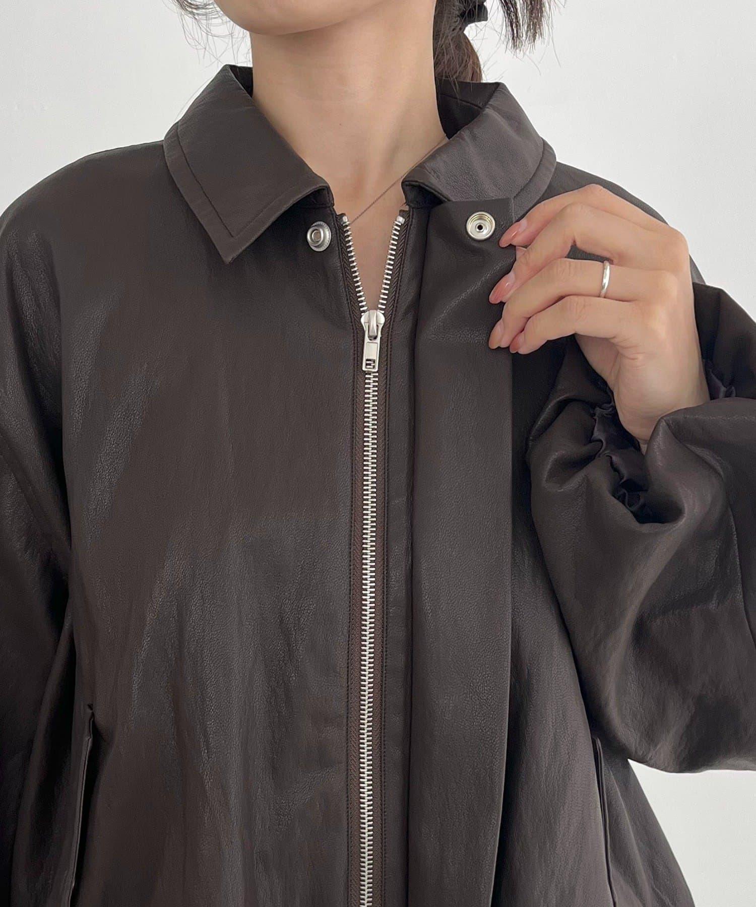 【有多種尺碼/輕量】泡泡袖皮革夾克