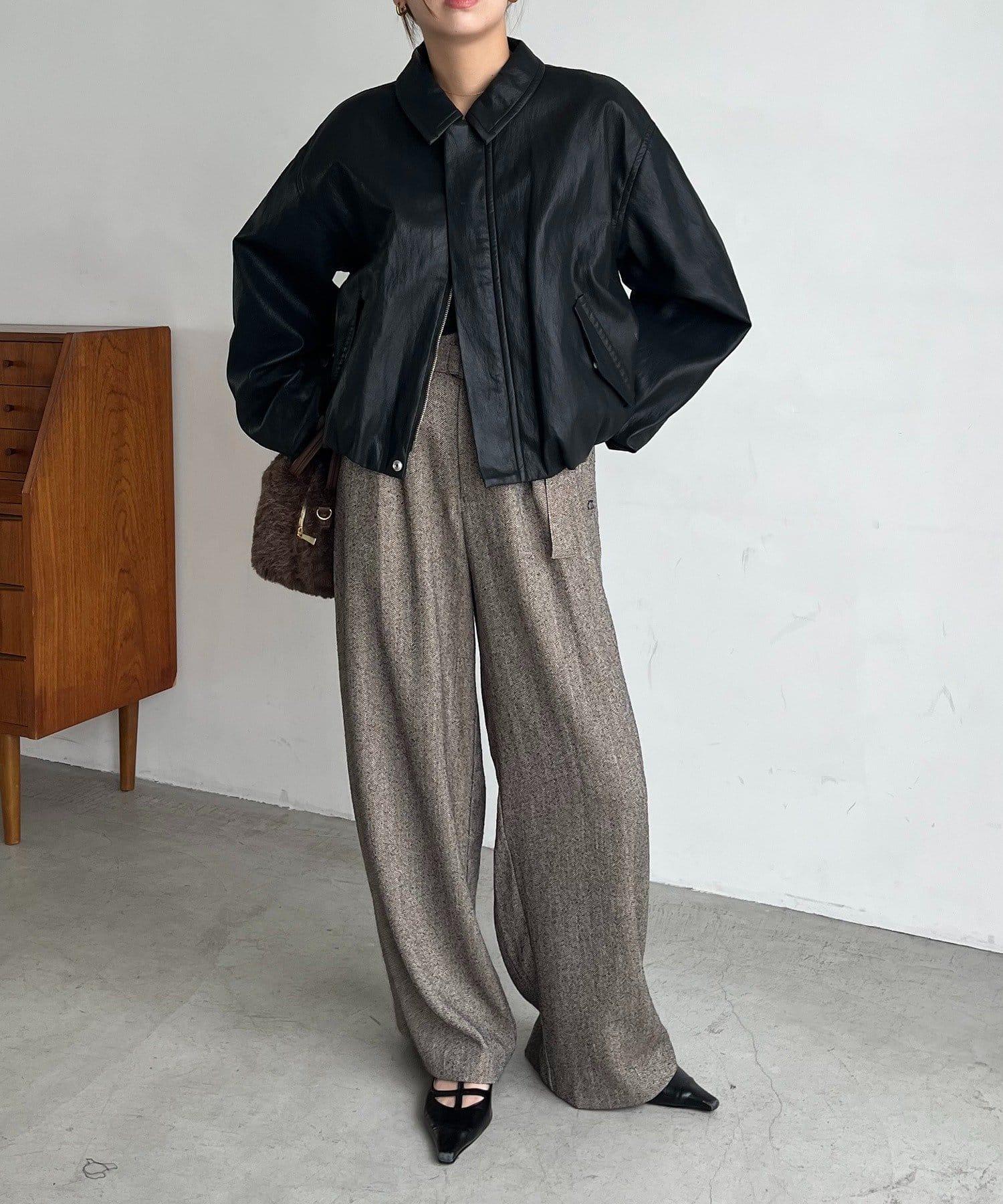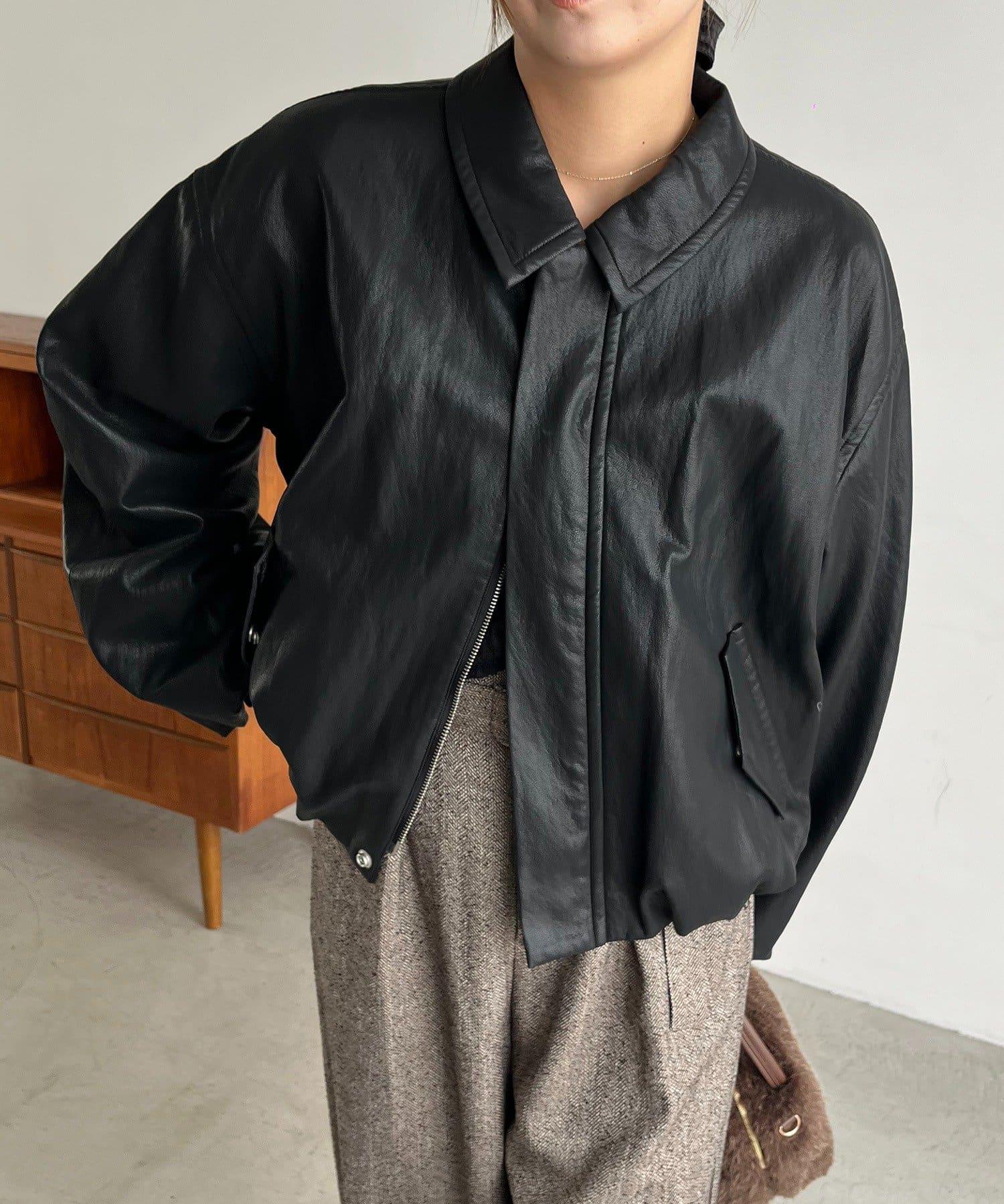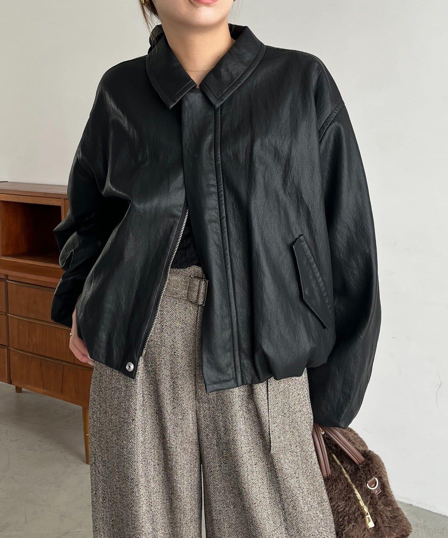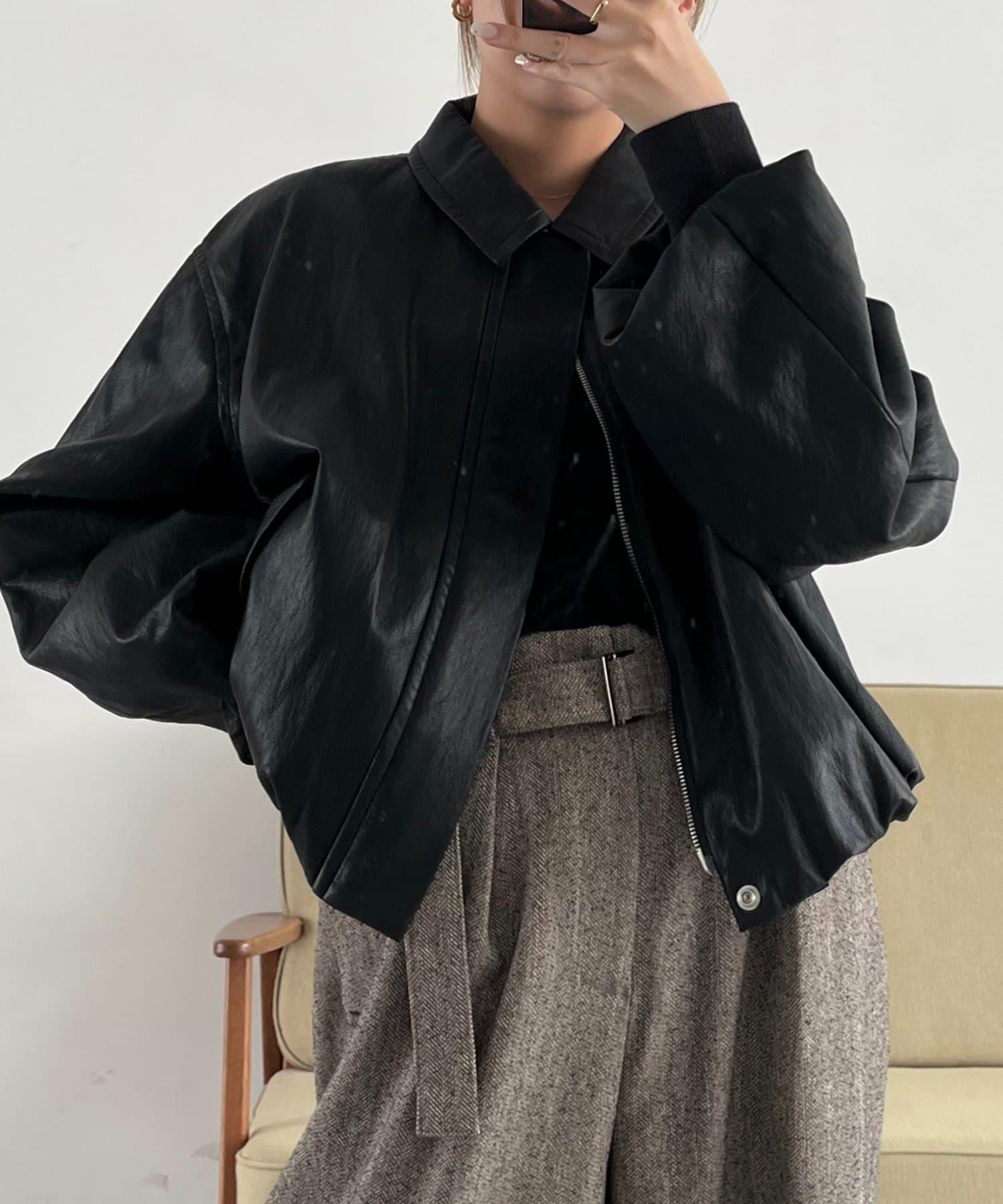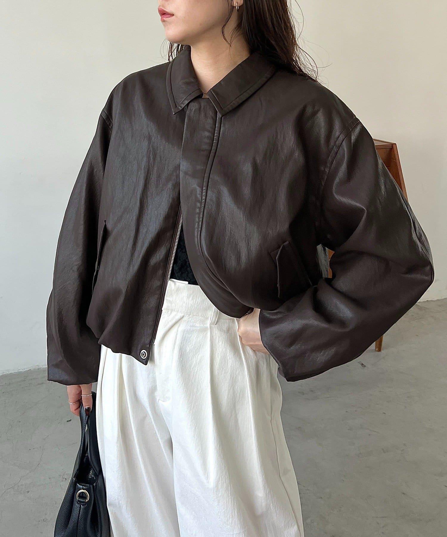 【有多種尺碼/輕量】泡泡袖皮革夾克
