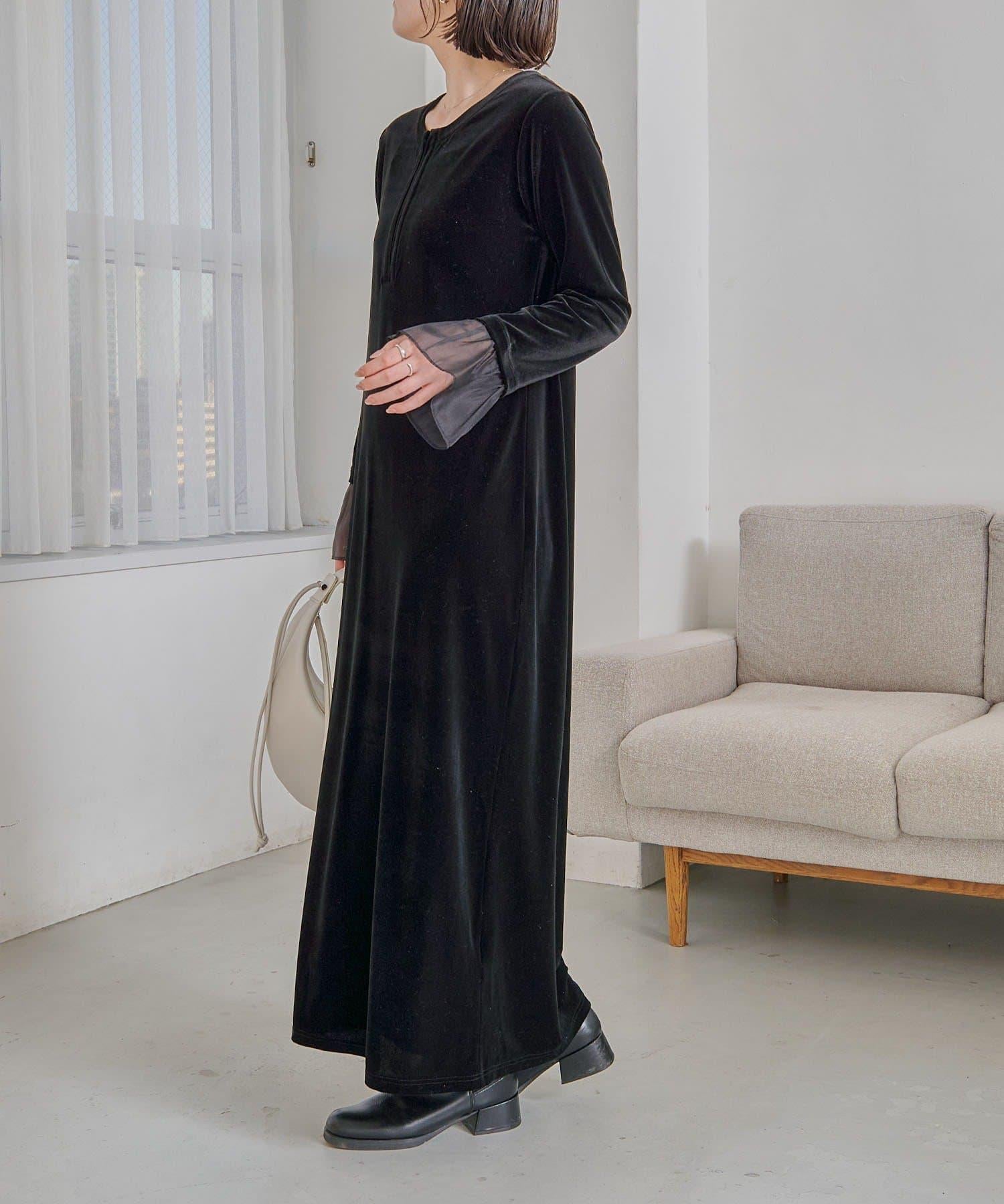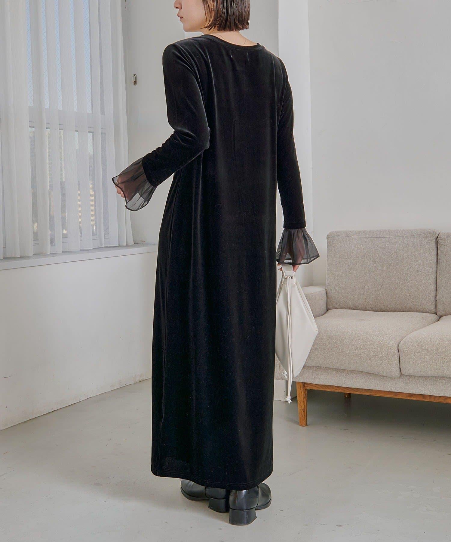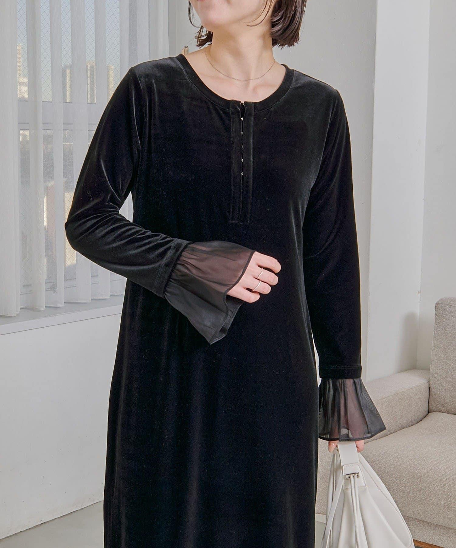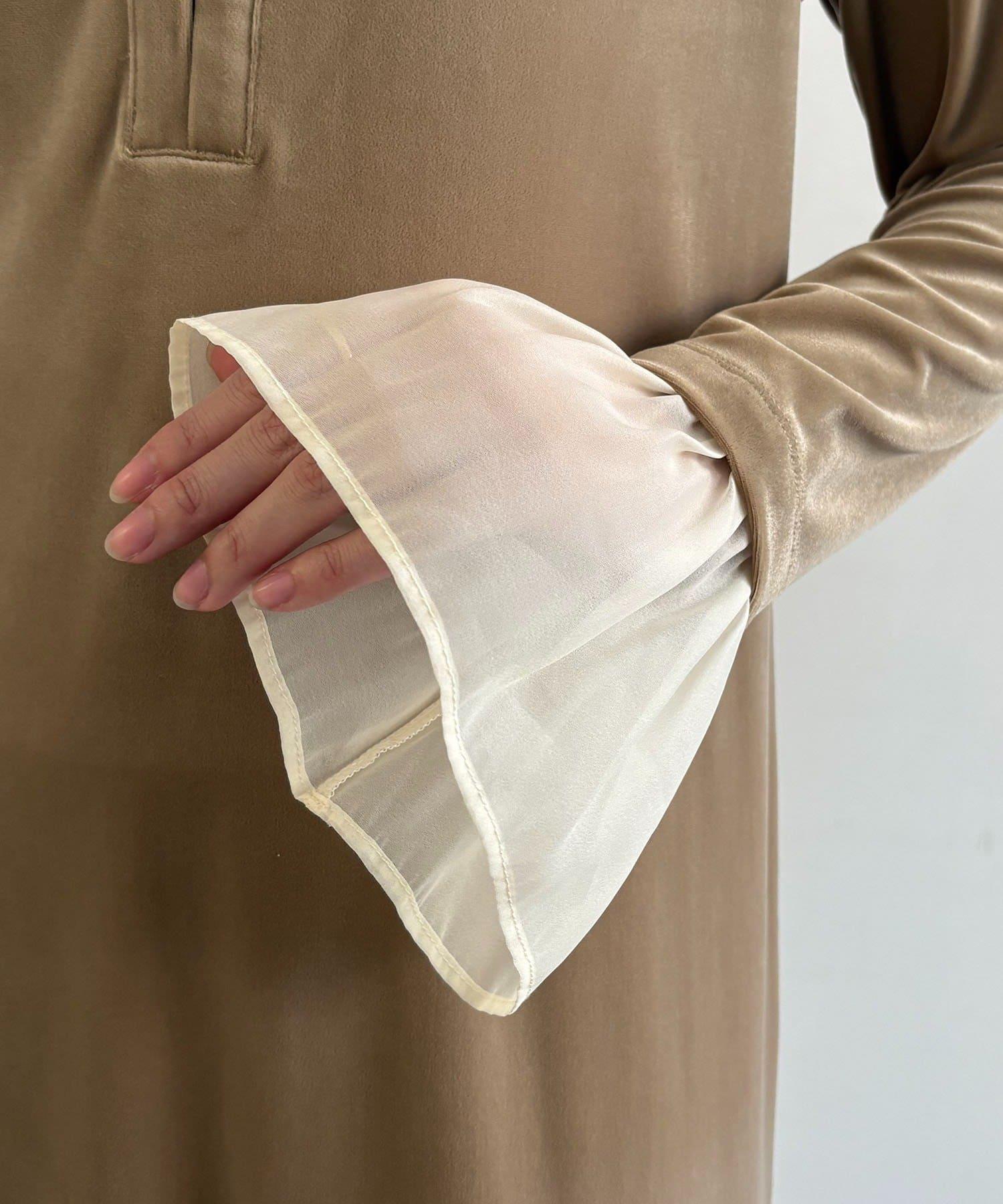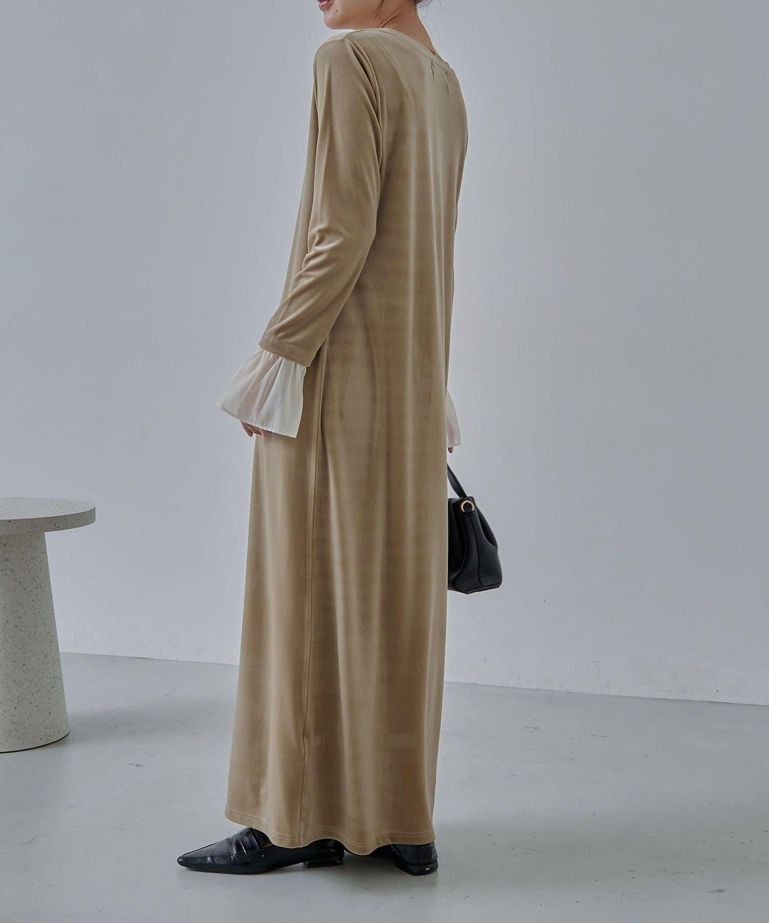 【有小個子尺碼】喇叭袖天鵝絨連衣裙