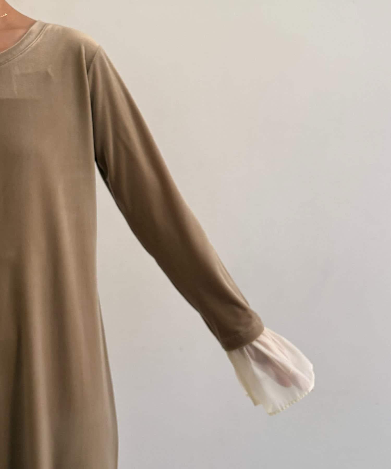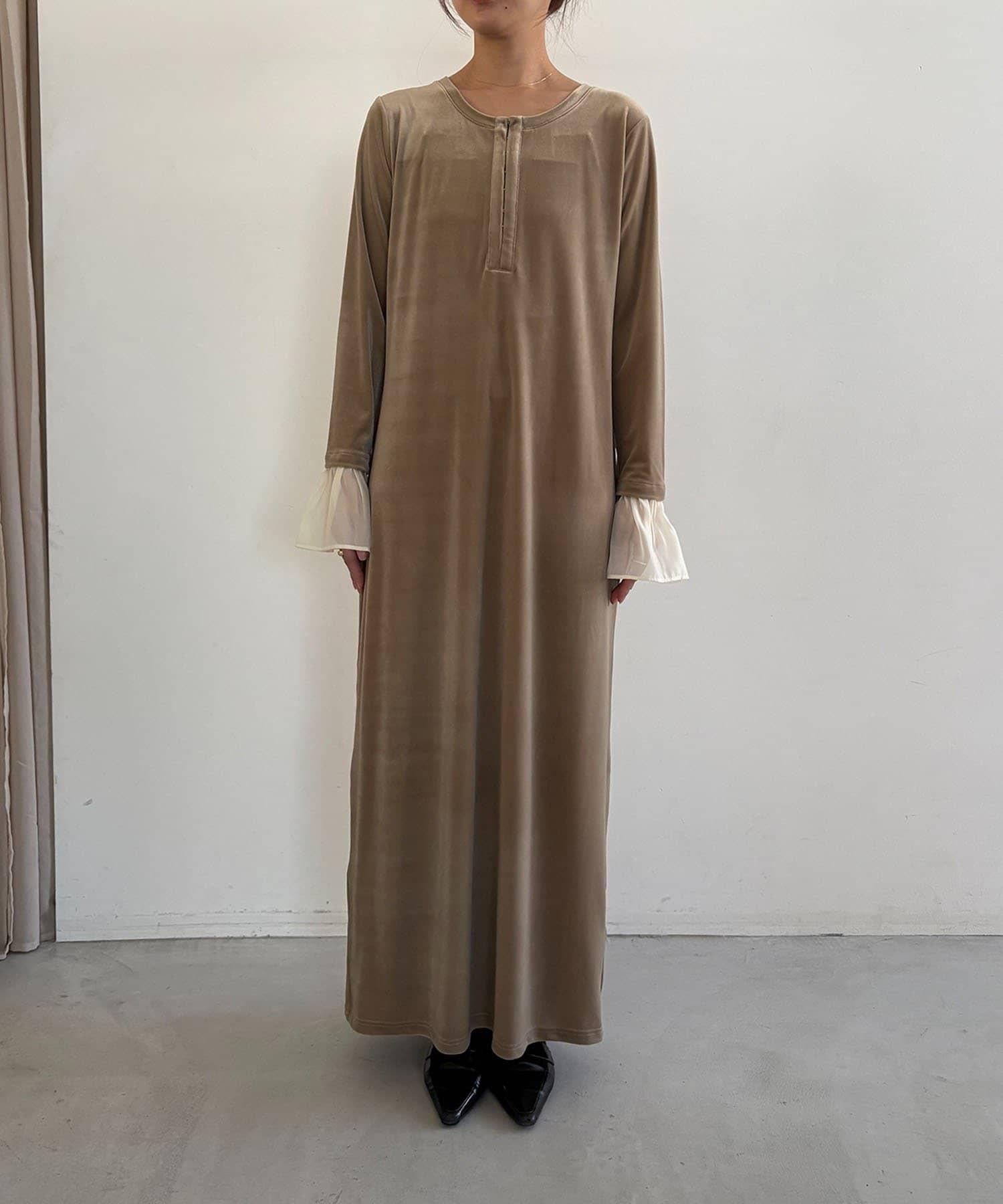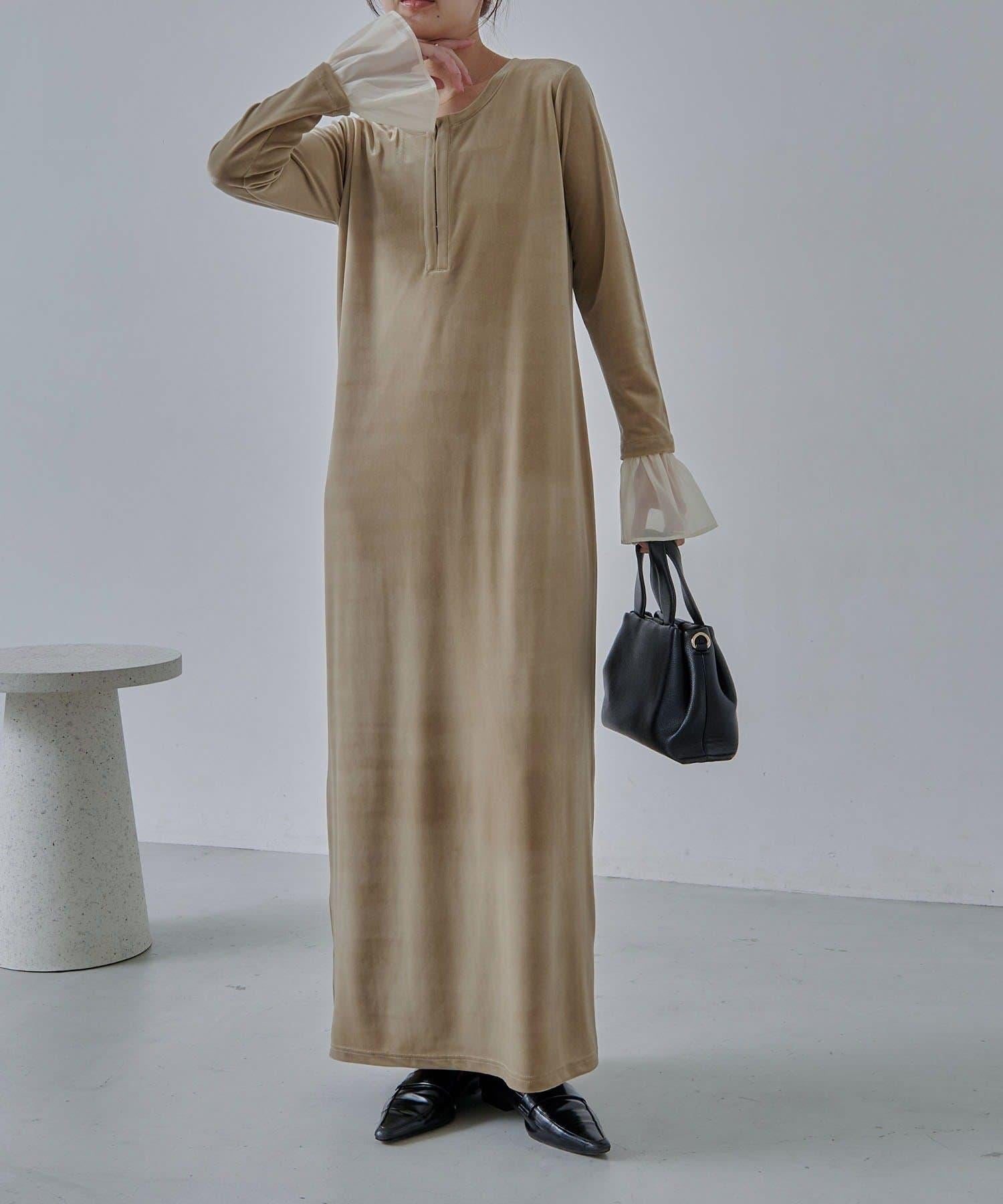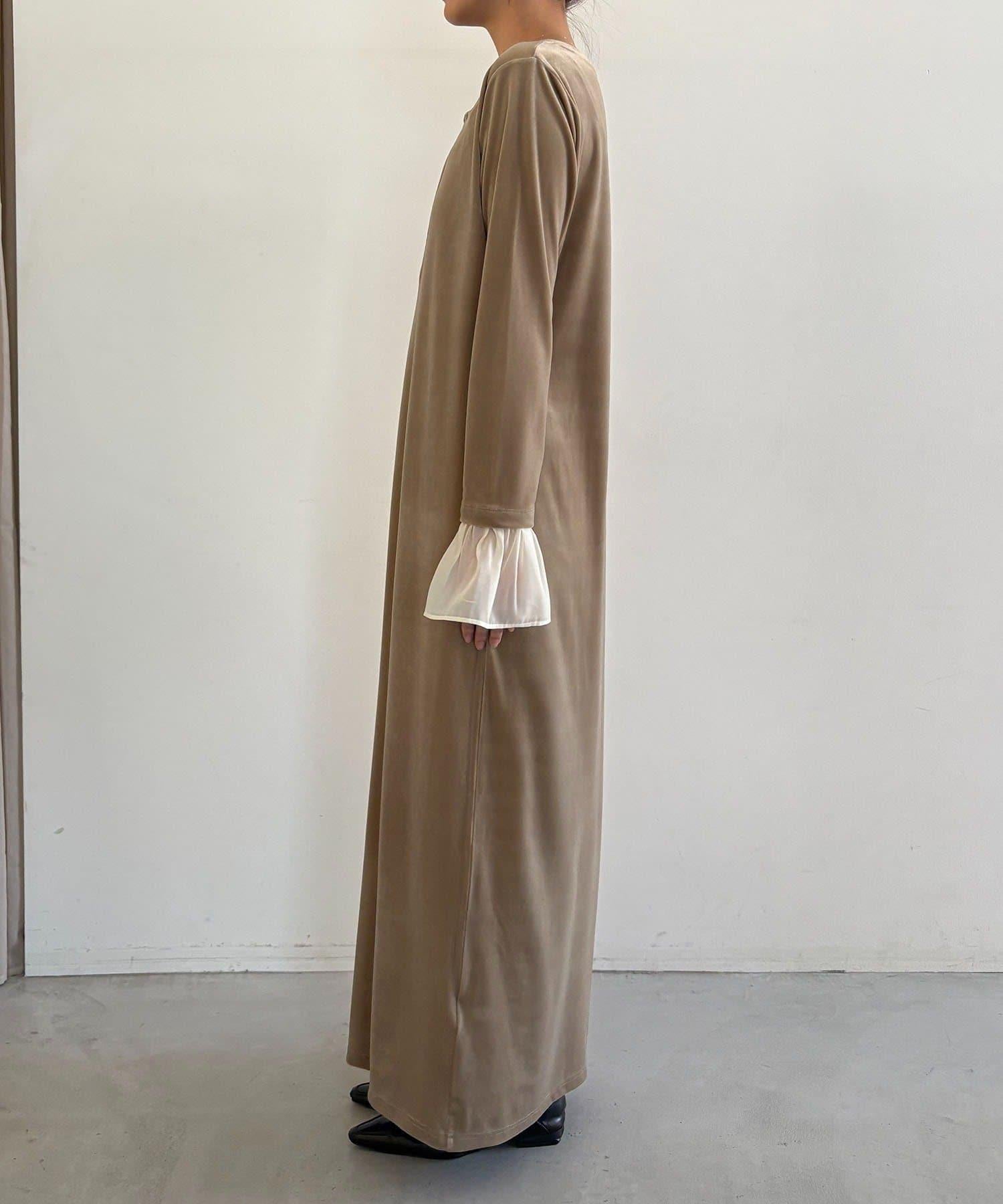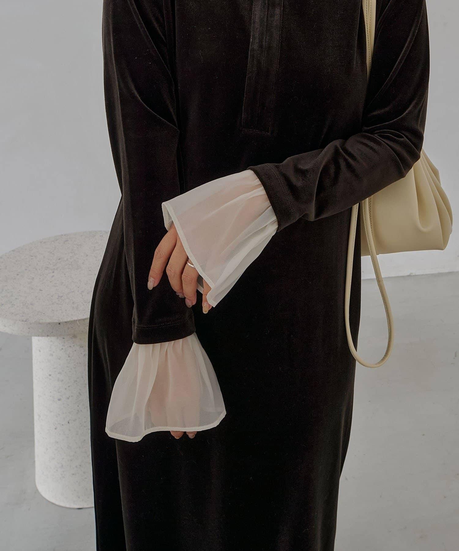 【有小個子尺碼】喇叭袖天鵝絨連衣裙