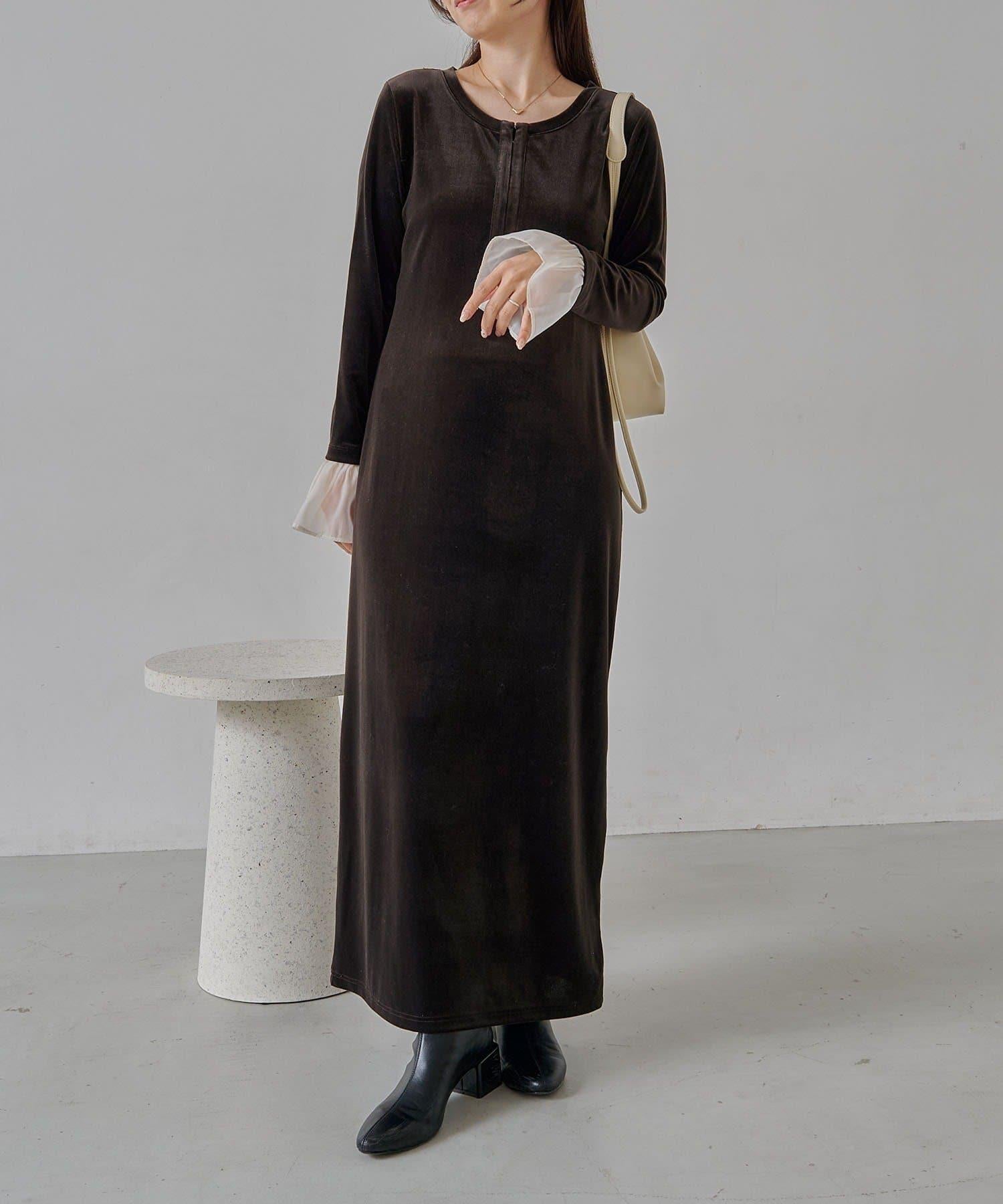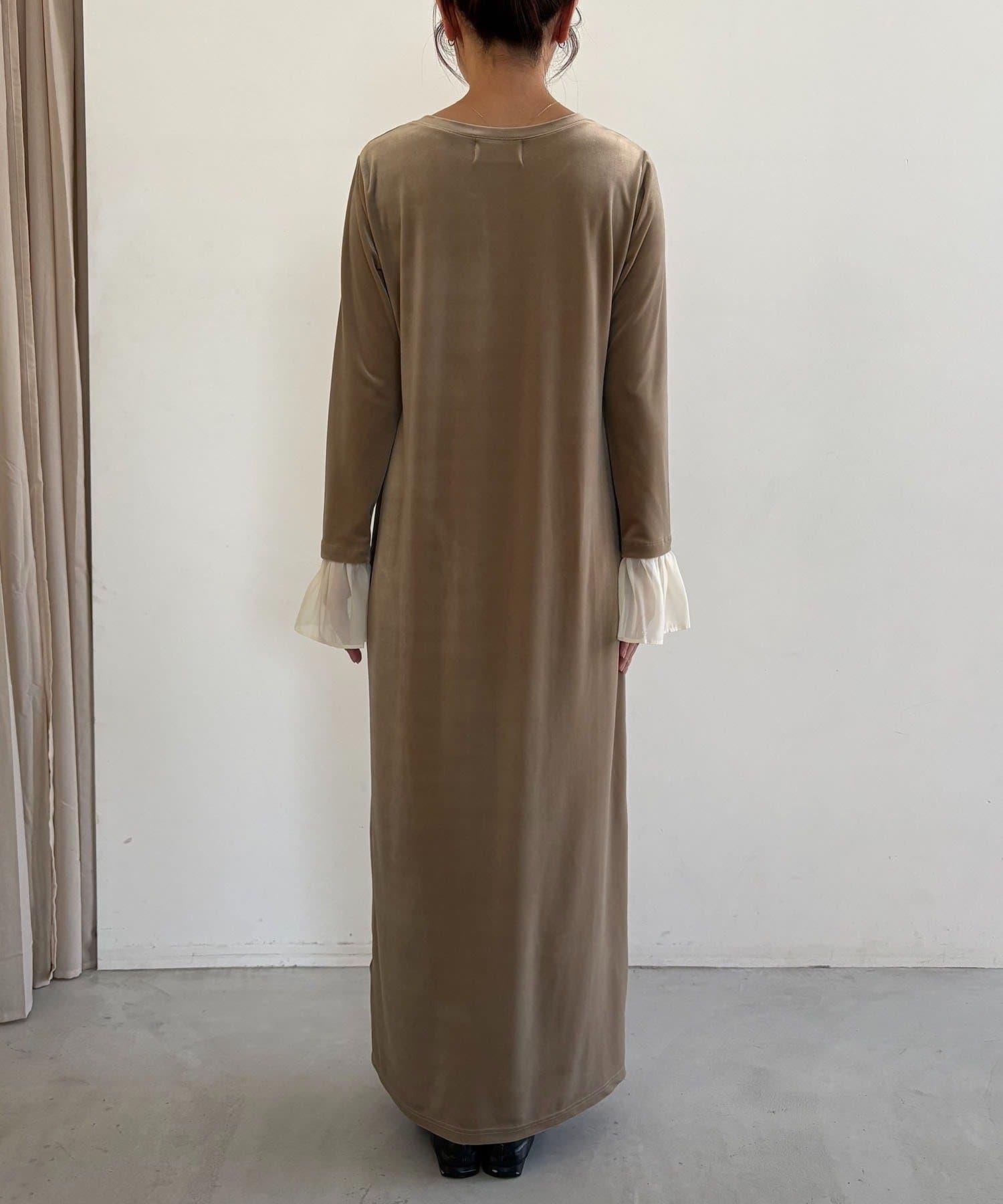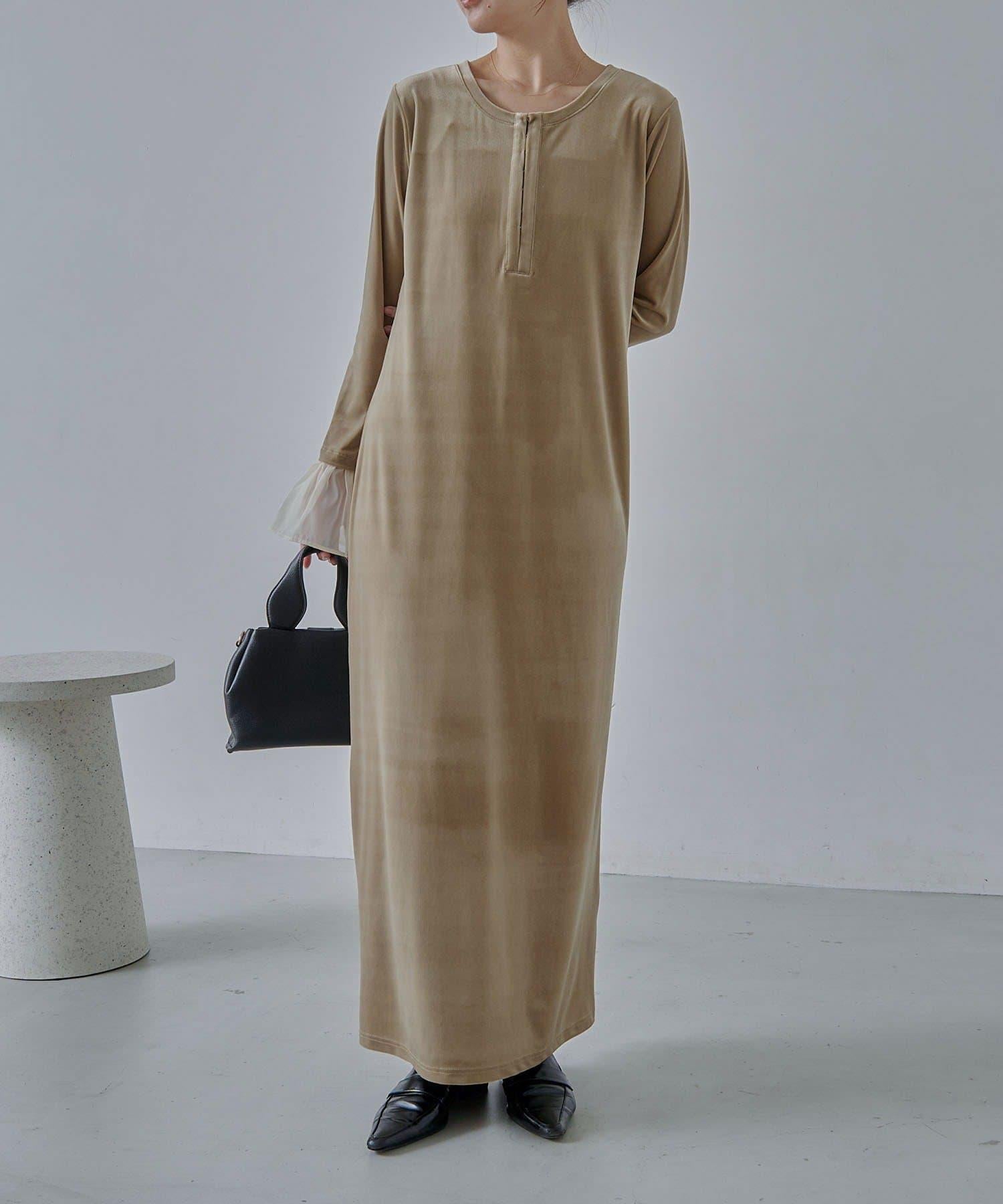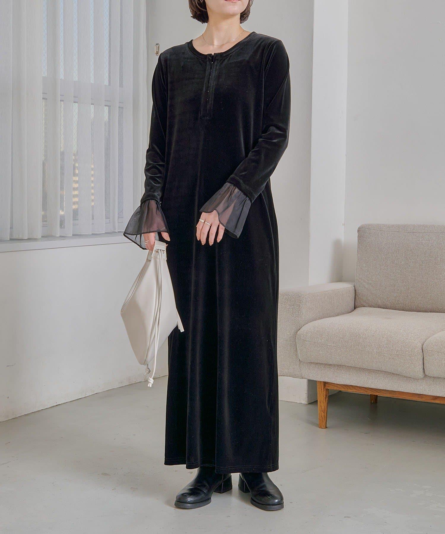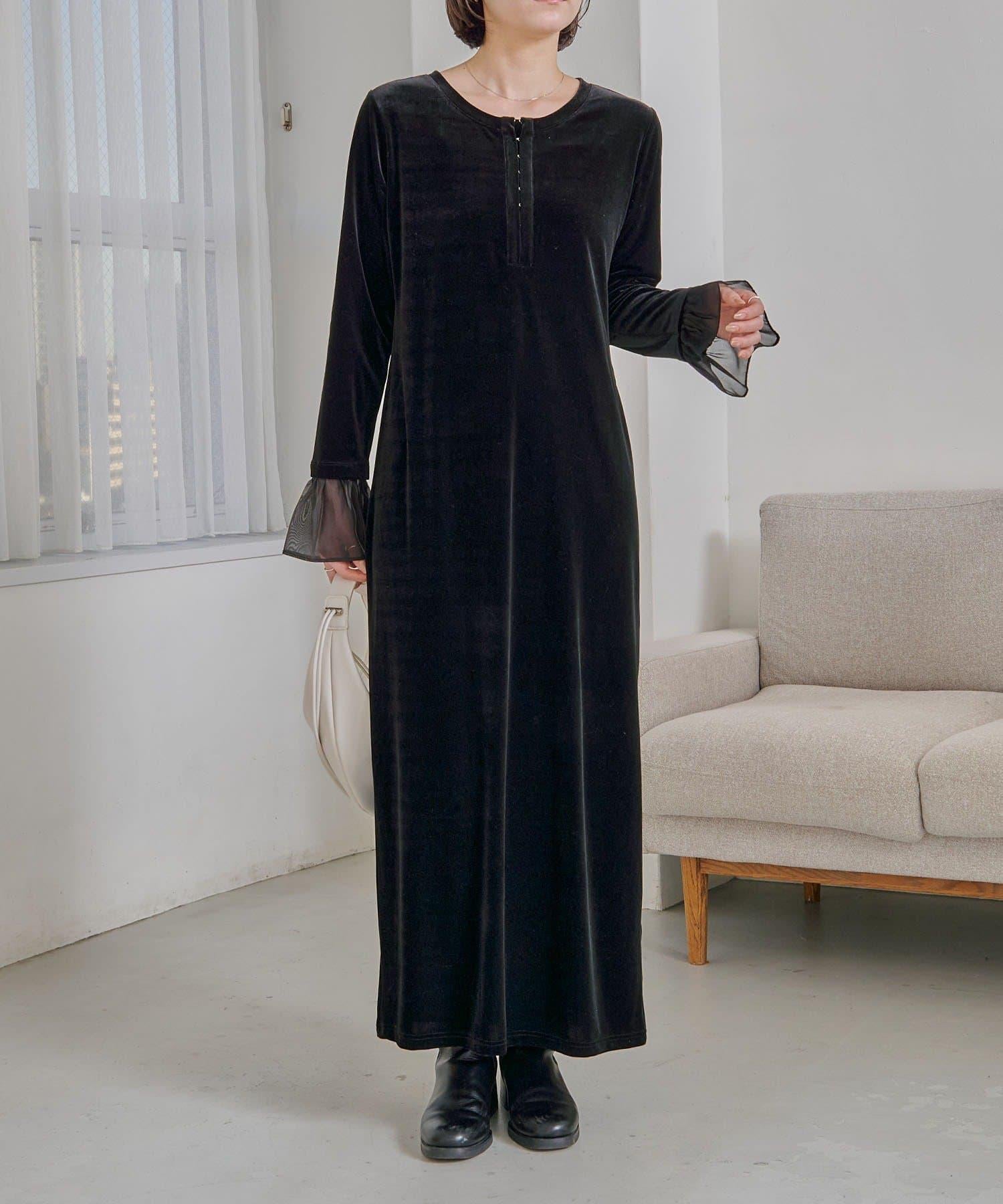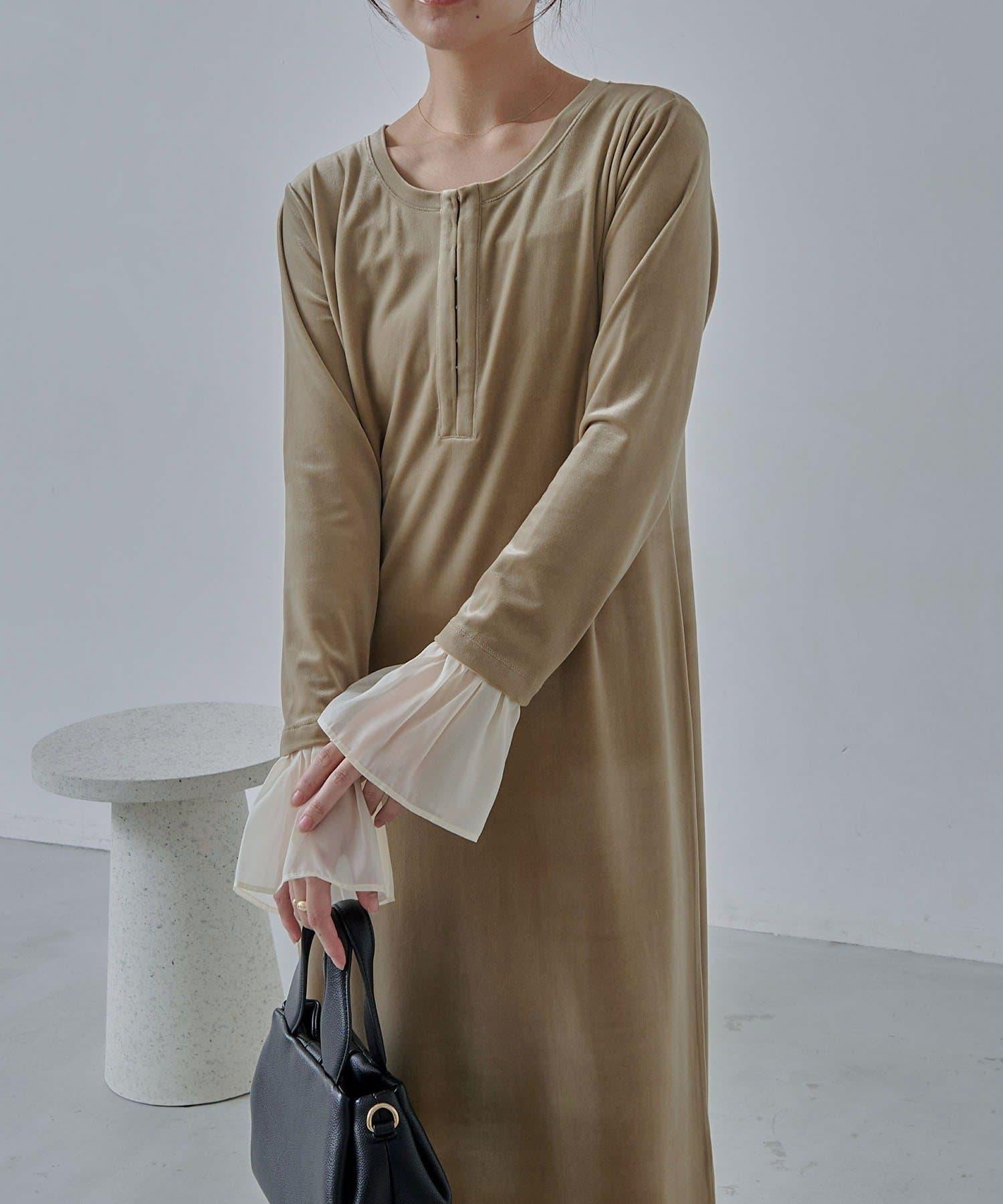 【有小個子尺碼】喇叭袖天鵝絨連衣裙