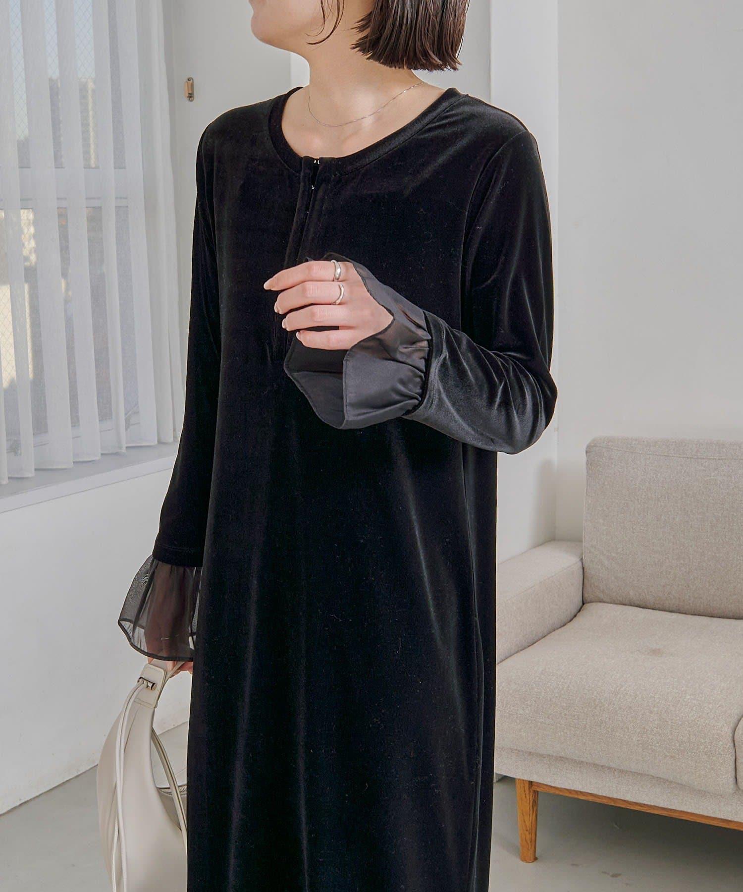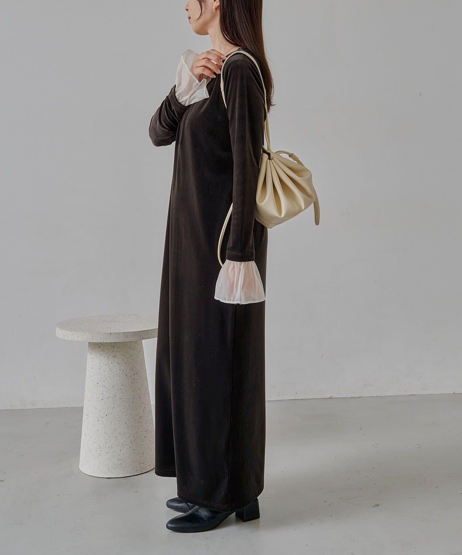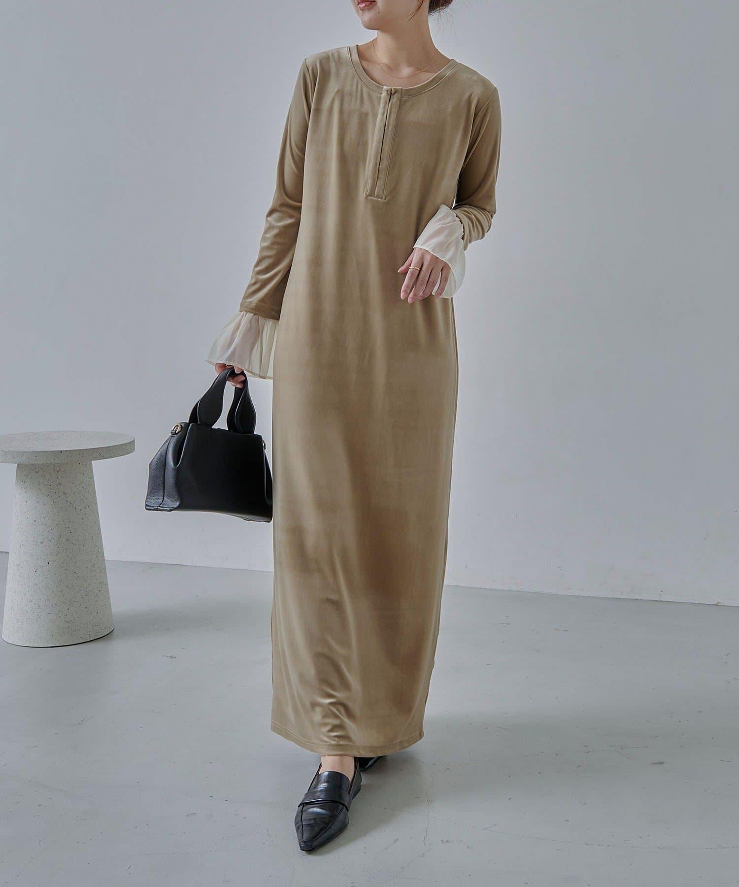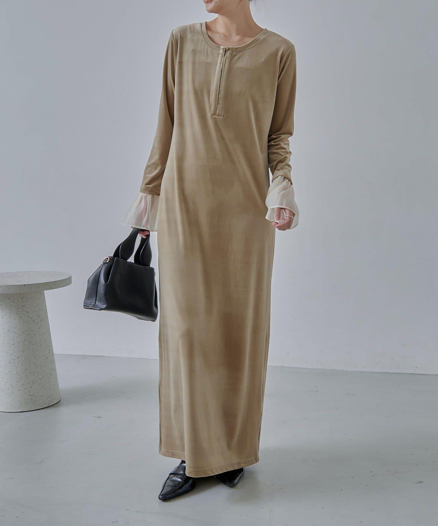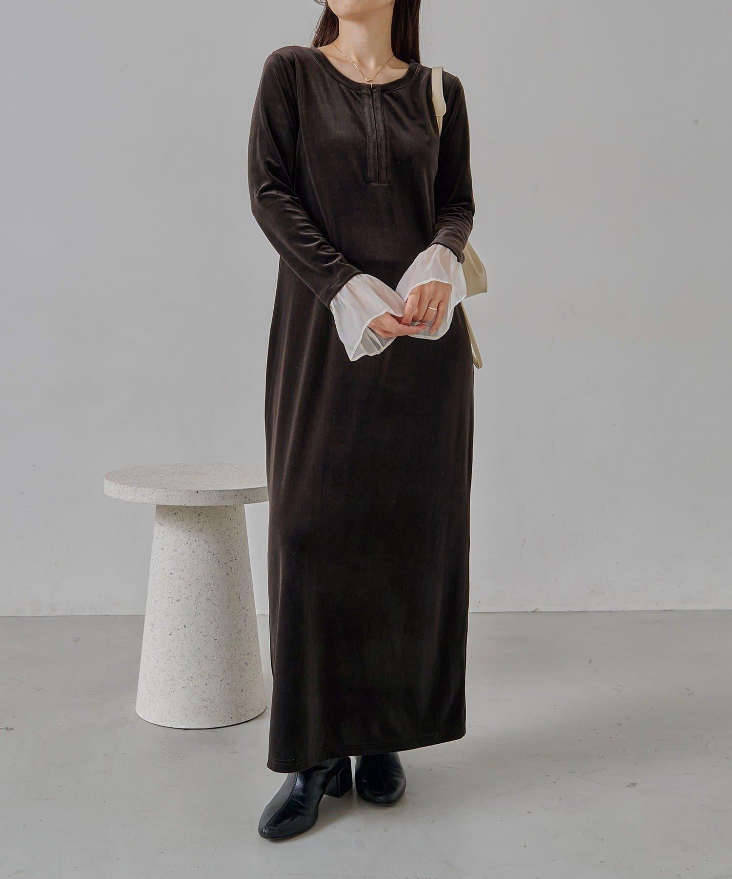 【有小個子尺碼】喇叭袖天鵝絨連衣裙