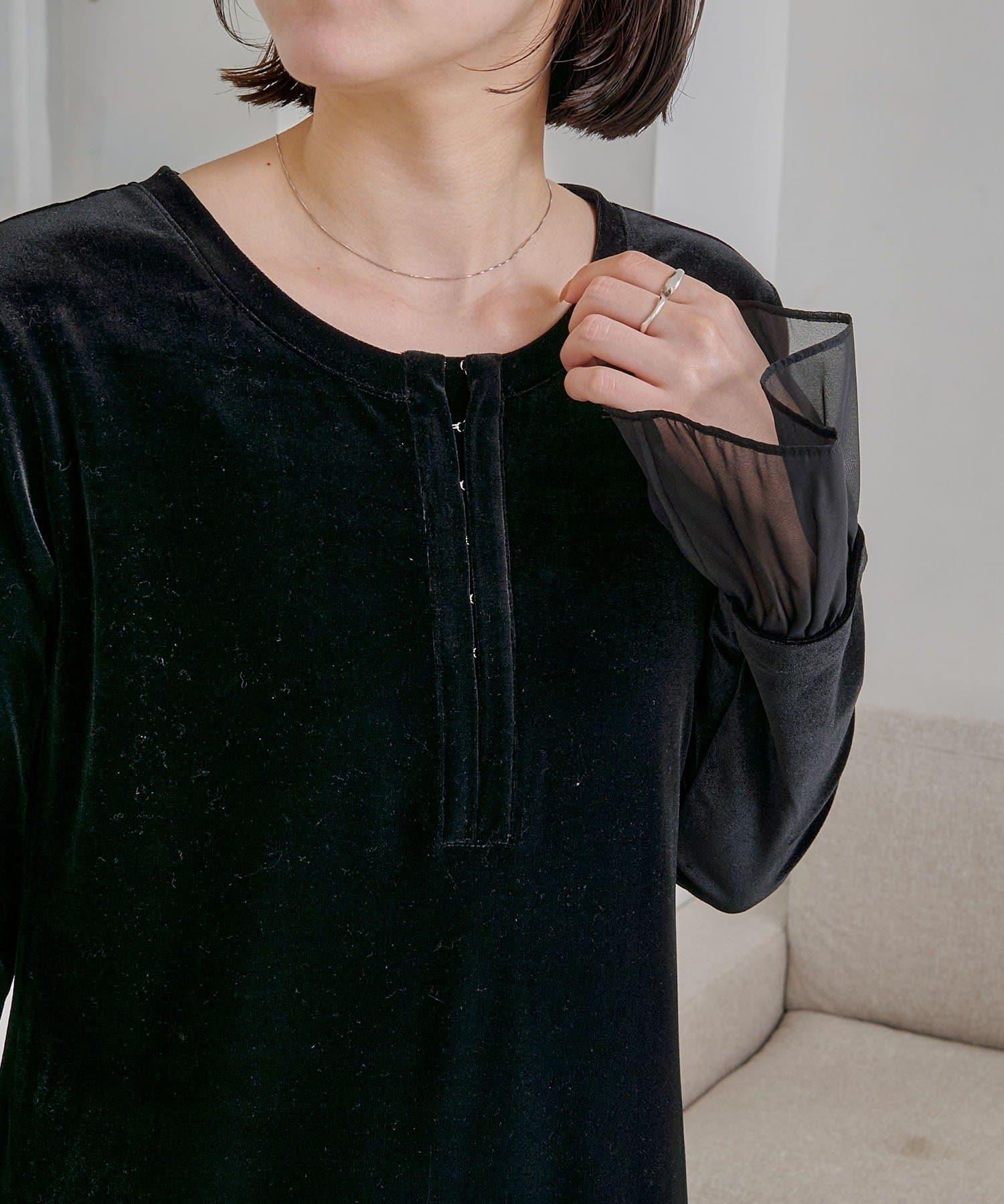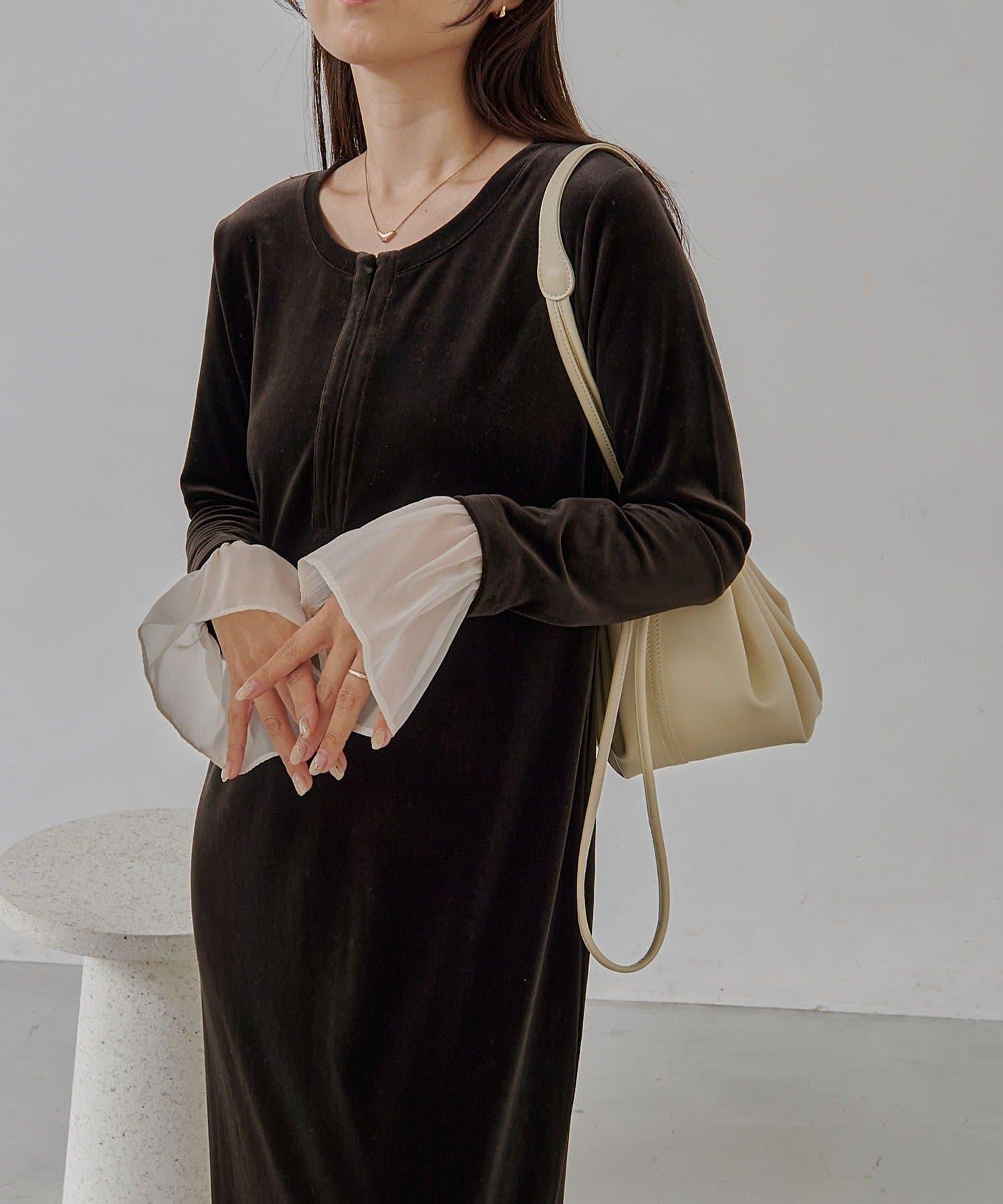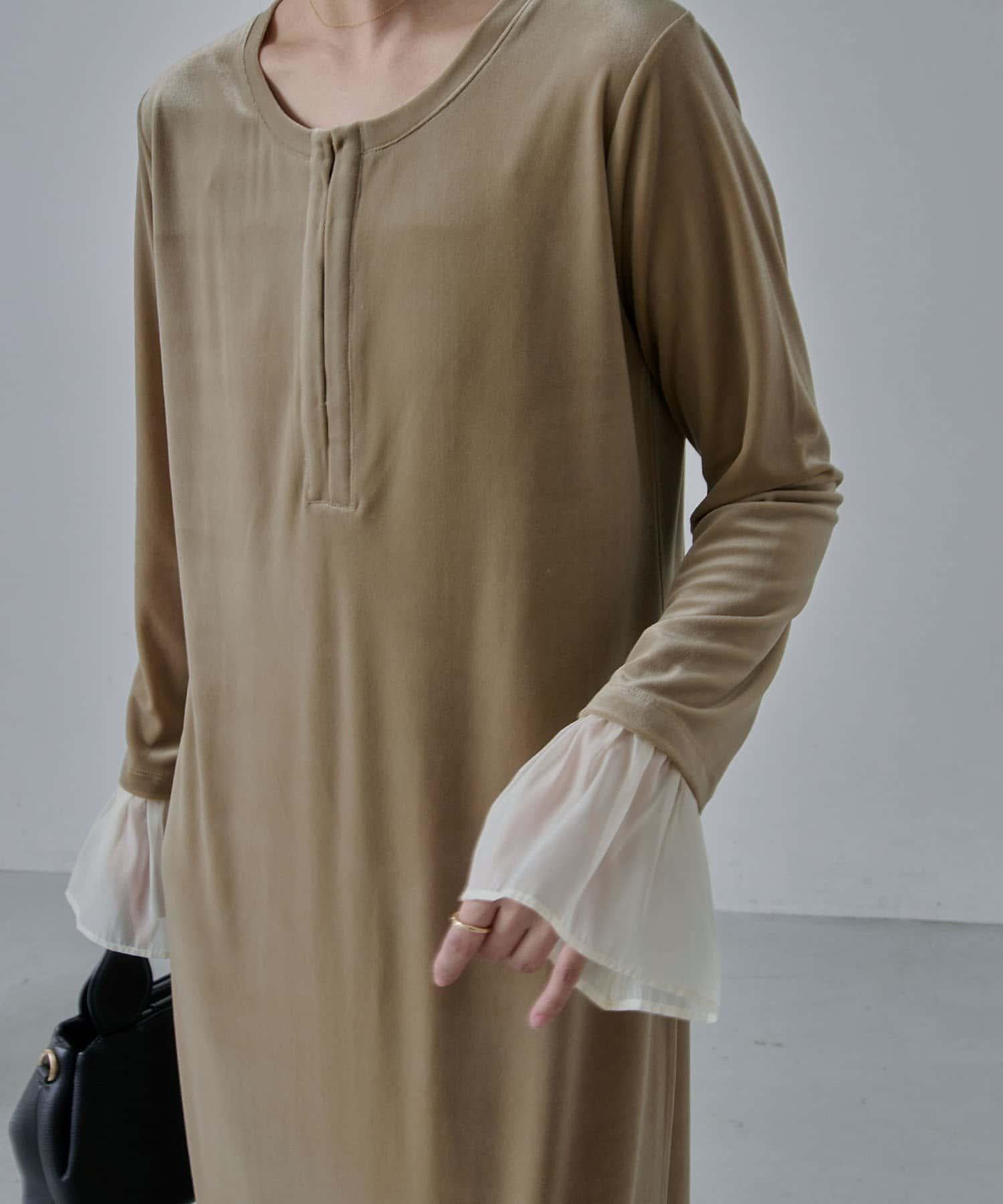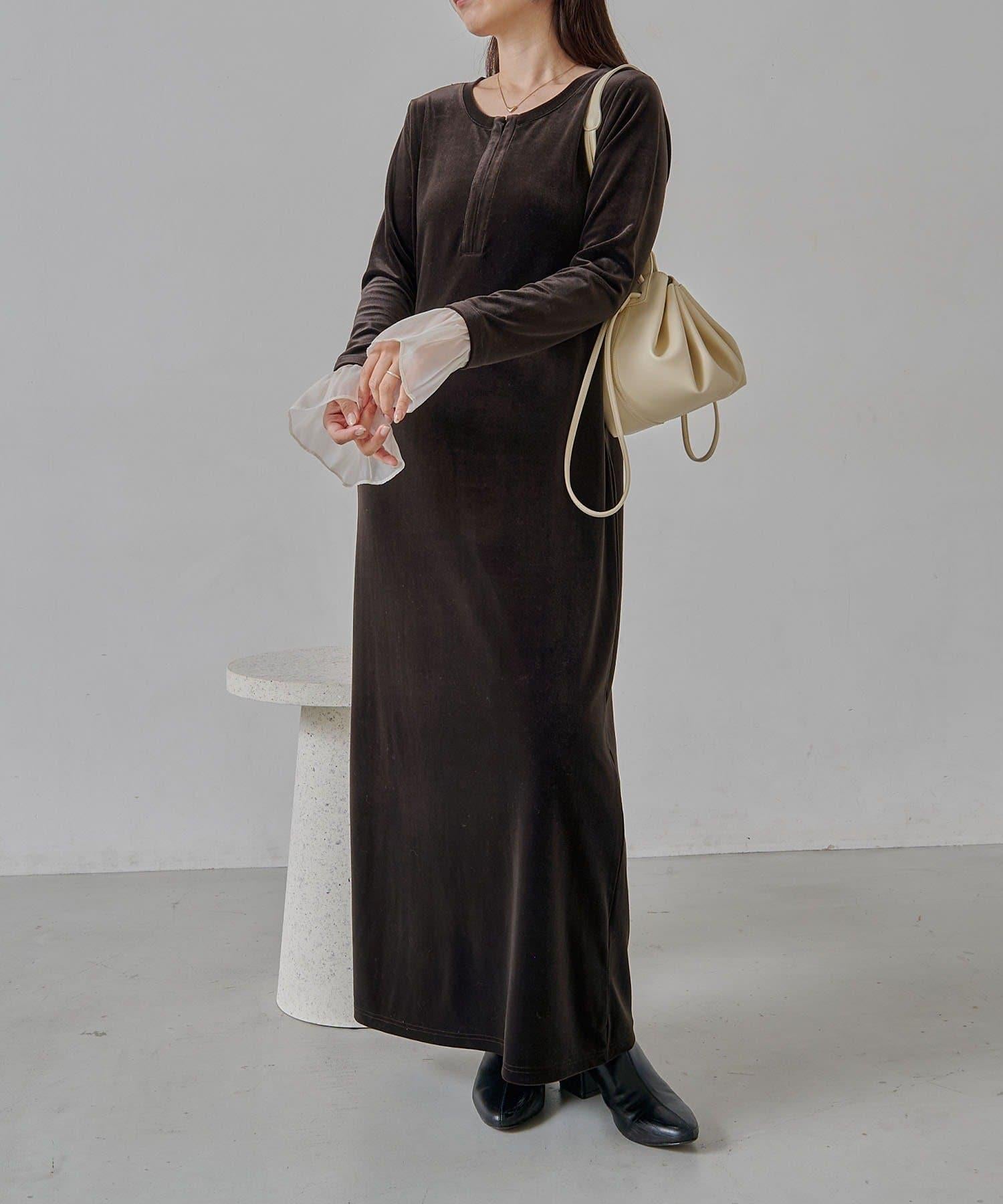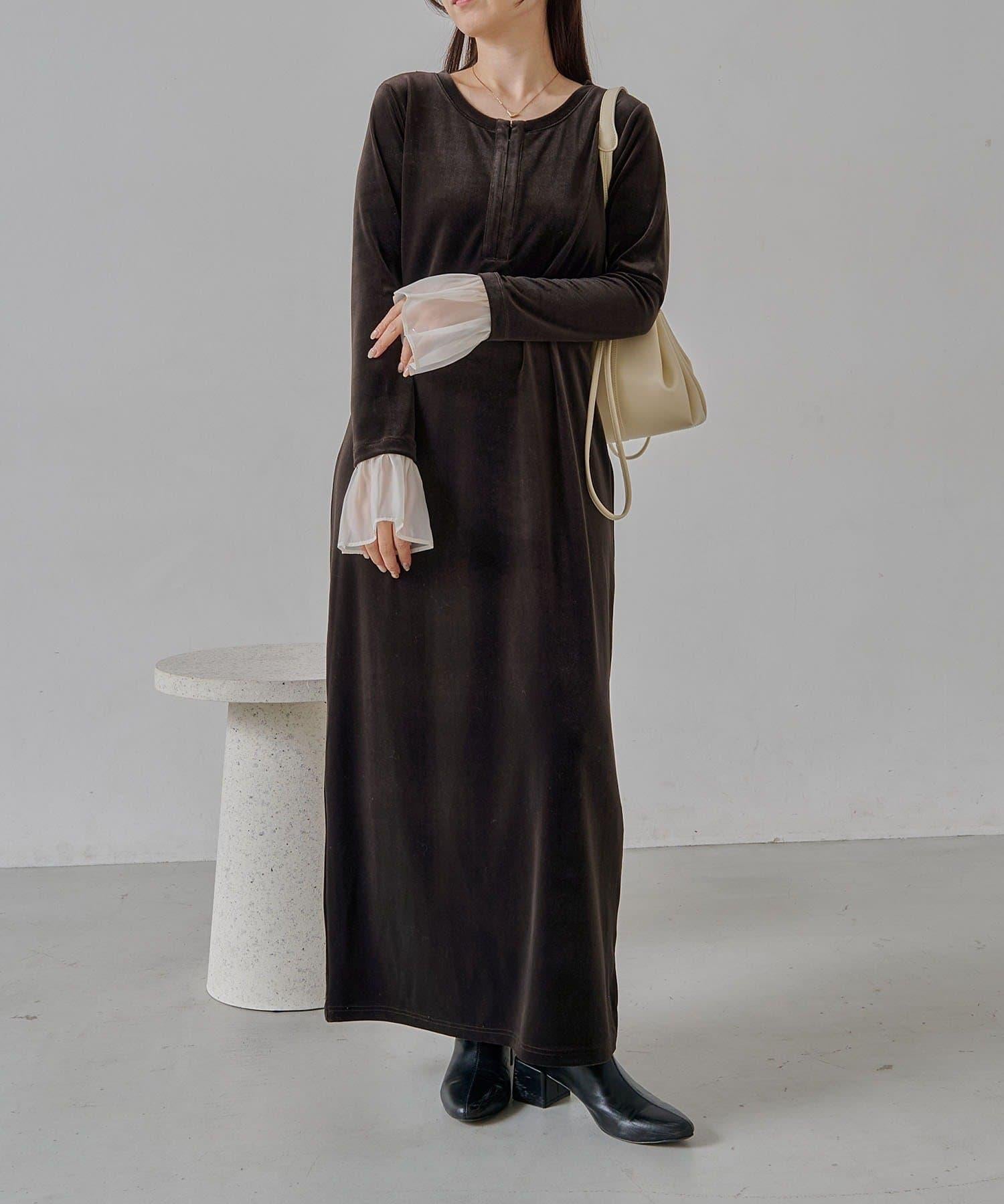 【有小個子尺碼】喇叭袖天鵝絨連衣裙