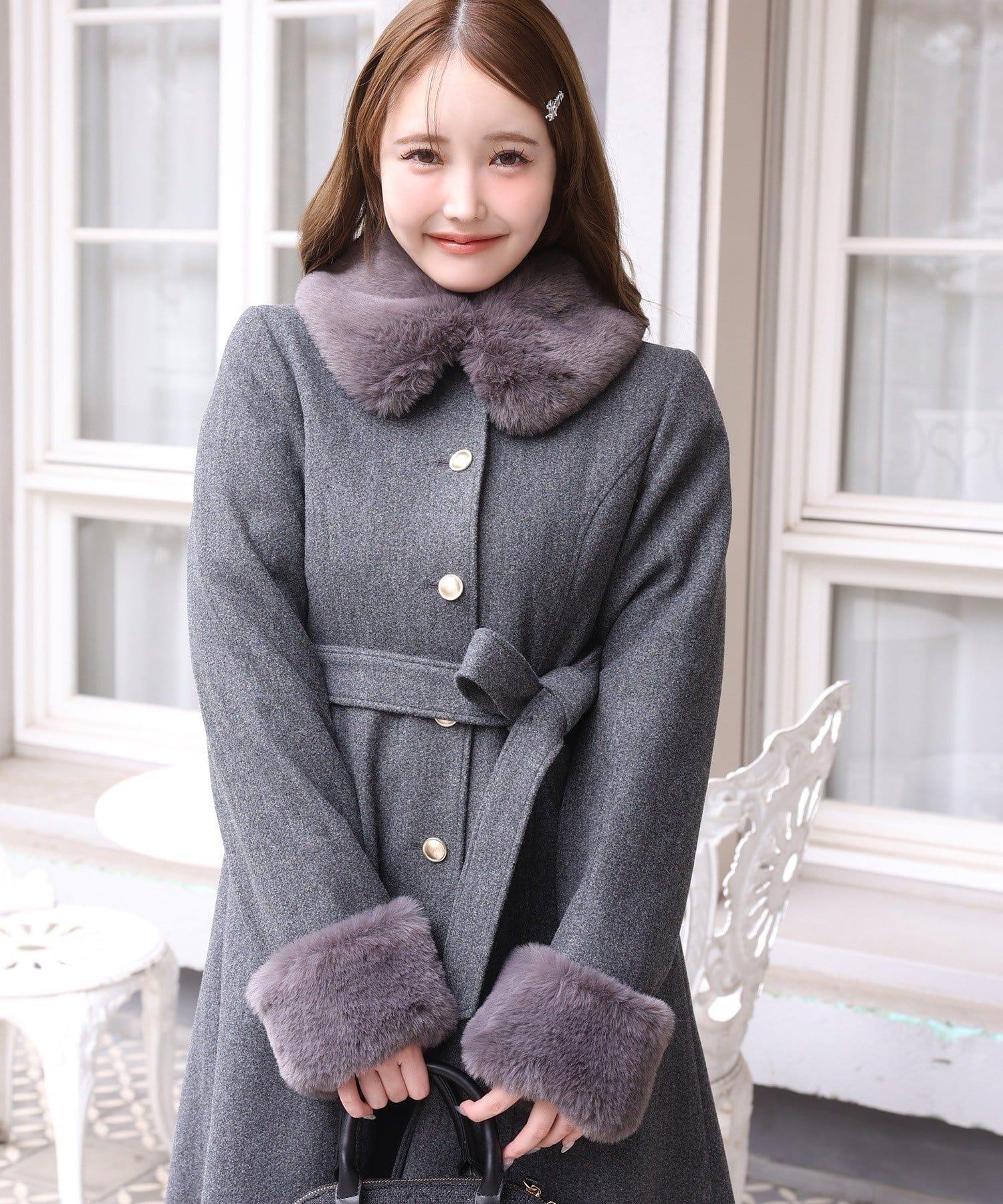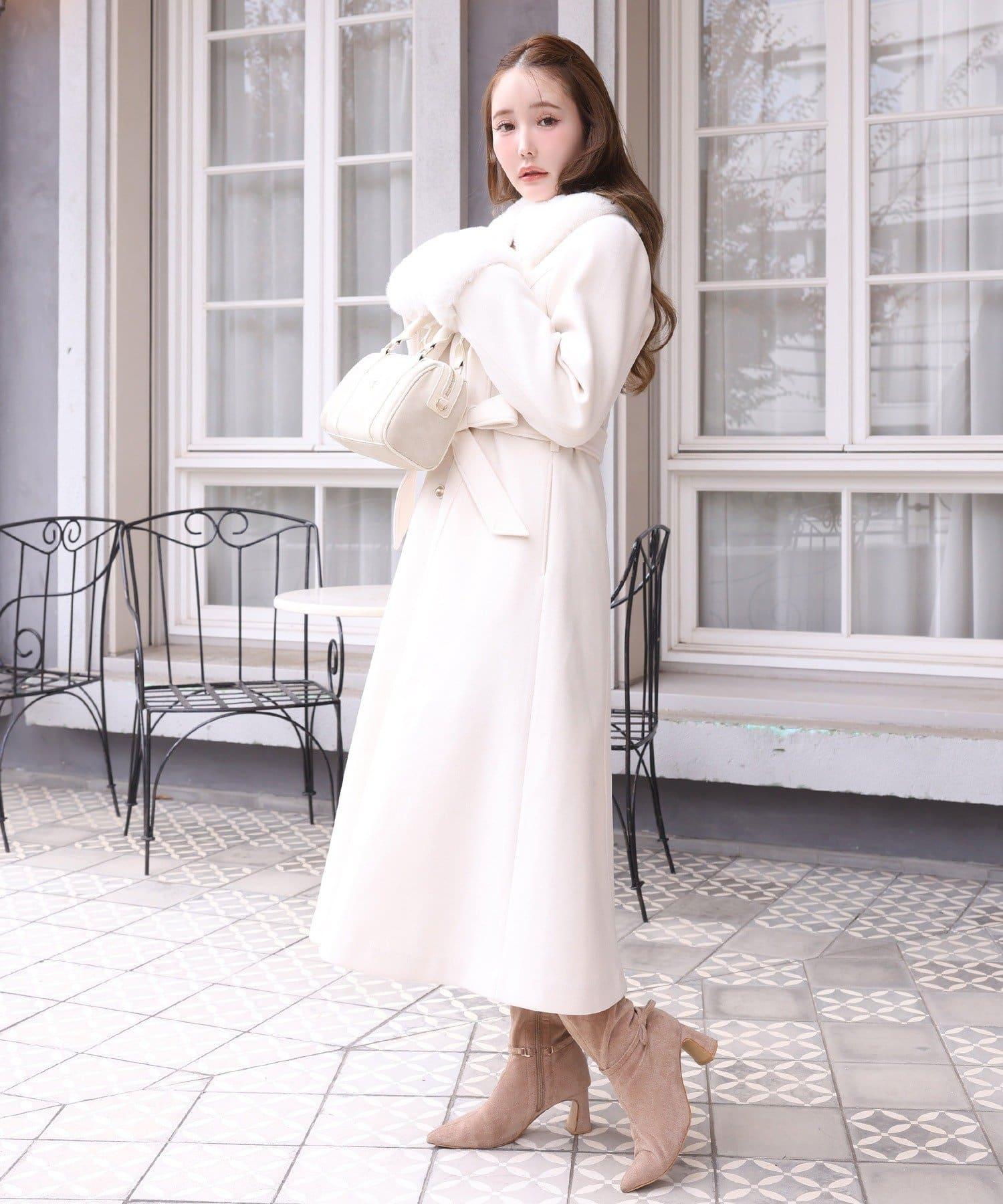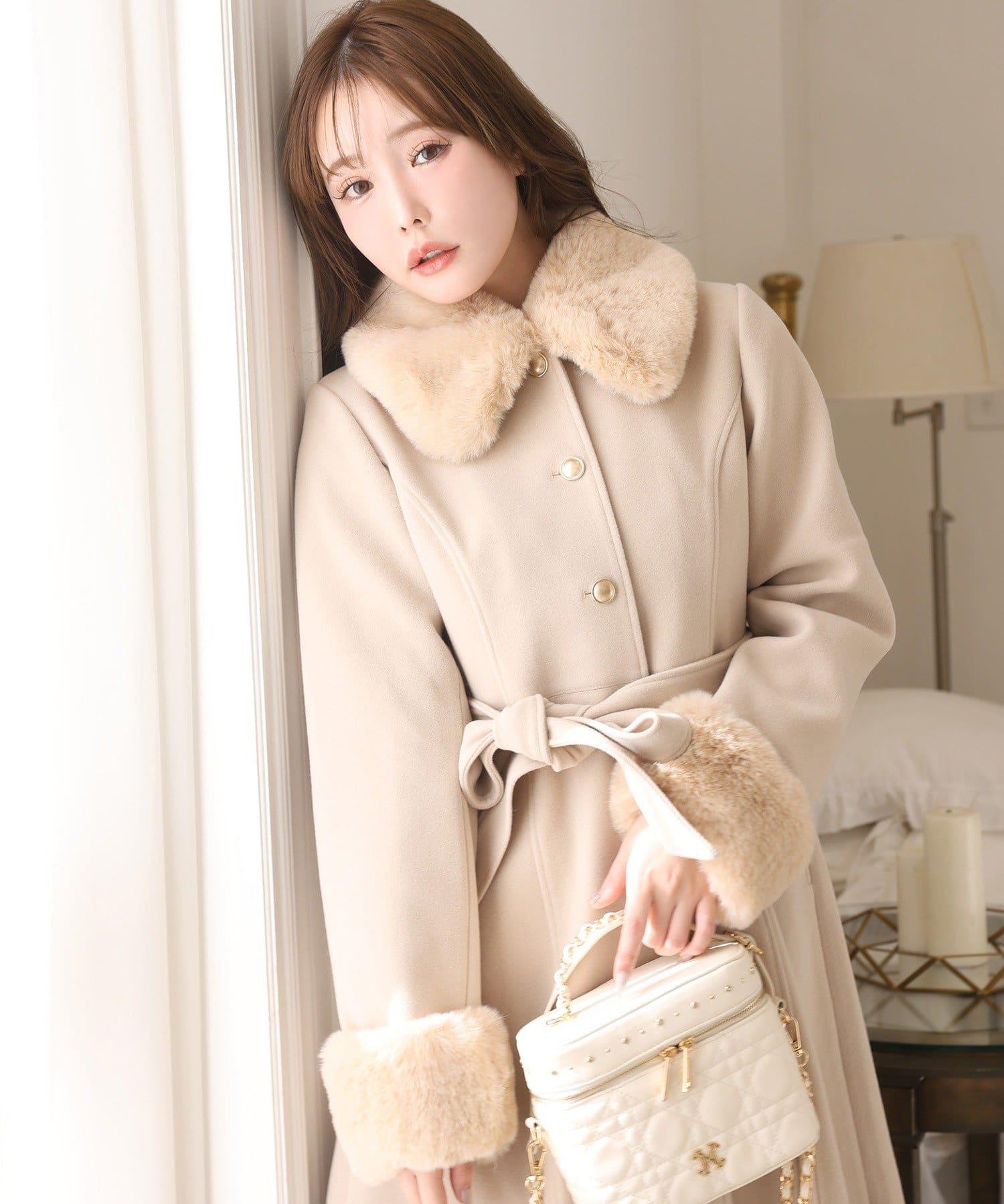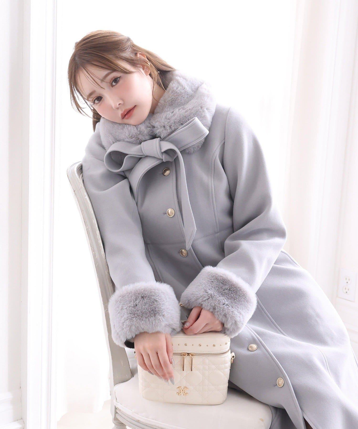 【有尺碼可選】毛領/毛袖多功能蝴蝶結長款大衣