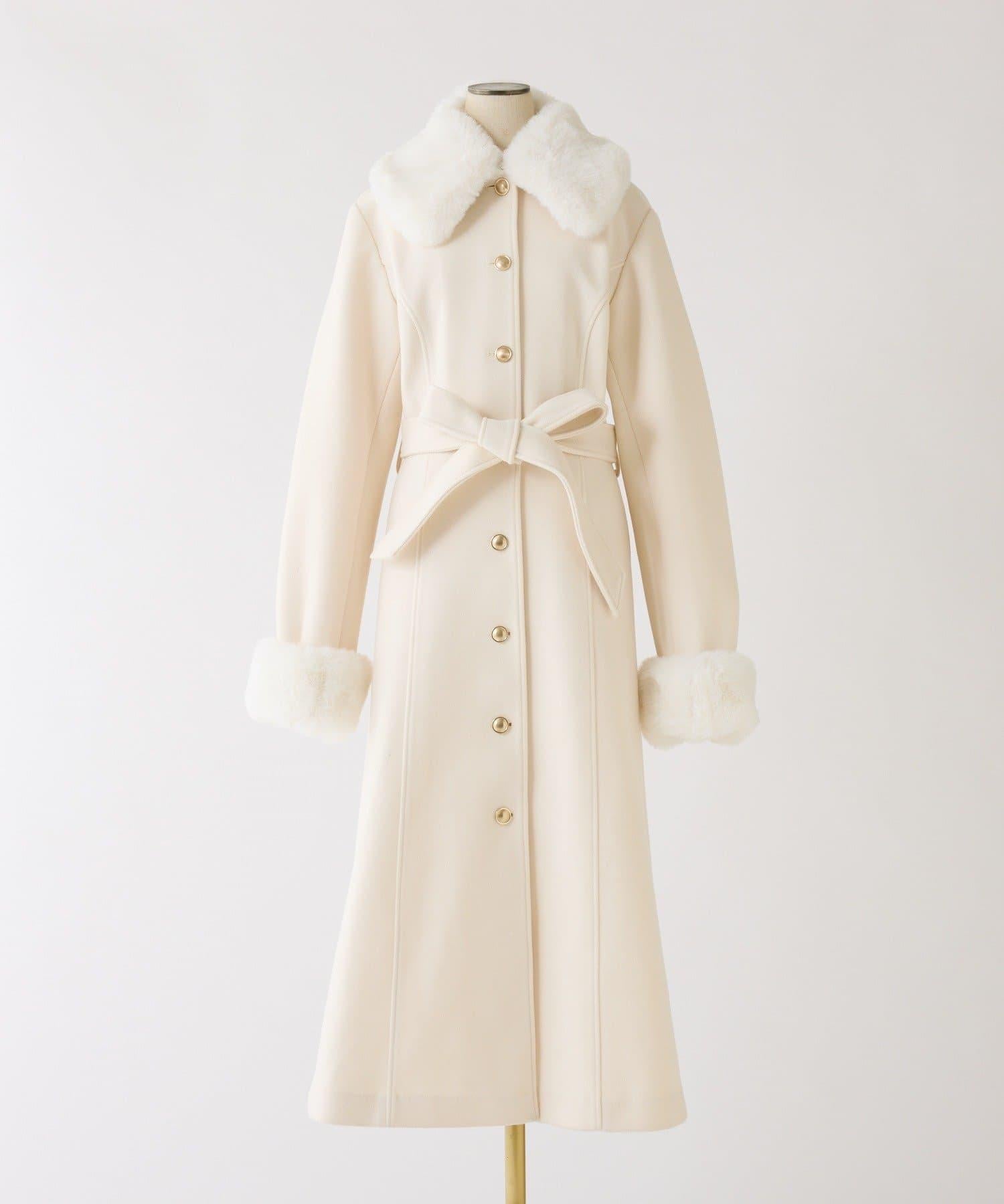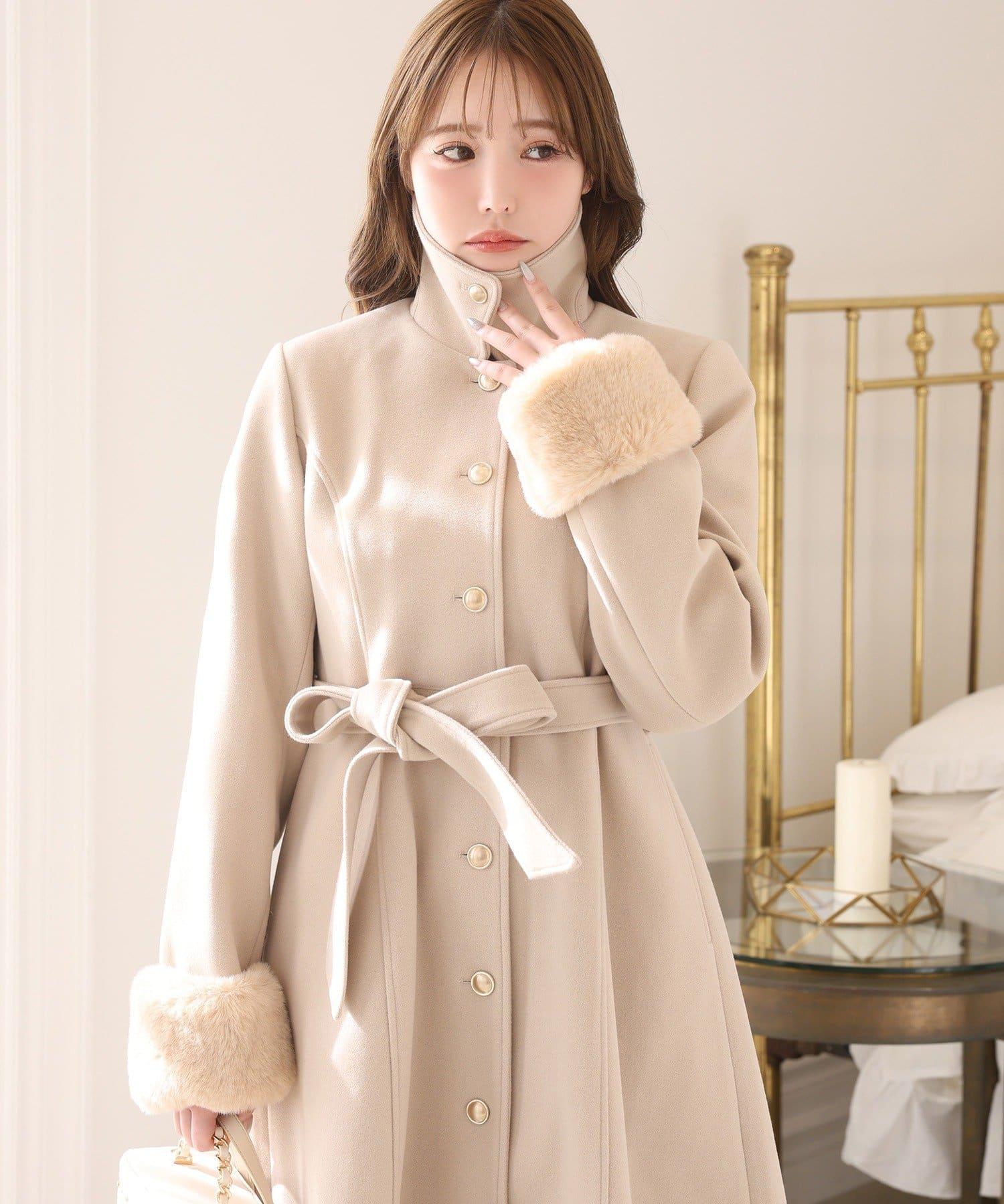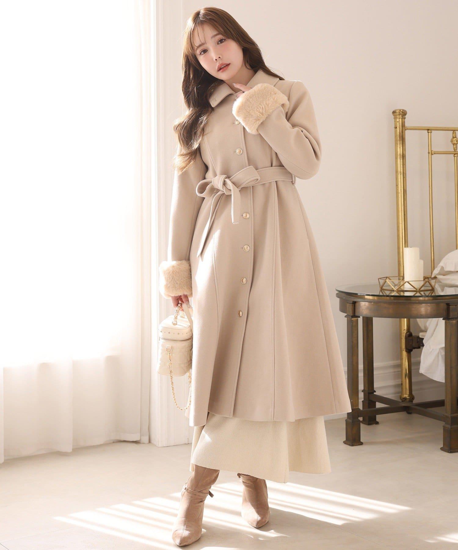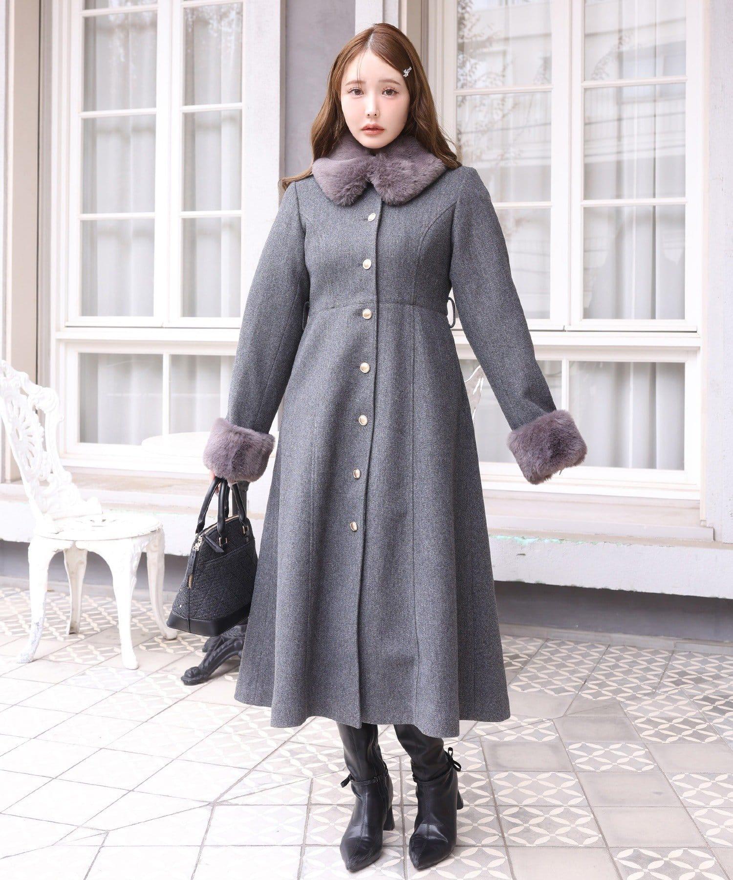 【有尺碼可選】毛領/毛袖多功能蝴蝶結長款大衣