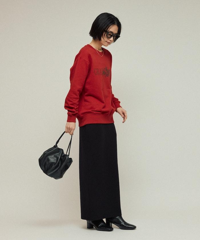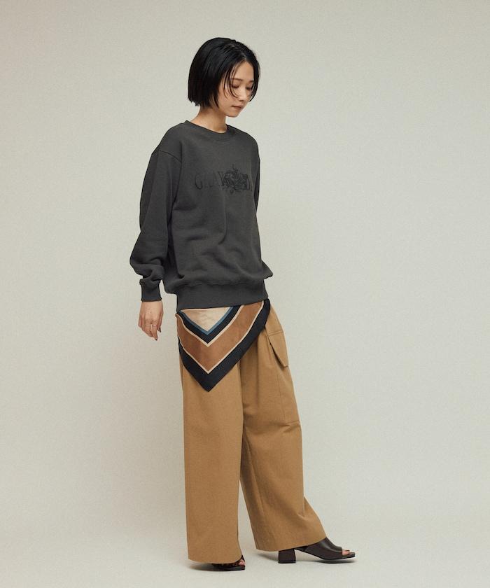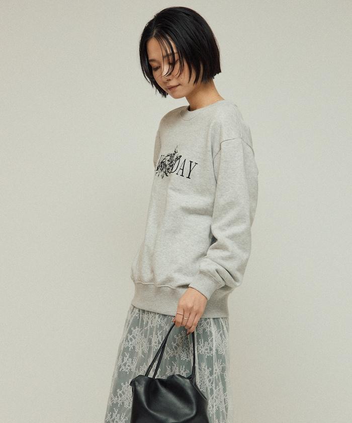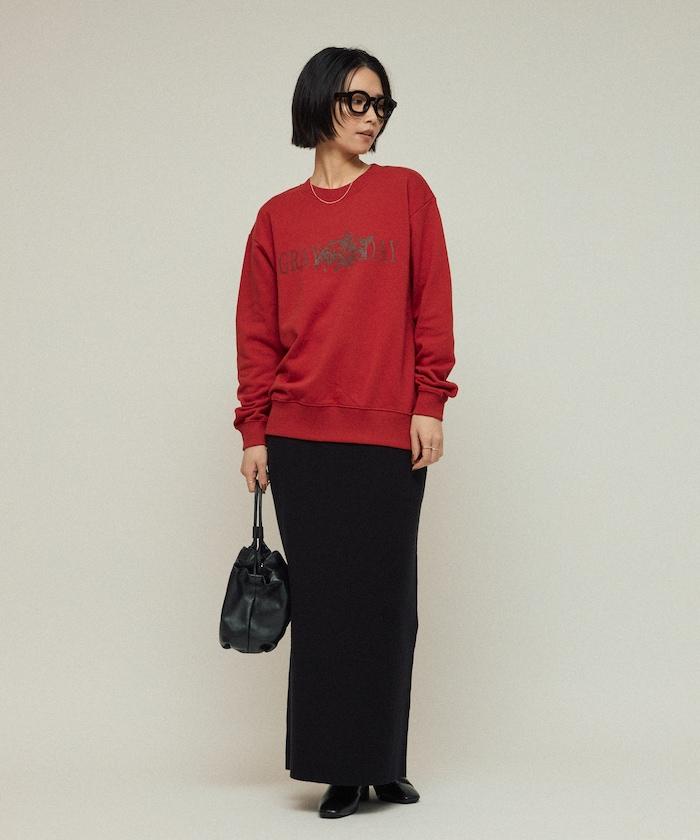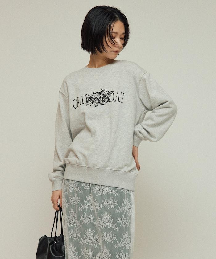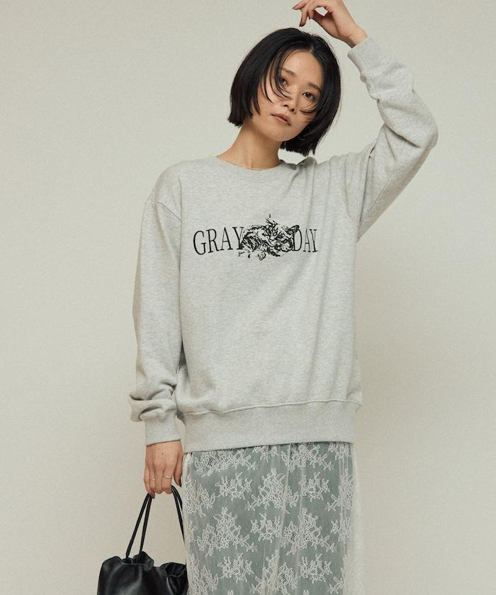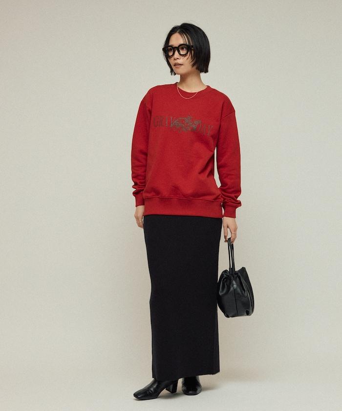 這款印有貓咪和徽標圖案的運動衫即使單穿也很有氣場。與裙子搭配會給人一種成人休閒的感覺,與牛仔褲或休閒褲搭配則非常適合日常休閒穿著。當氣溫下降時,還建議搭配襯衫或高領毛衣作為內搭。鞋子可以搭配運動鞋,顯得粗獷,也可以搭配高跟鞋,略顯優雅。