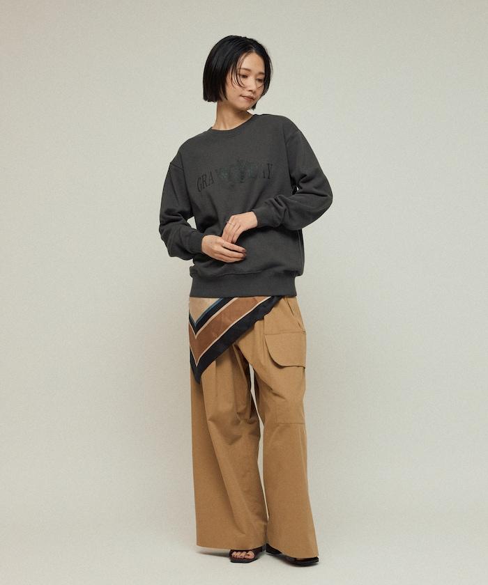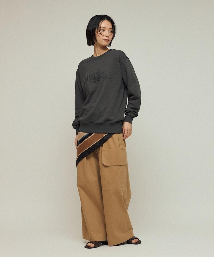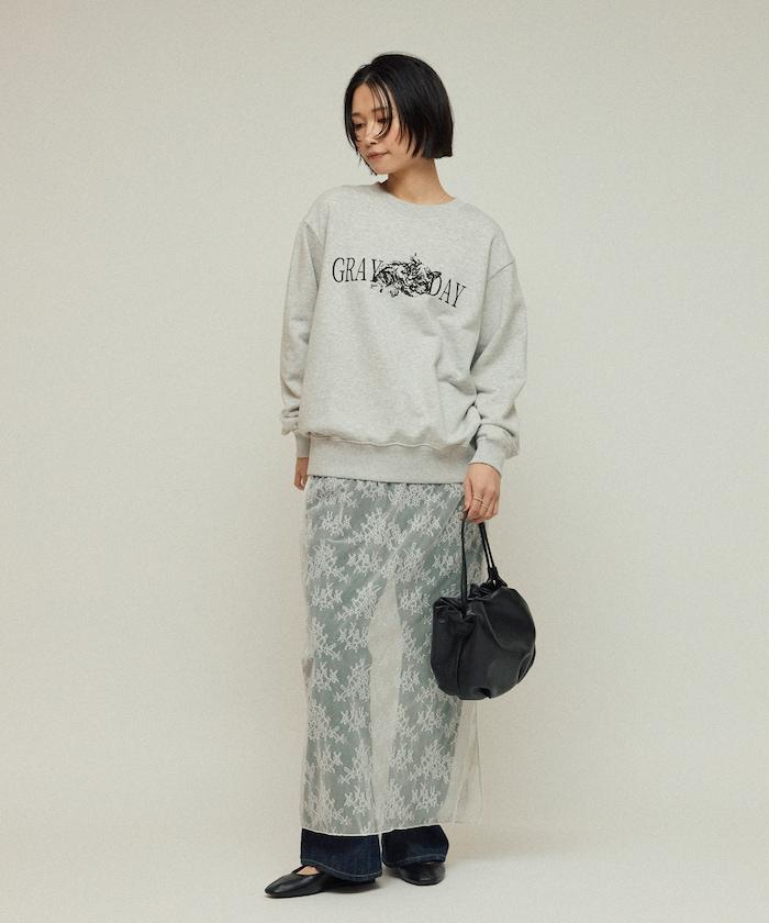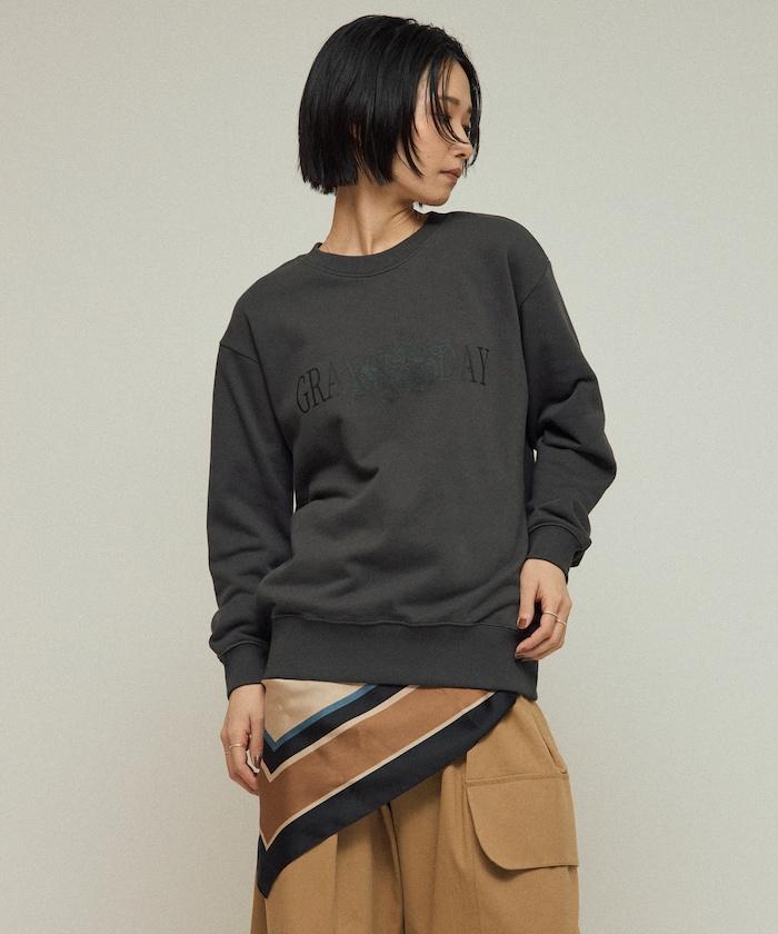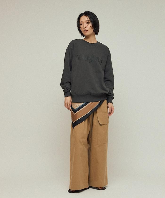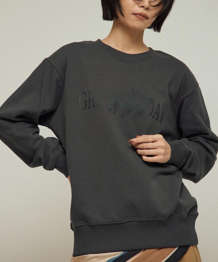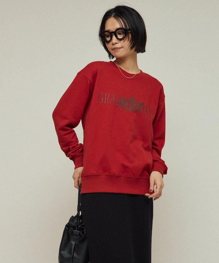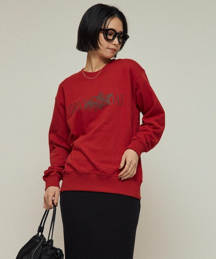 這款印有貓咪和徽標圖案的運動衫即使單穿也很有氣場。與裙子搭配會給人一種成人休閒的感覺,與牛仔褲或休閒褲搭配則非常適合日常休閒穿著。當氣溫下降時,還建議搭配襯衫或高領毛衣作為內搭。鞋子可以搭配運動鞋,顯得粗獷,也可以搭配高跟鞋,略顯優雅。
