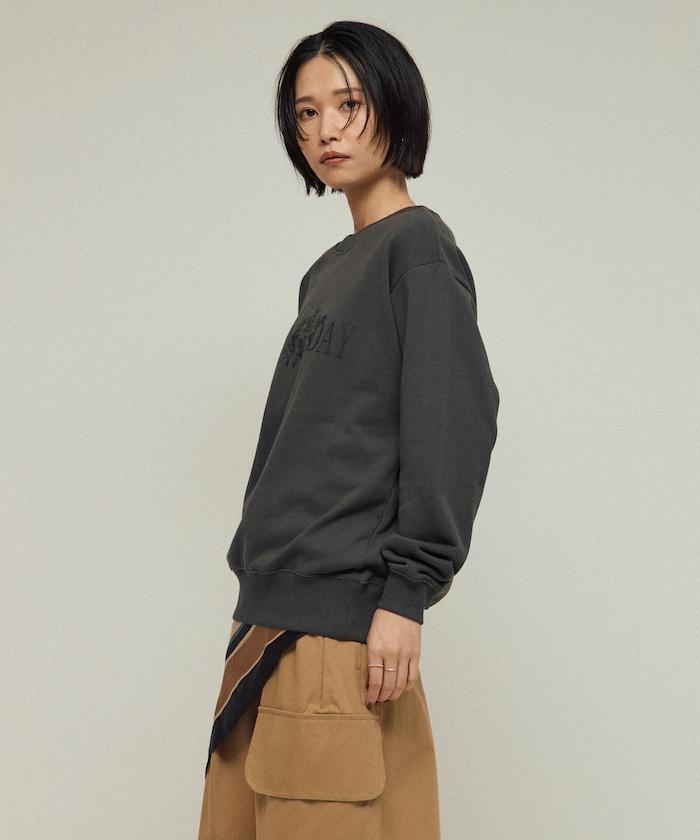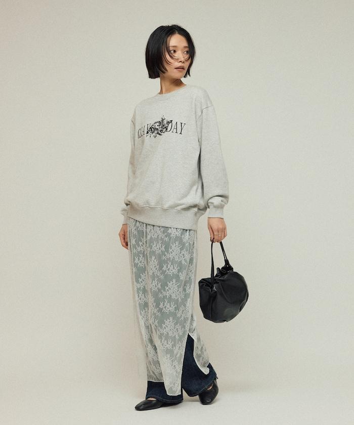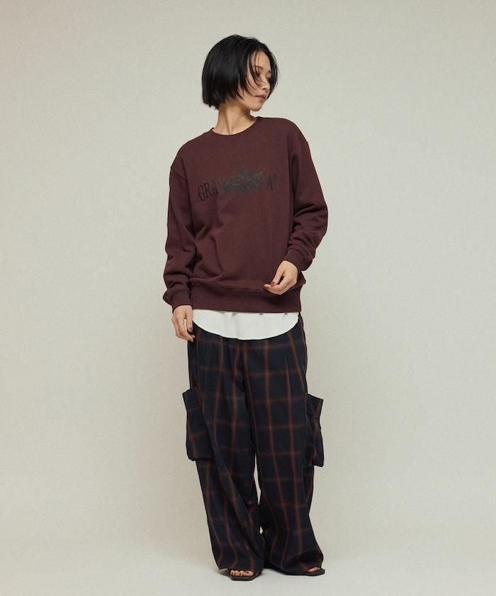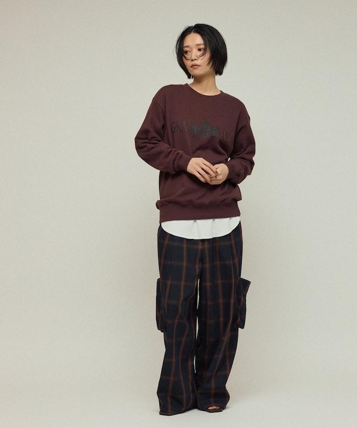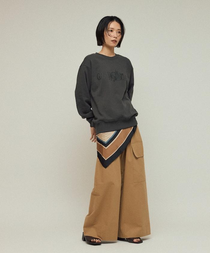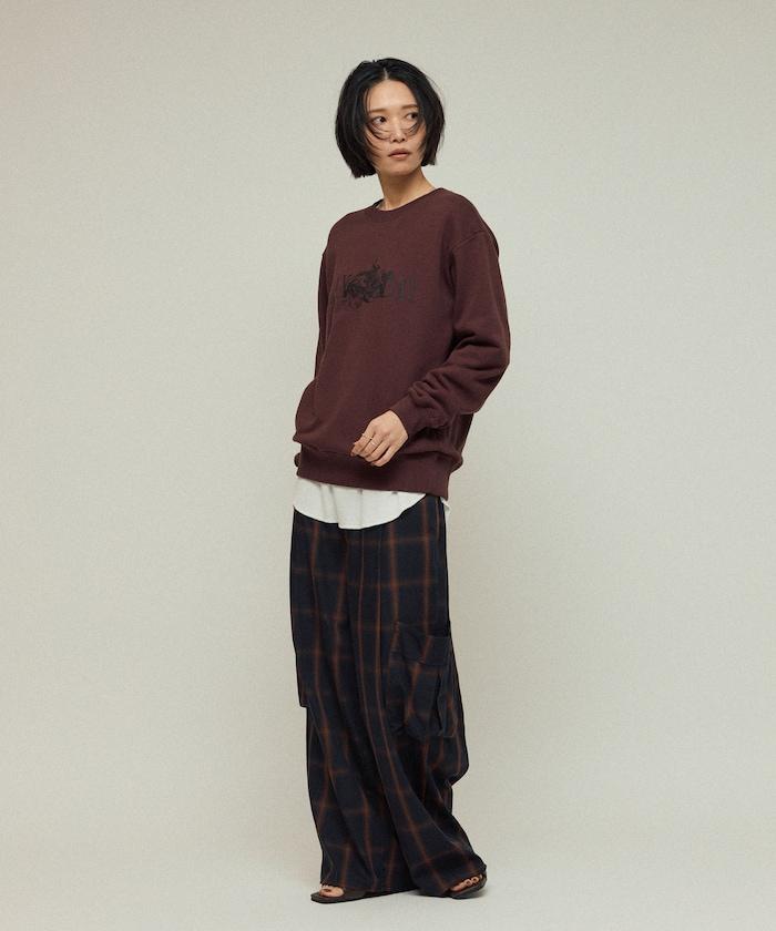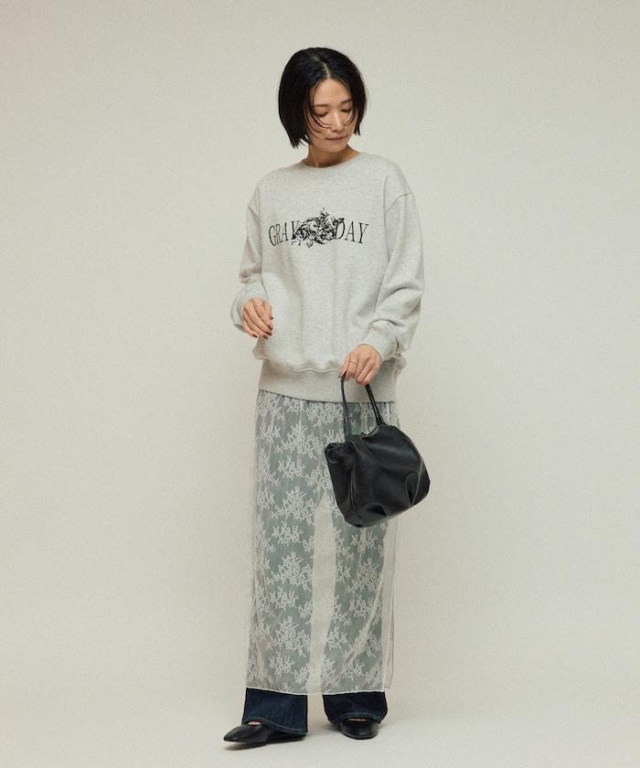 這款印有貓咪和徽標圖案的運動衫即使單穿也很有氣場。與裙子搭配會給人一種成人休閒的感覺,與牛仔褲或休閒褲搭配則非常適合日常休閒穿著。當氣溫下降時,還建議搭配襯衫或高領毛衣作為內搭。鞋子可以搭配運動鞋,顯得粗獷,也可以搭配高跟鞋,略顯優雅。
