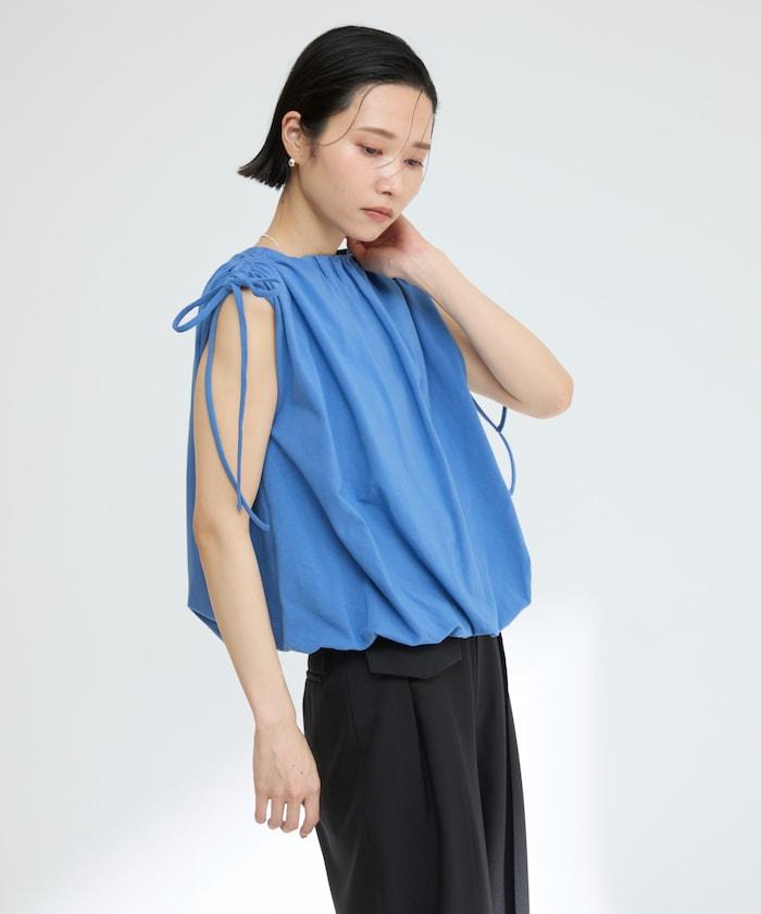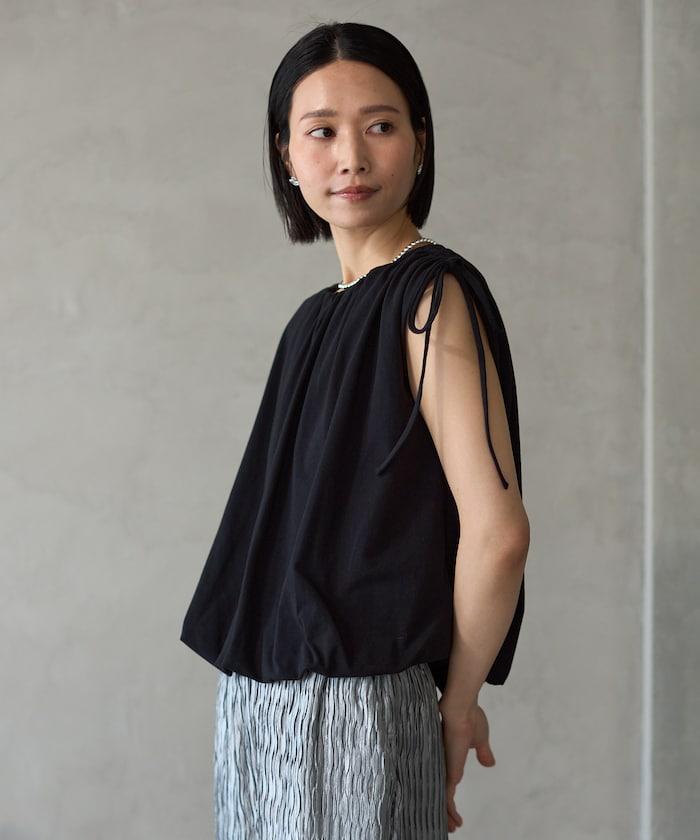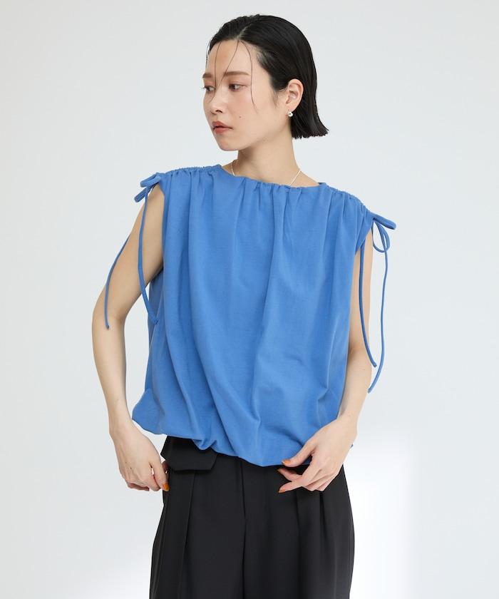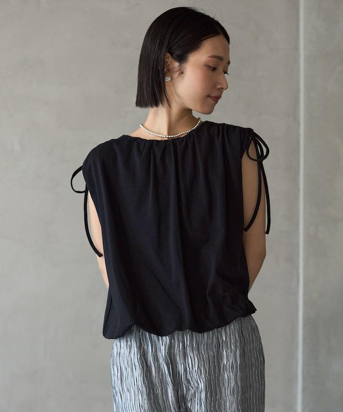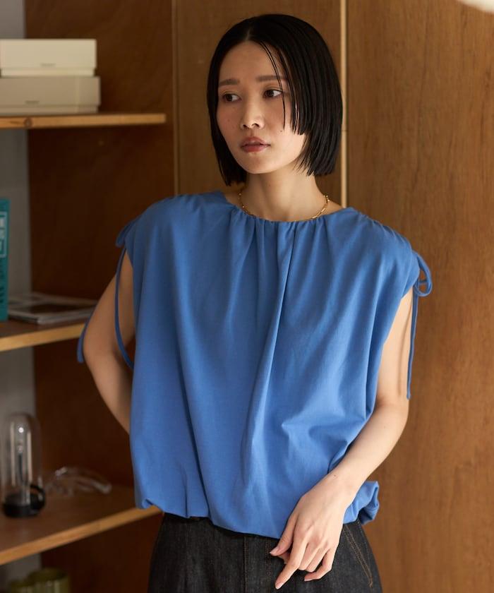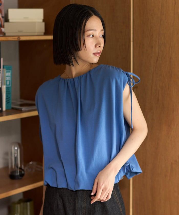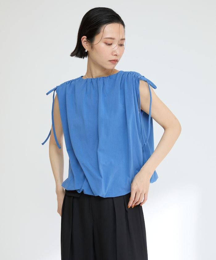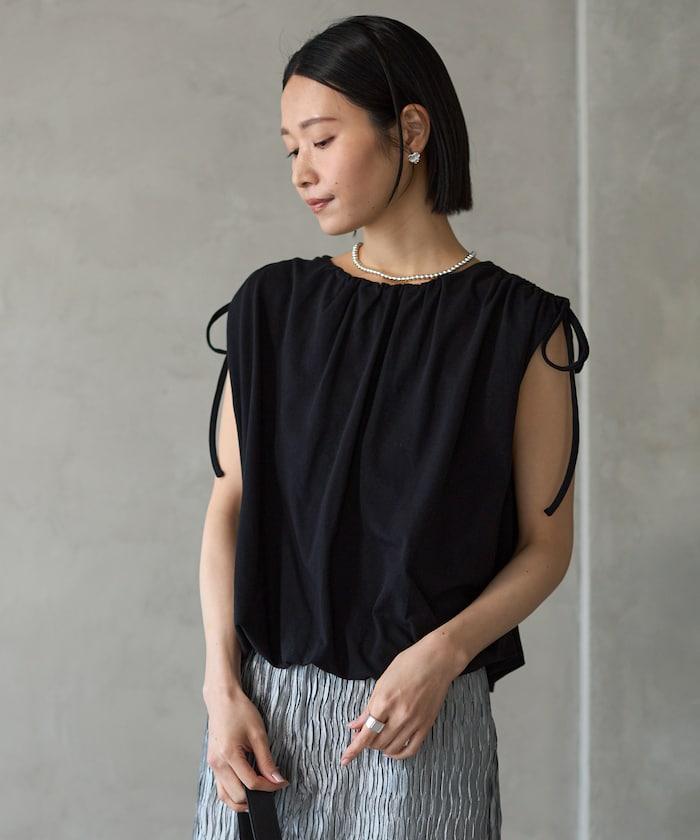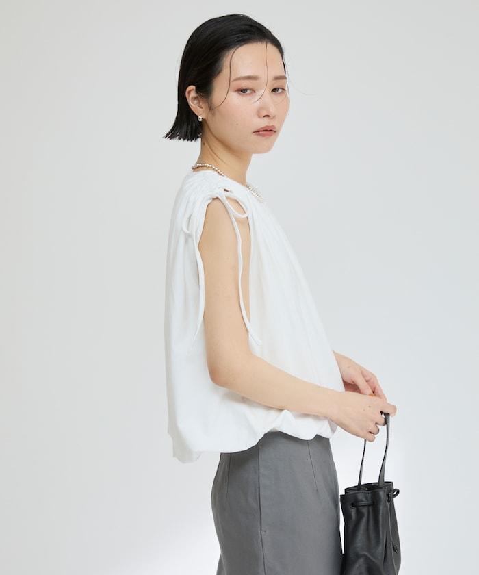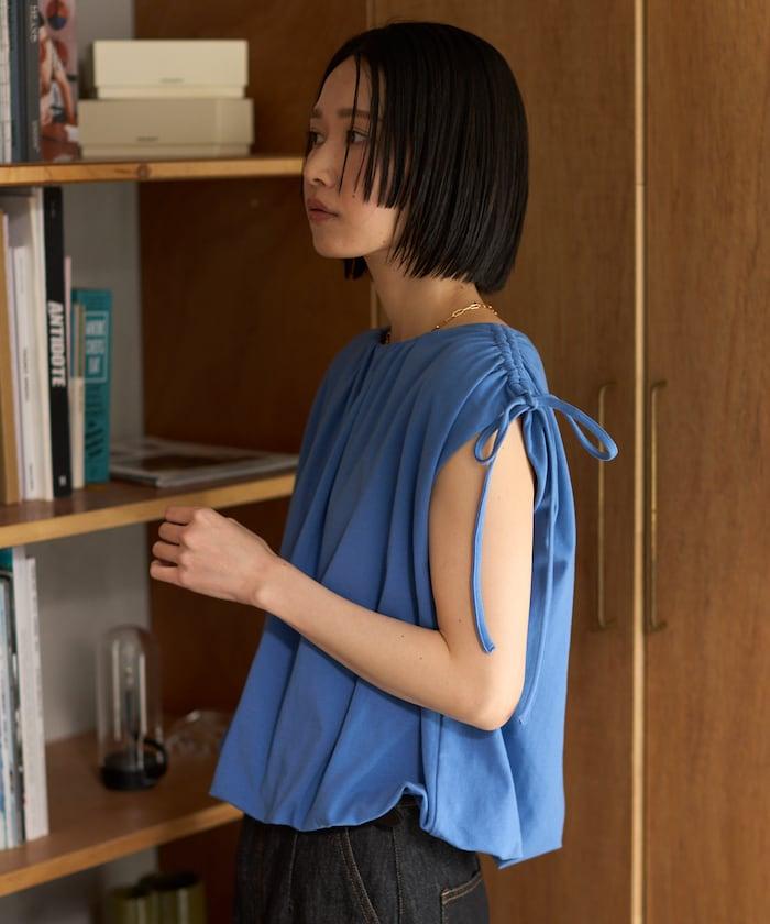 有機棉束褶垂墜上衣 / 法式短袖T恤 / 袖帶