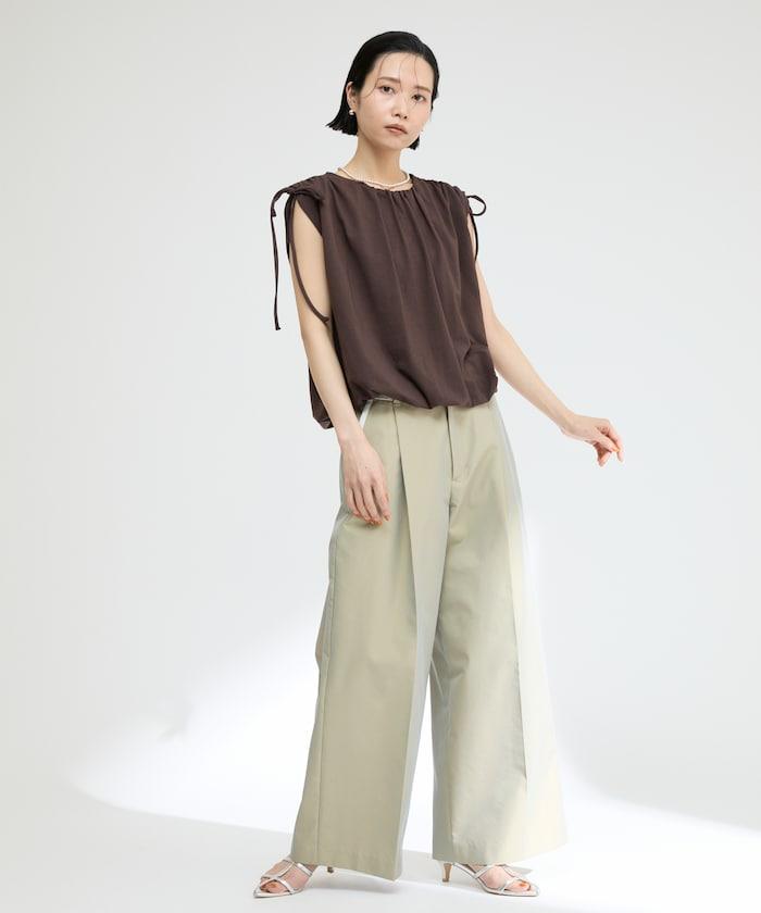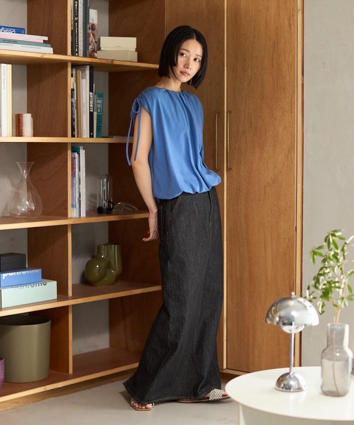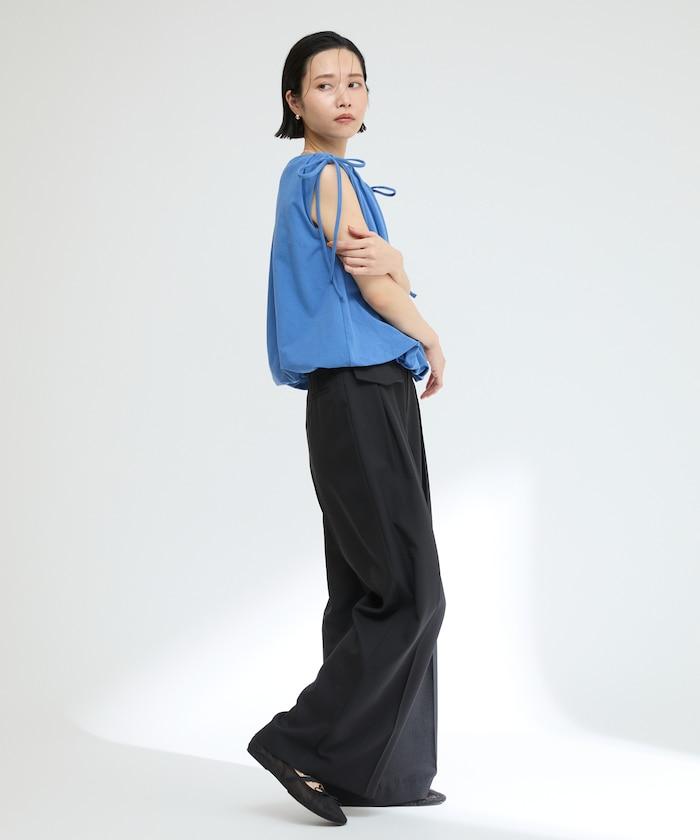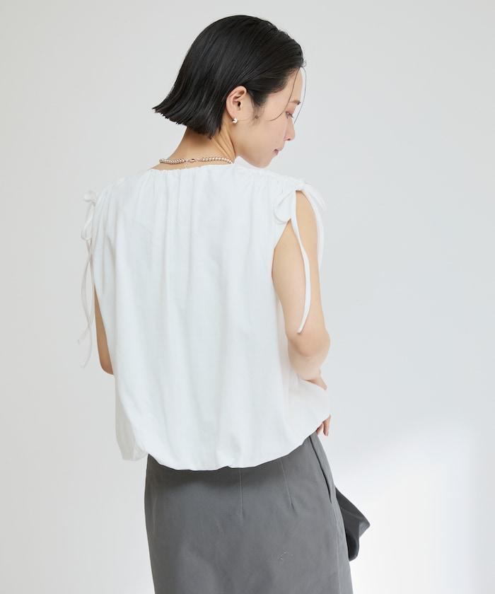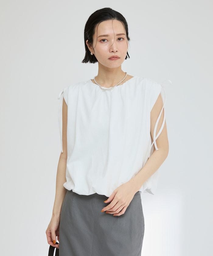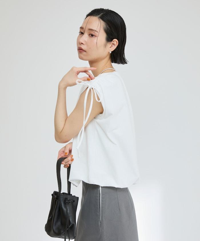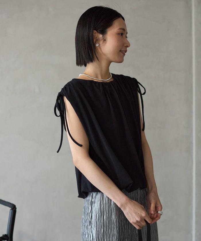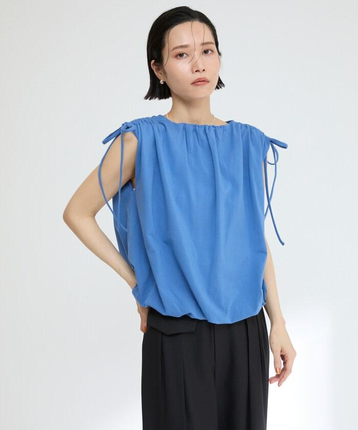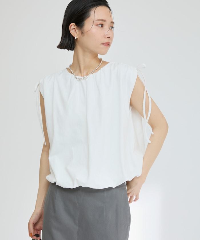 有機棉束褶垂墜上衣 / 法式短袖T恤 / 袖帶