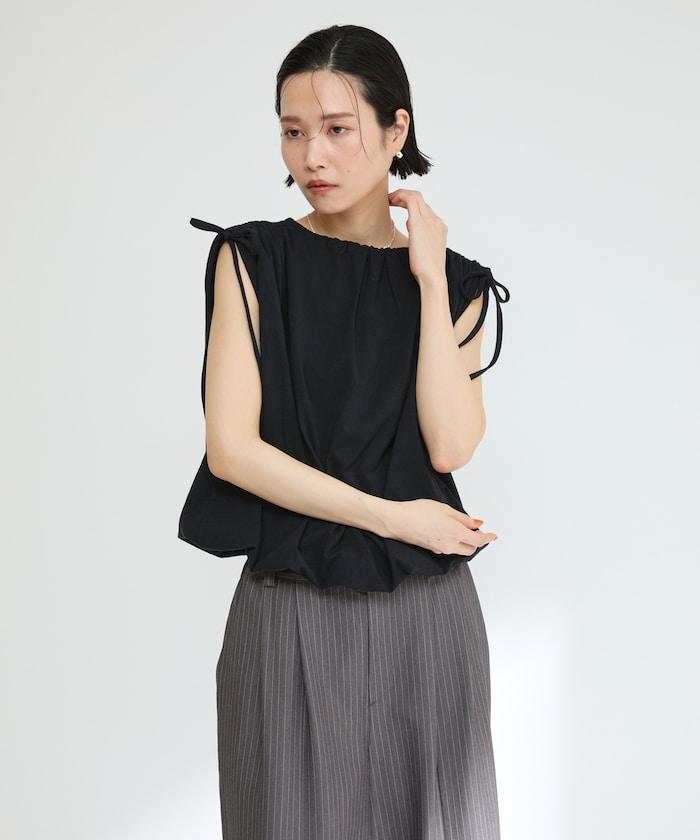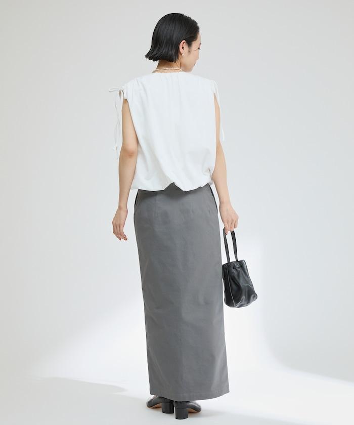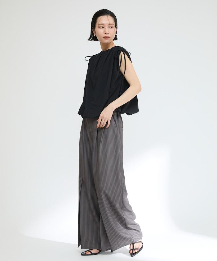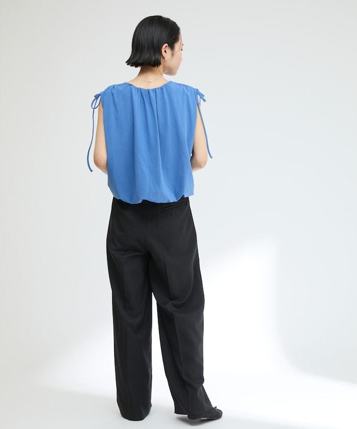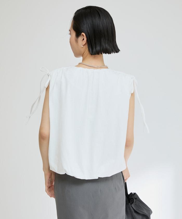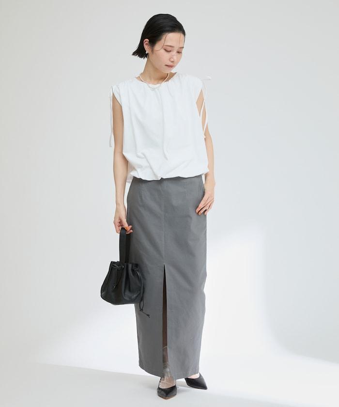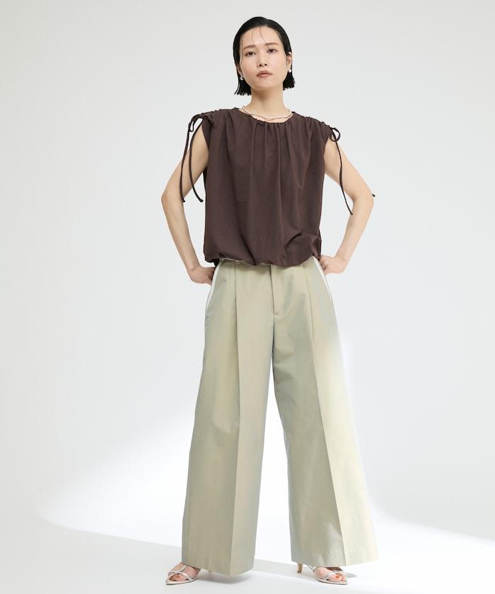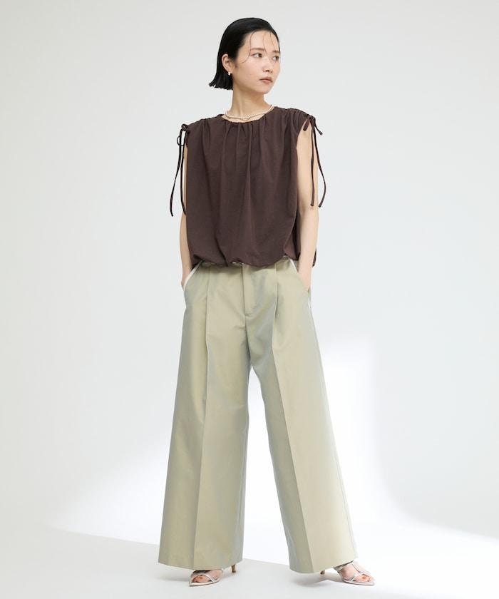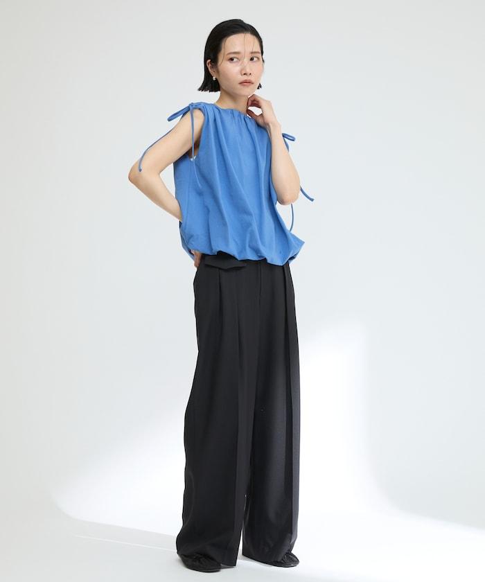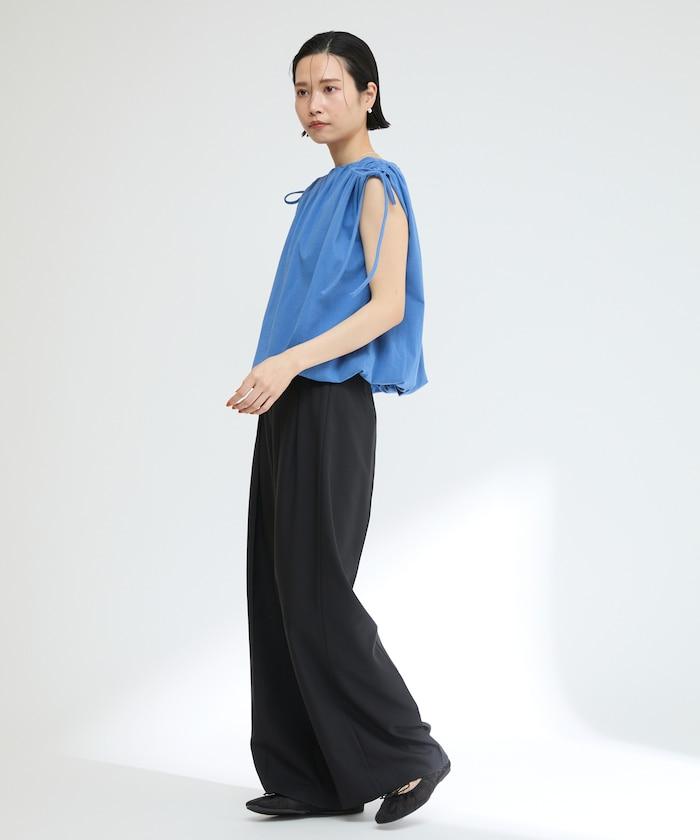 有機棉束褶垂墜上衣 / 法式短袖T恤 / 袖帶
