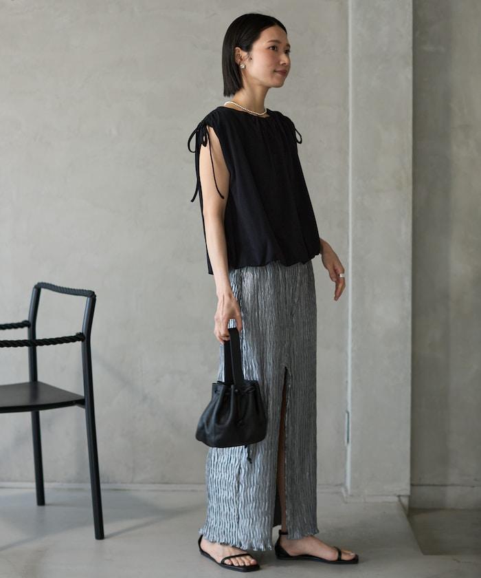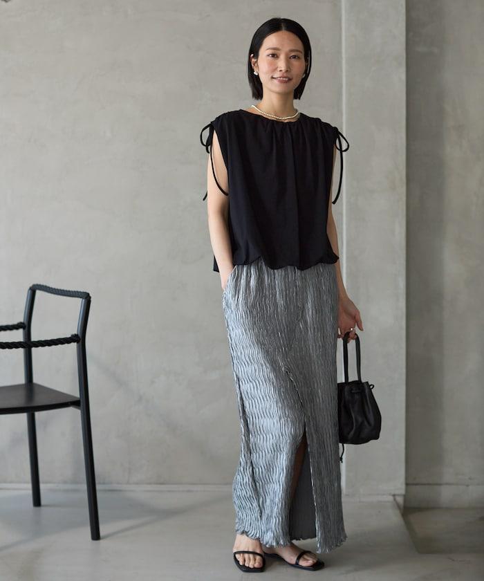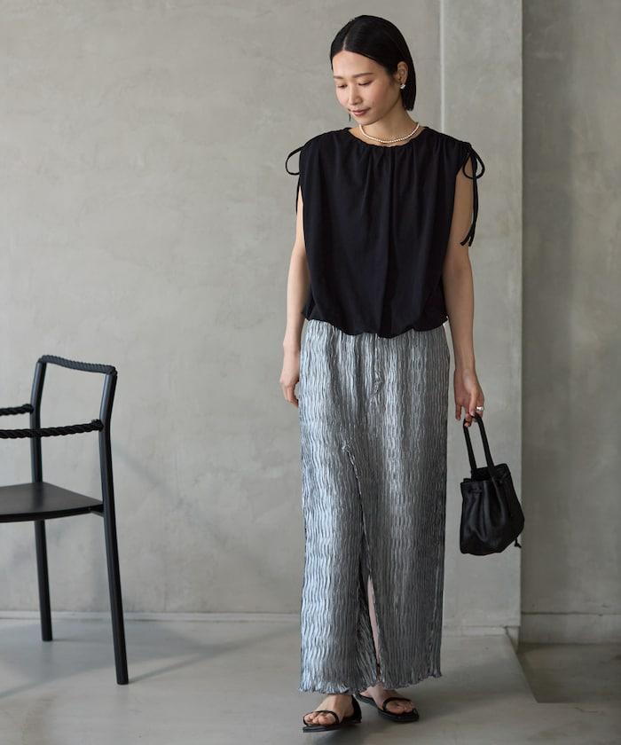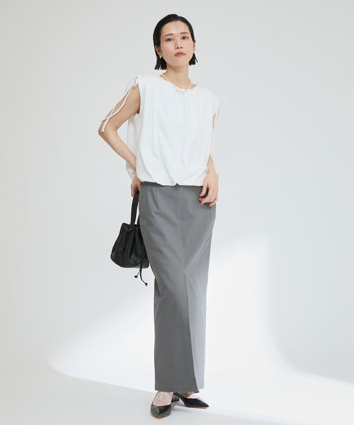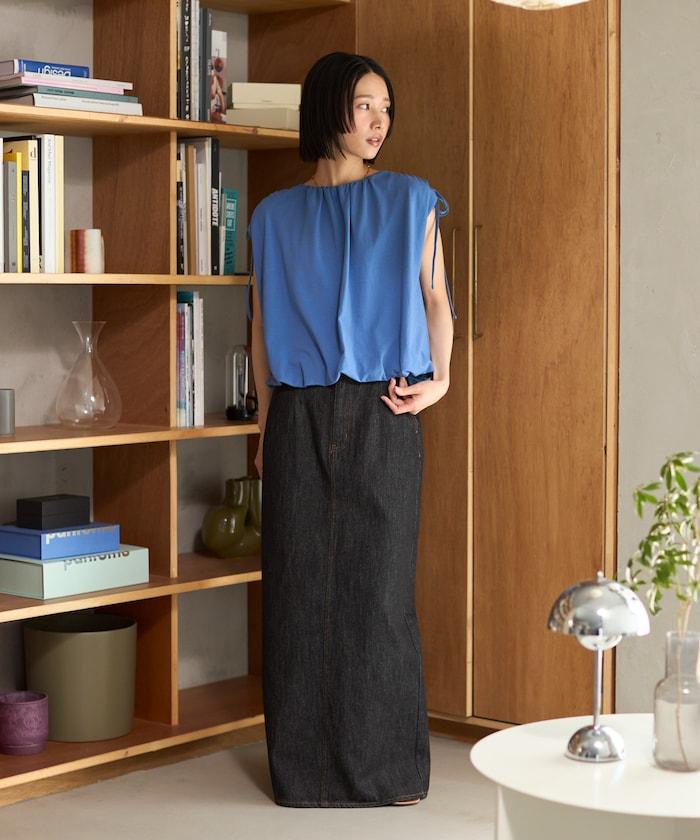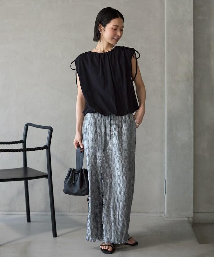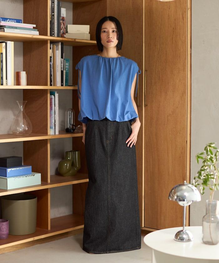 氣球下襬讓它看起來自然內收,因此與高腰打底褲很搭。由於這是一款設計剪裁和縫製的單品,因此可以搭配牛仔褲來完成簡單的造型。由於上身略顯豐滿,我們建議下身搭配乾淨的休閒褲、薄牛仔布或 I 字裙。