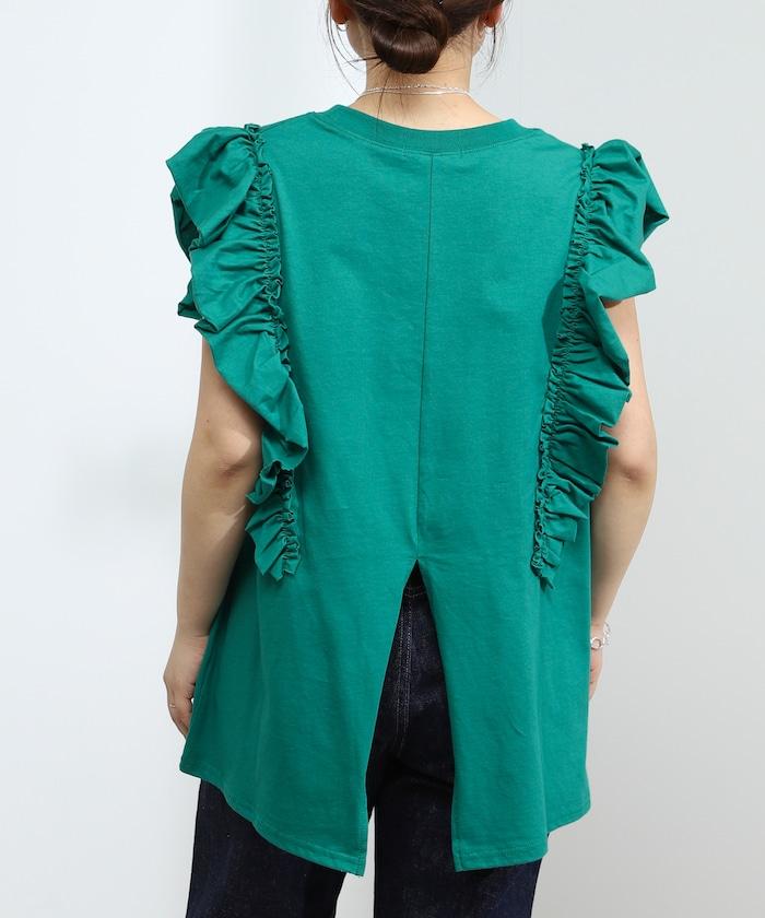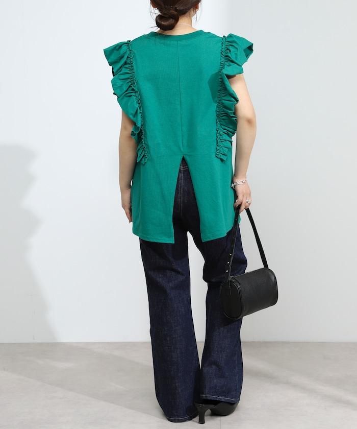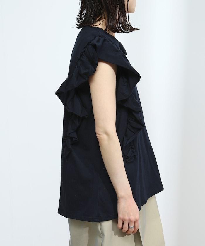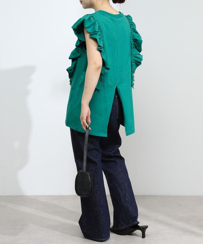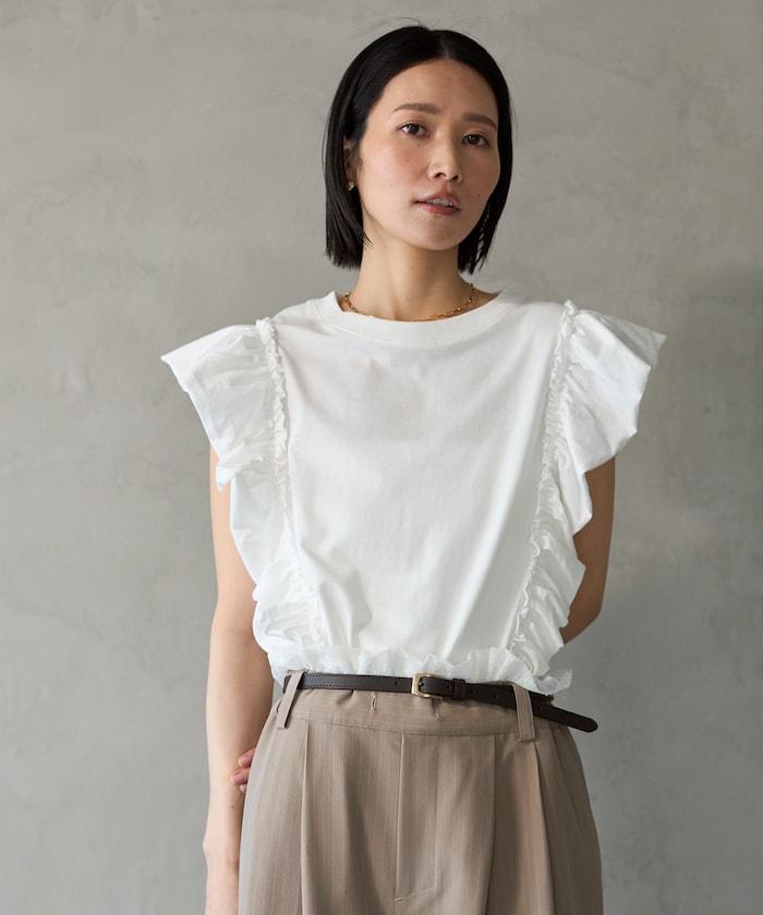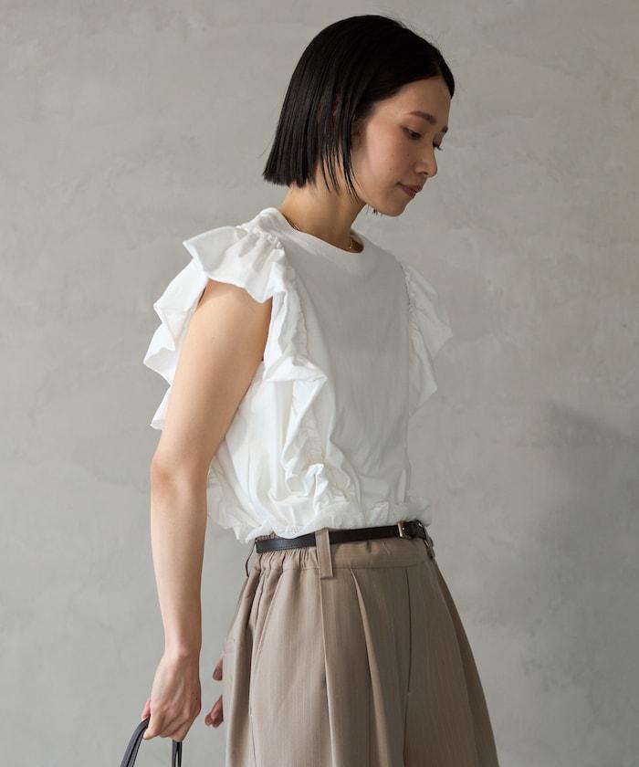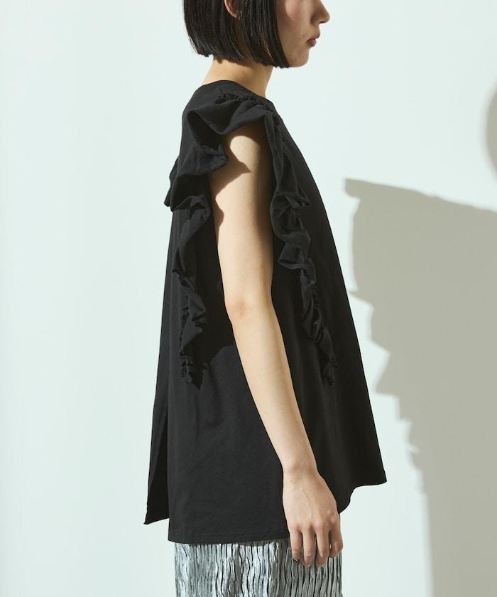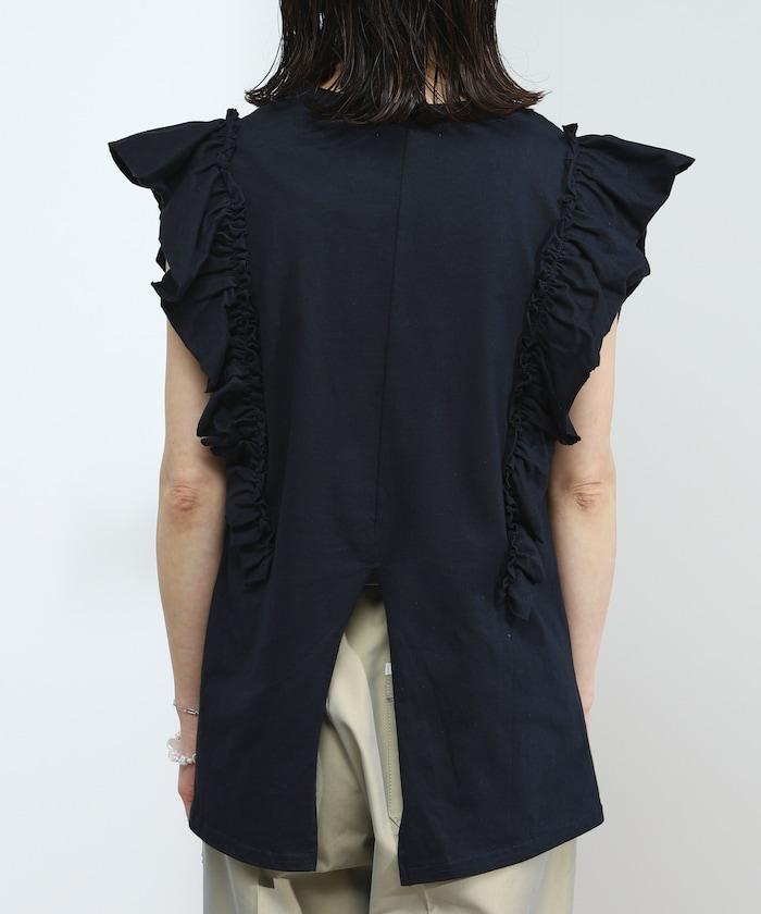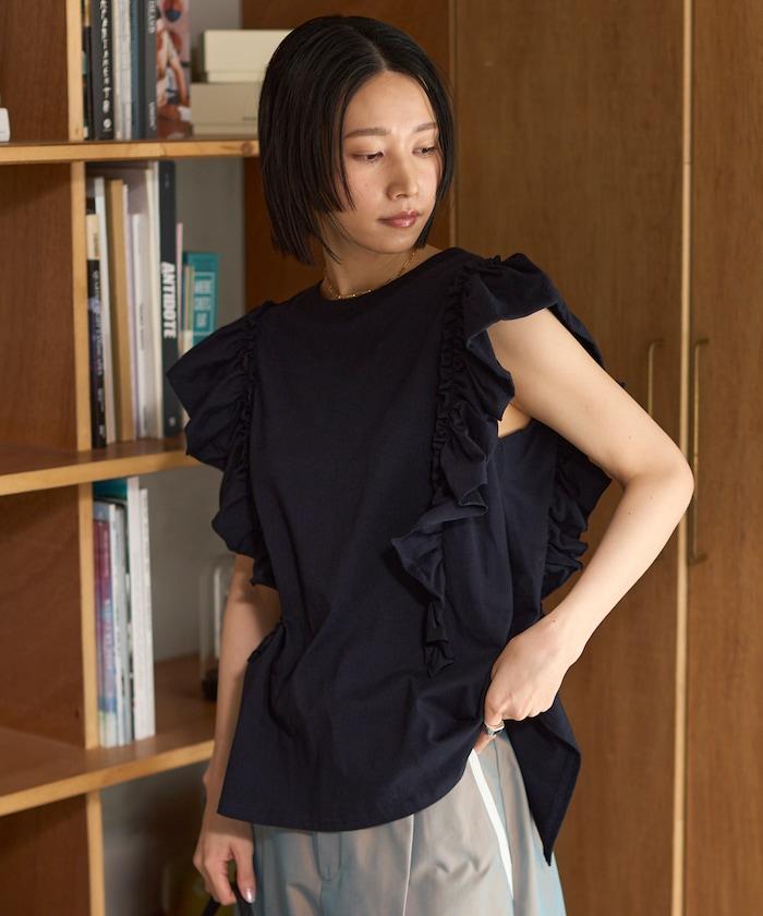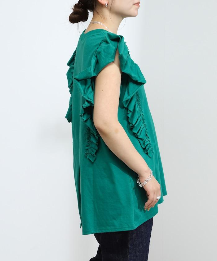 有機棉荷葉邊上衣 / 肩部荷葉設計上衣 / 後開叉法式短袖T恤