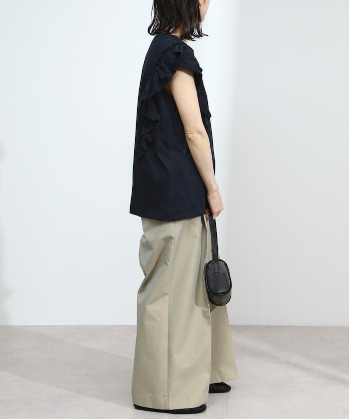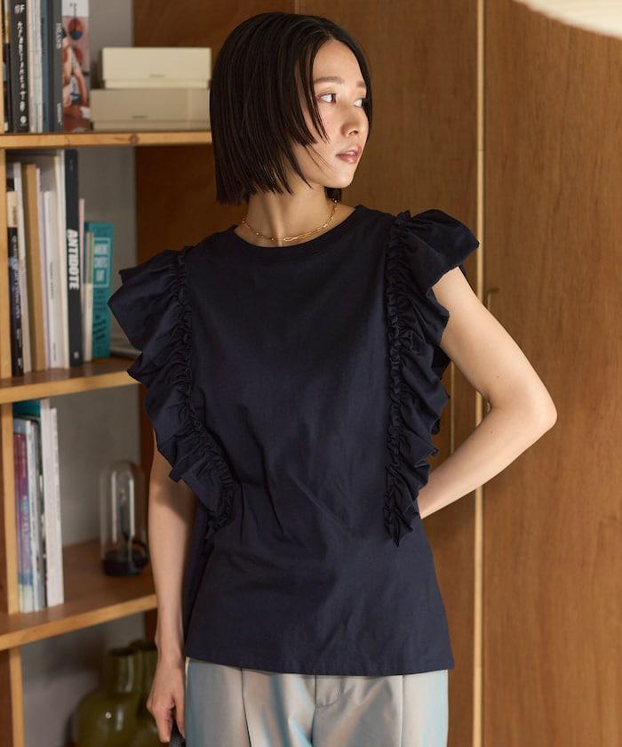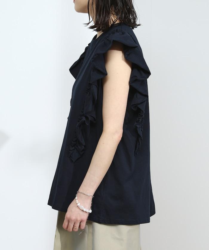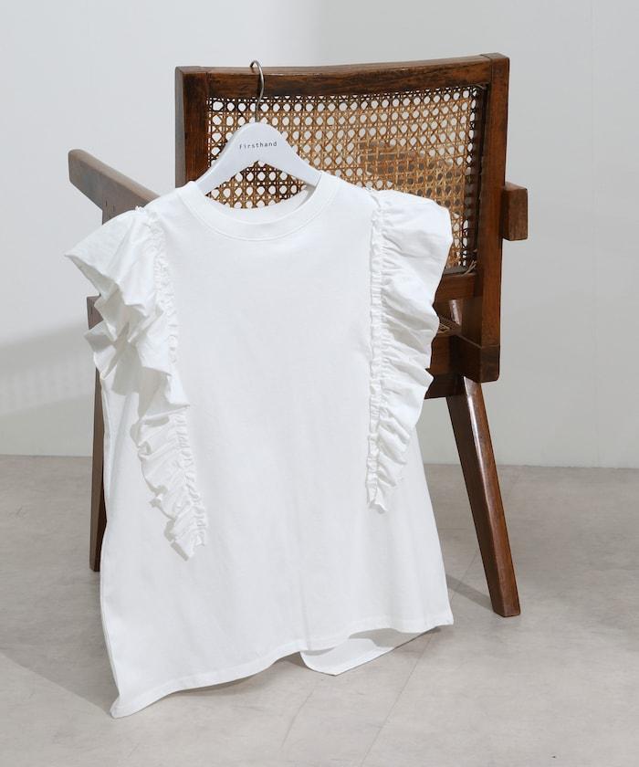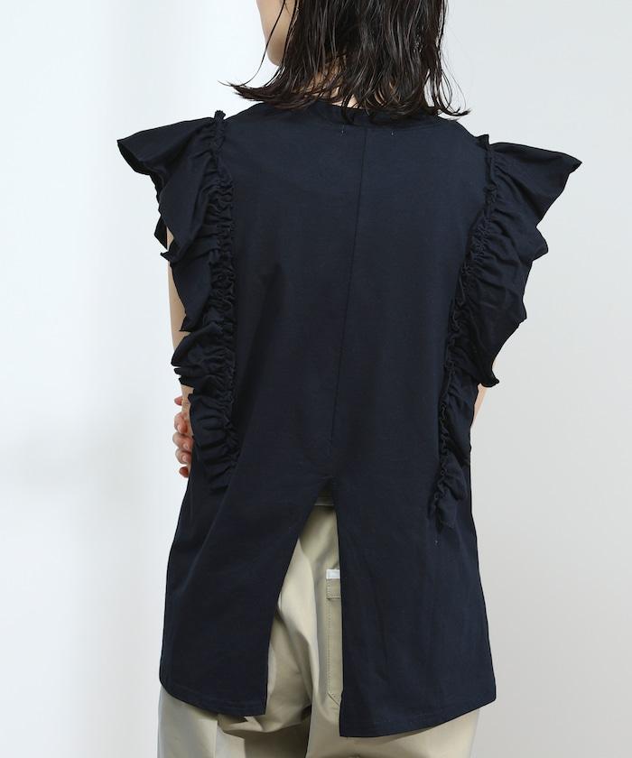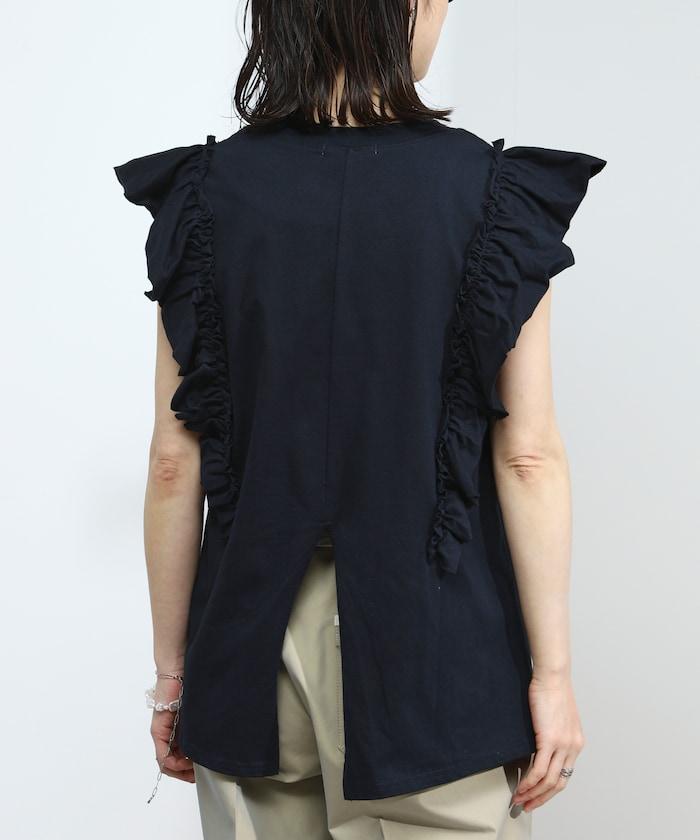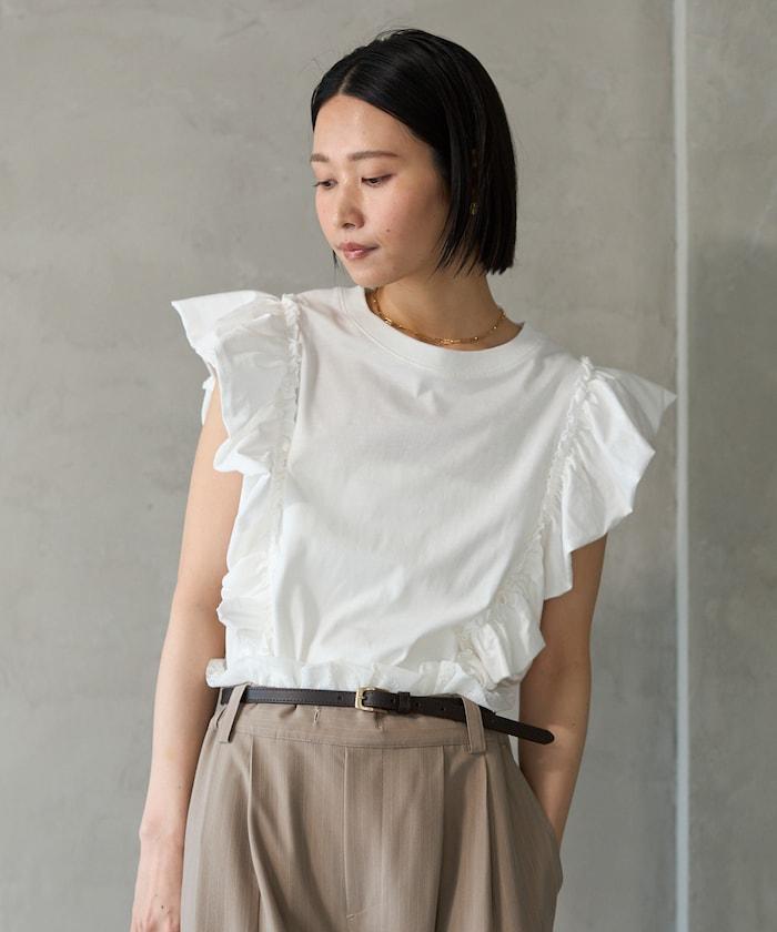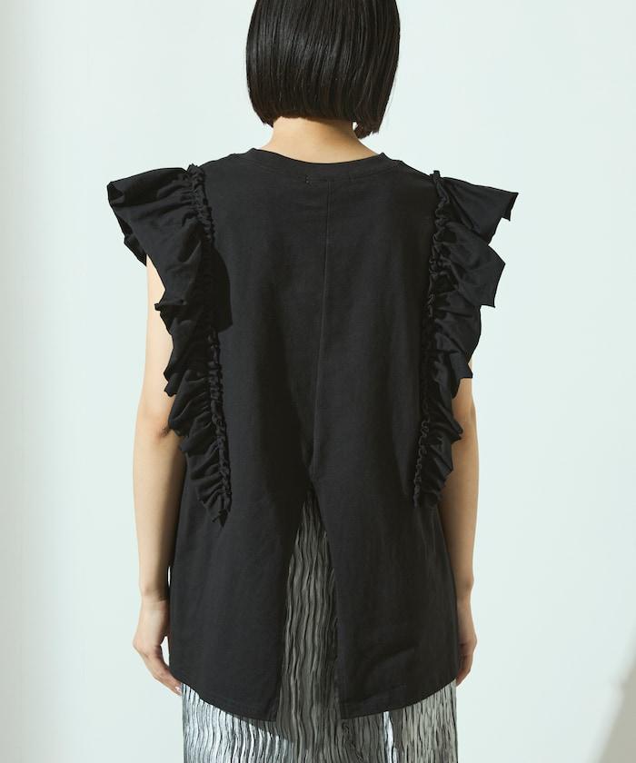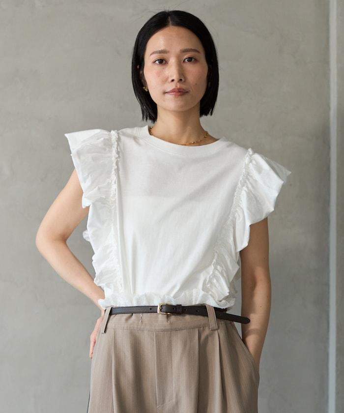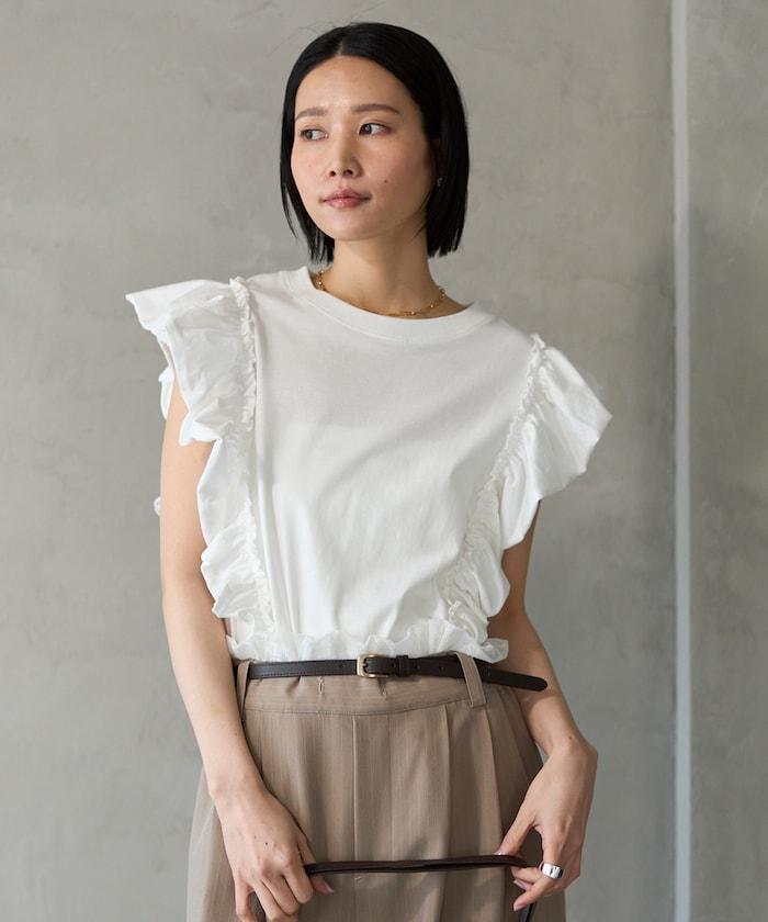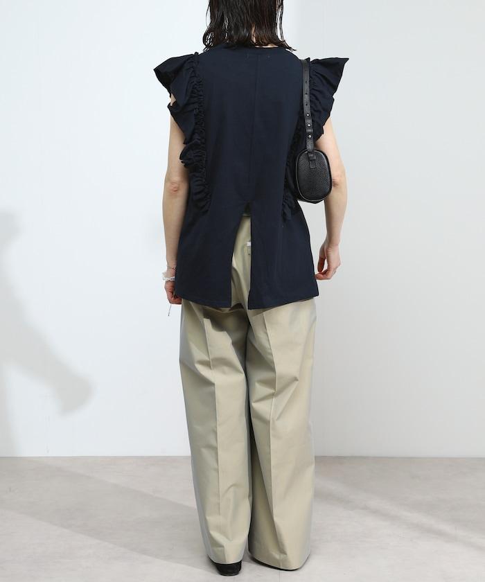 有機棉荷葉邊上衣 / 肩部荷葉設計上衣 / 後開叉法式短袖T恤