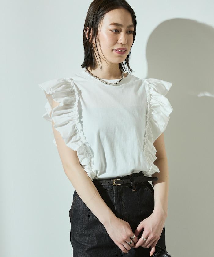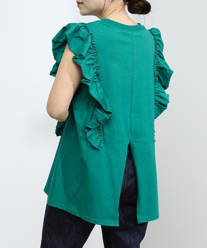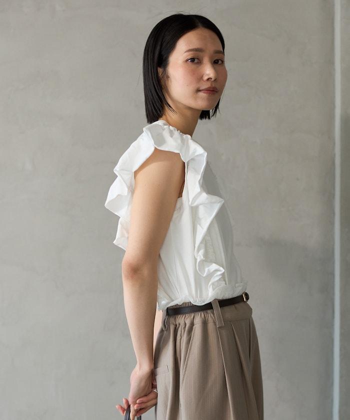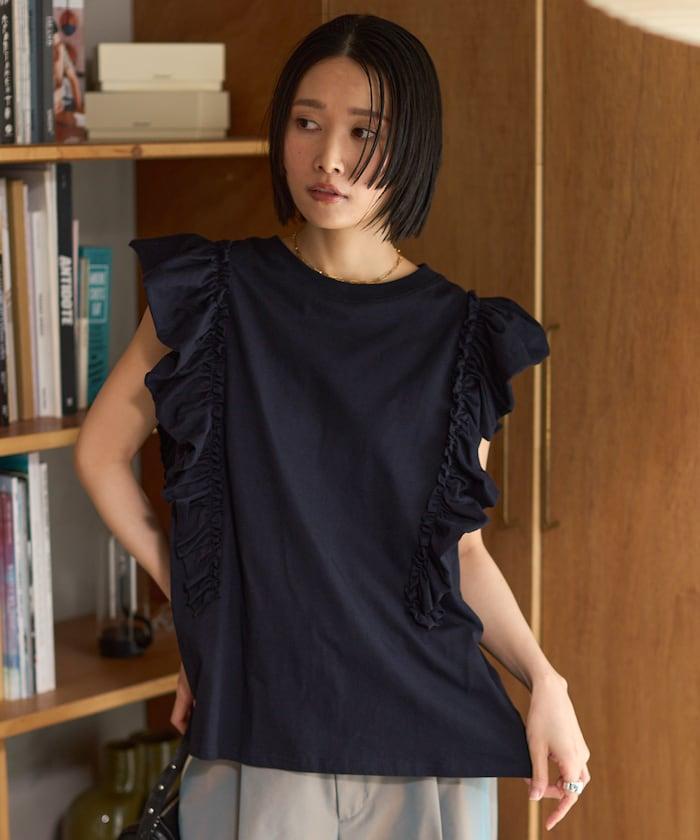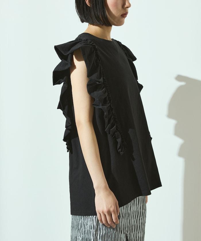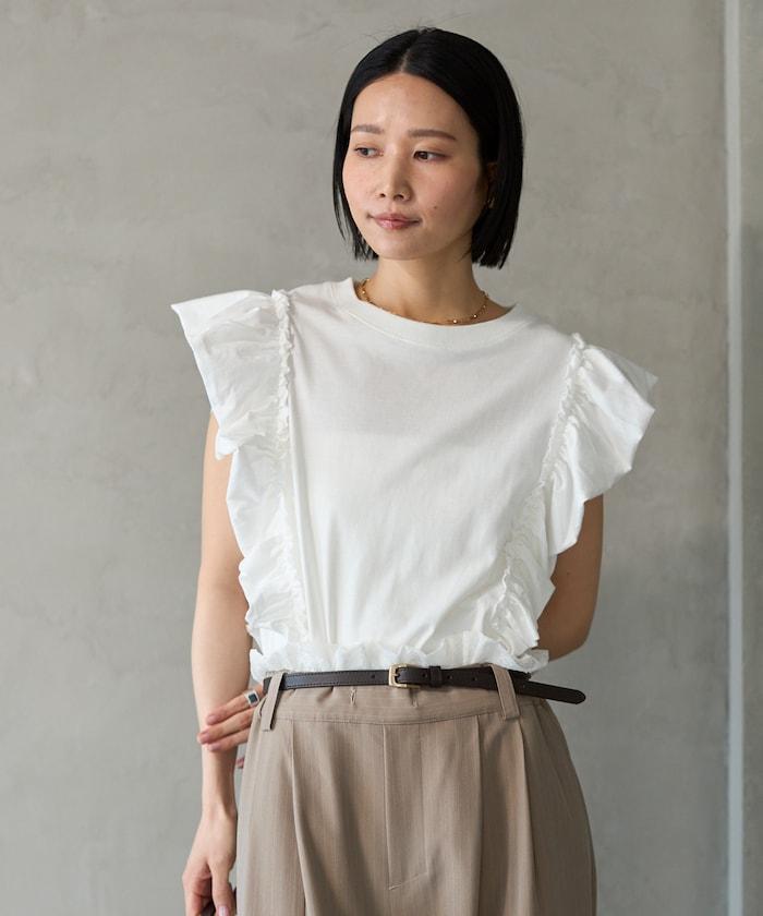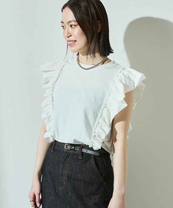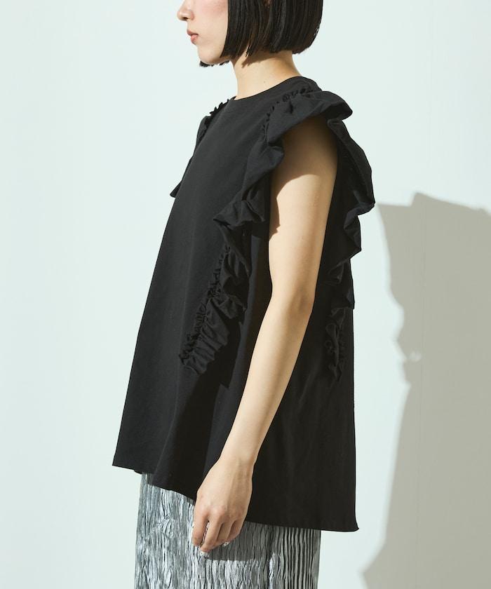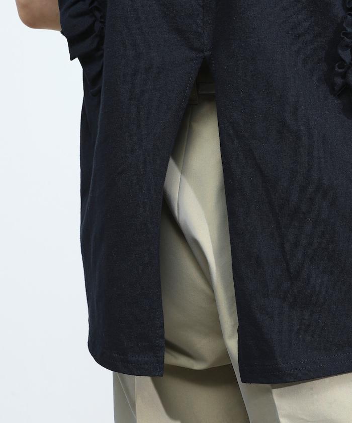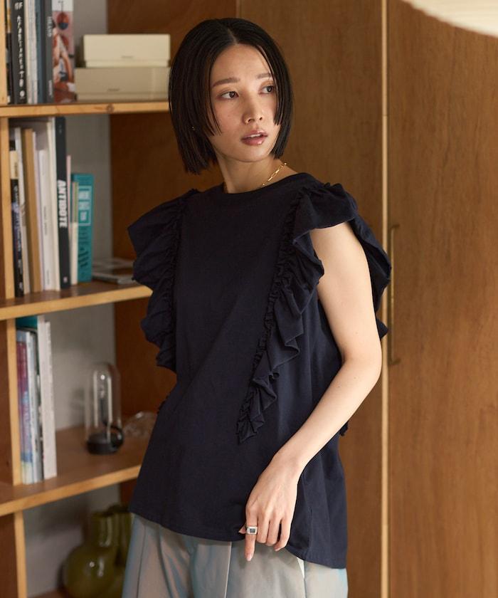 有機棉荷葉邊上衣 / 肩部荷葉設計上衣 / 後開叉法式短袖T恤