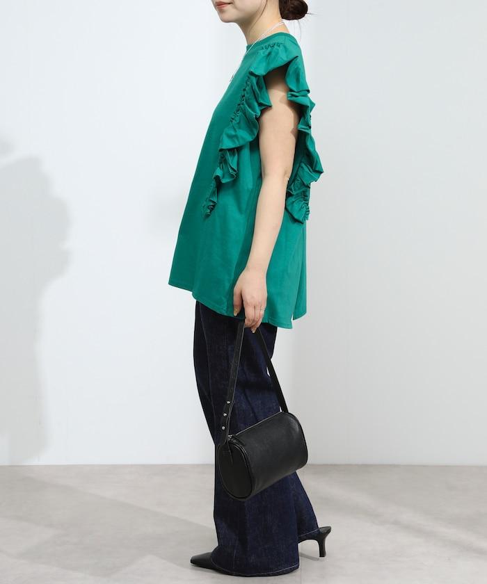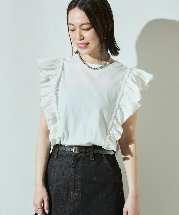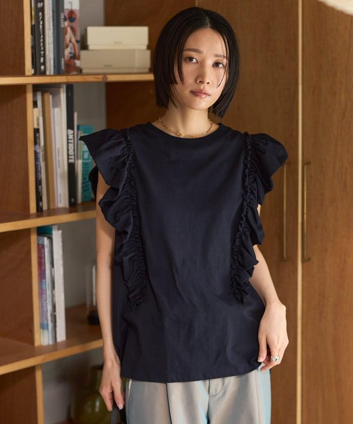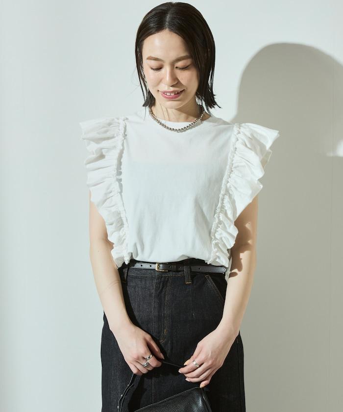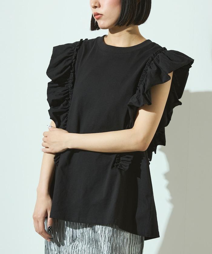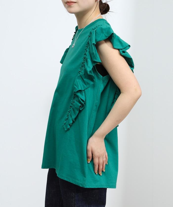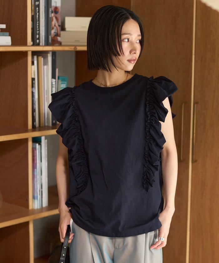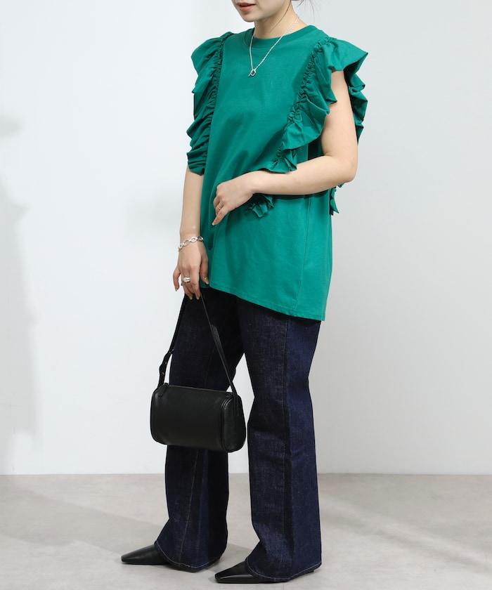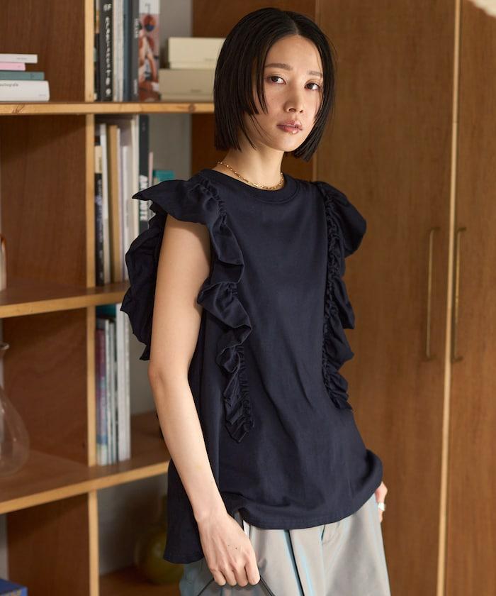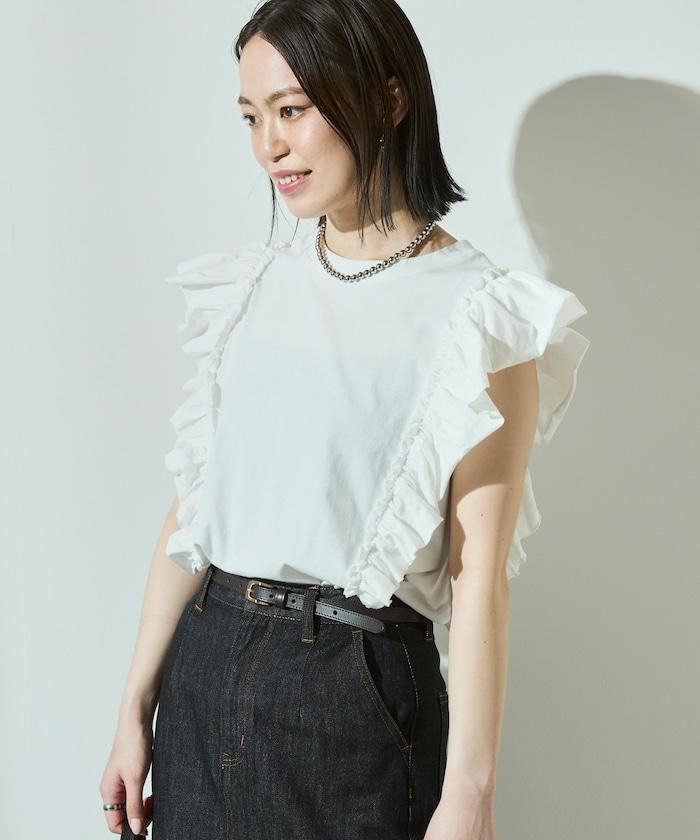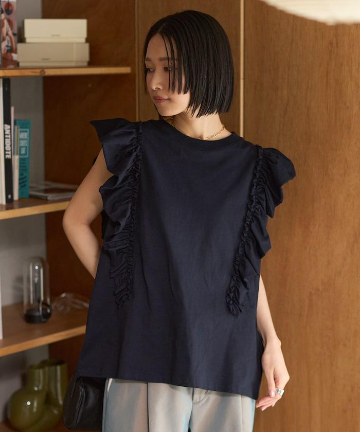 有機棉荷葉邊上衣 / 肩部荷葉設計上衣 / 後開叉法式短袖T恤