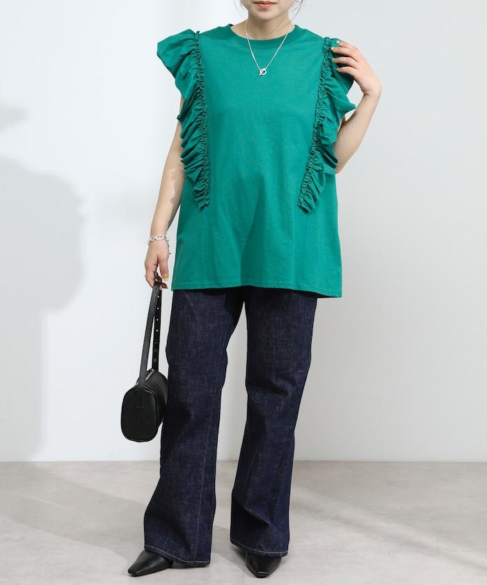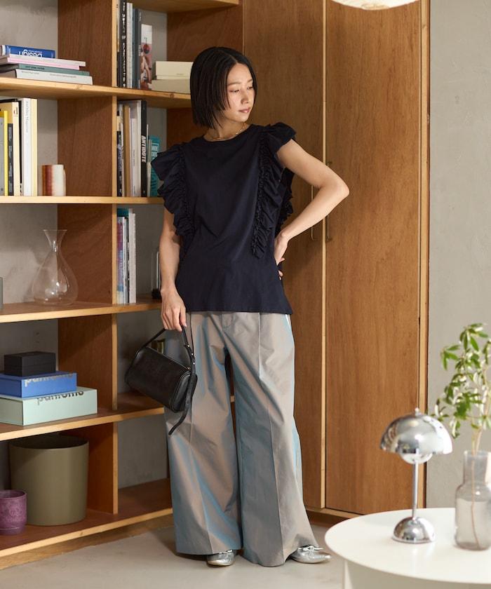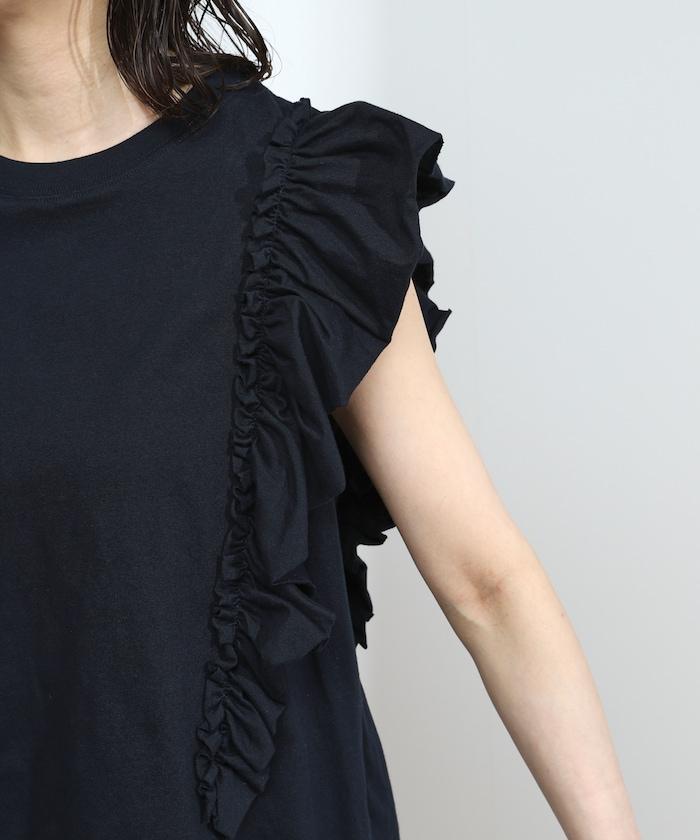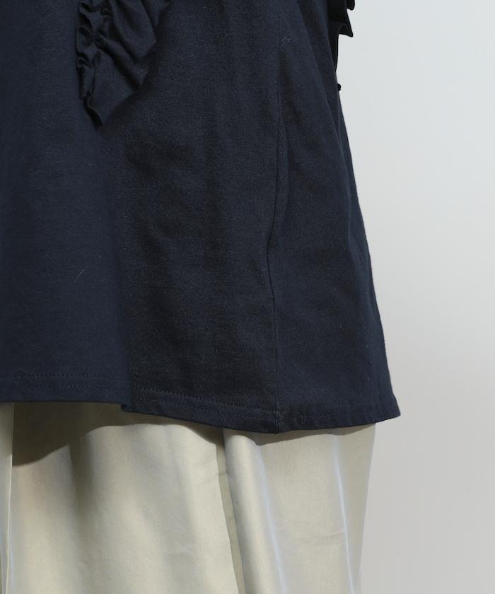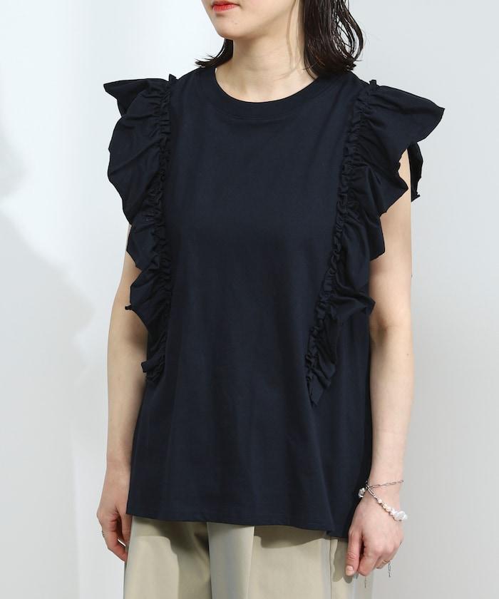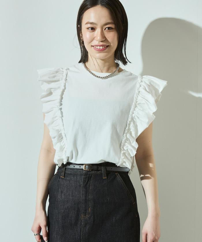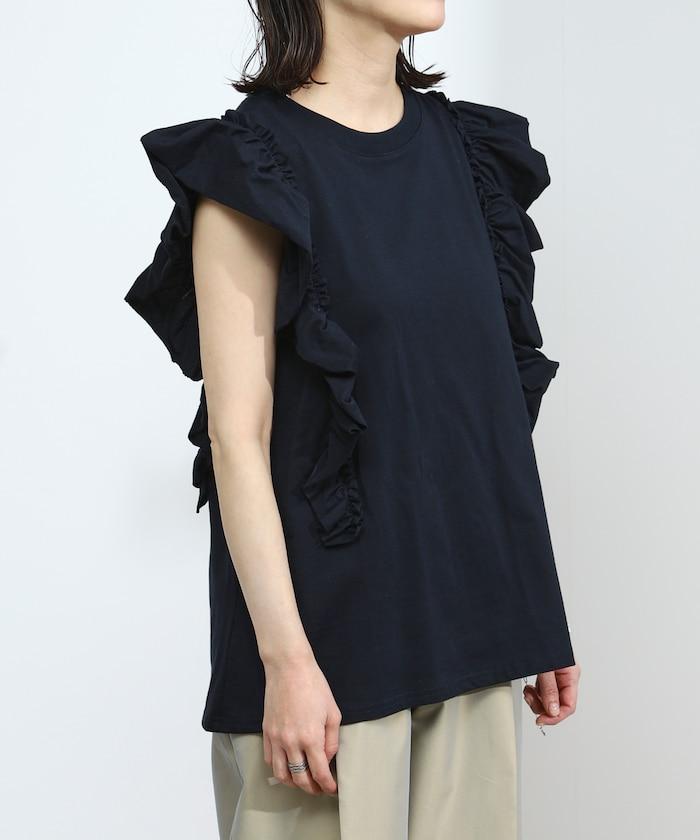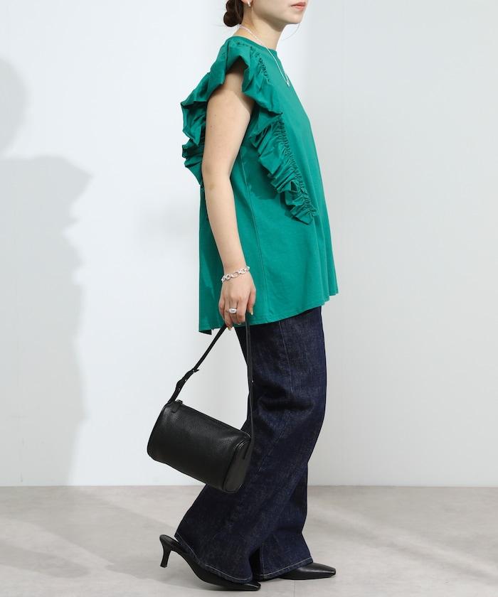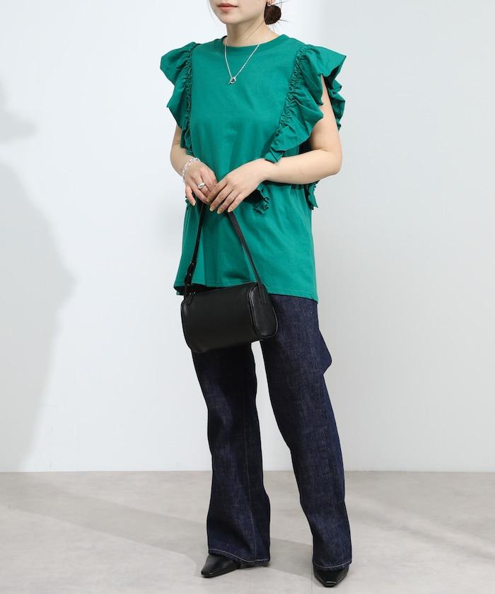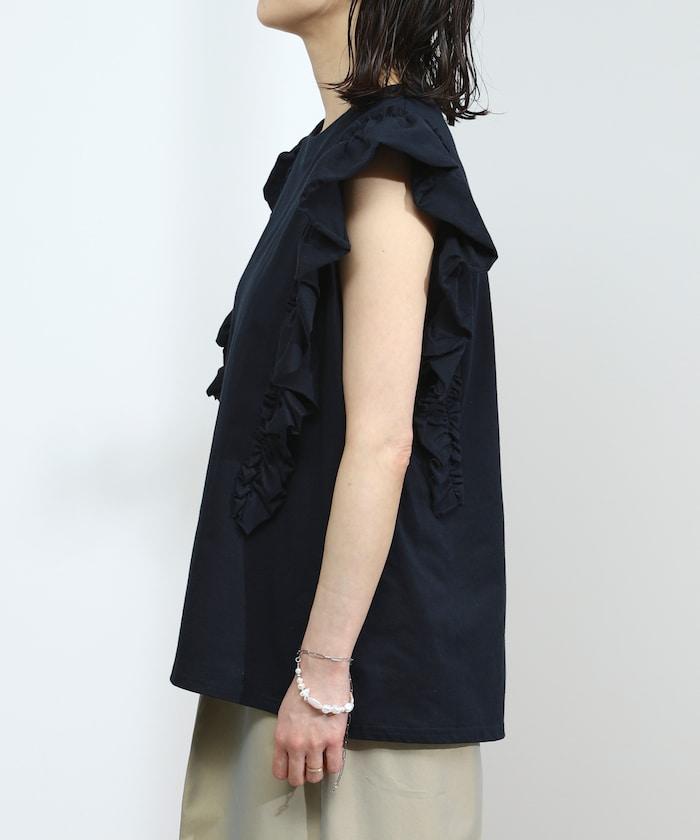 有機棉荷葉邊上衣 / 肩部荷葉設計上衣 / 後開叉法式短袖T恤