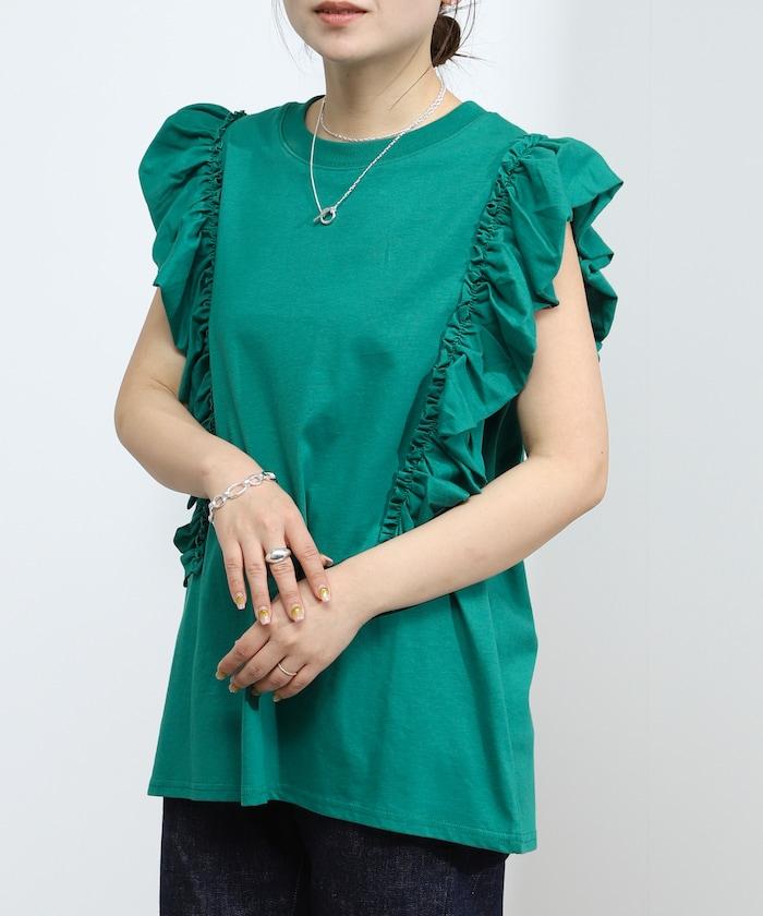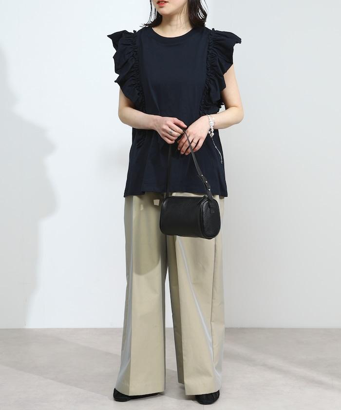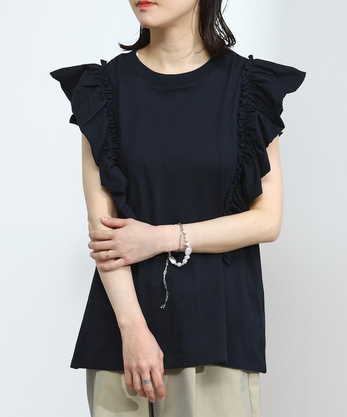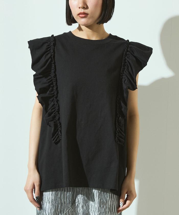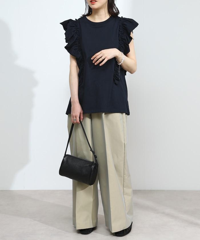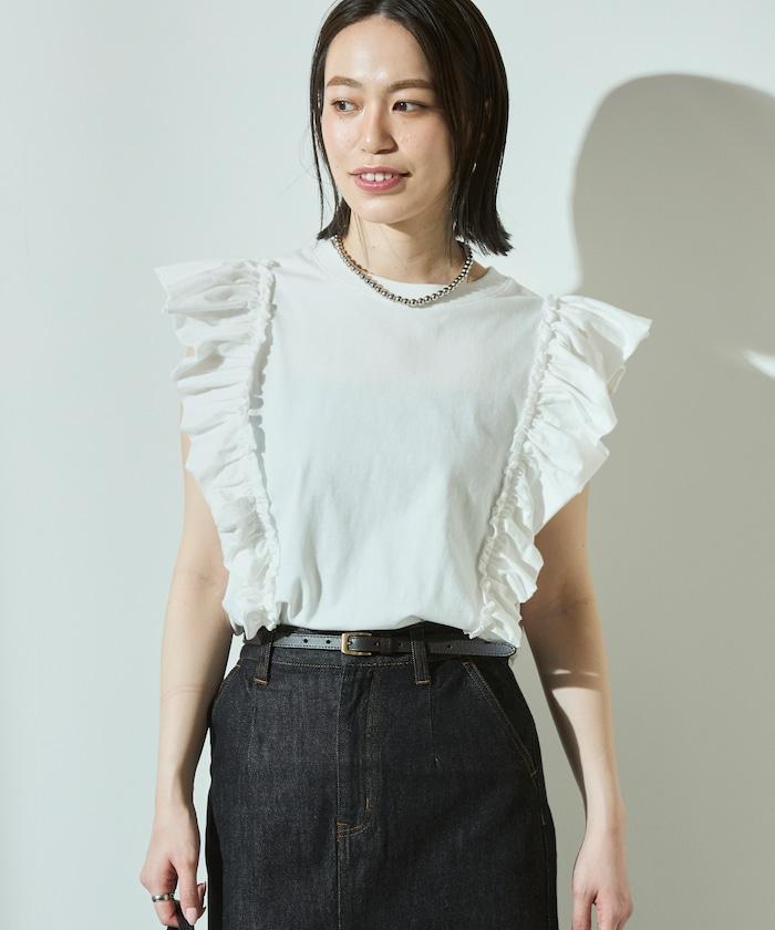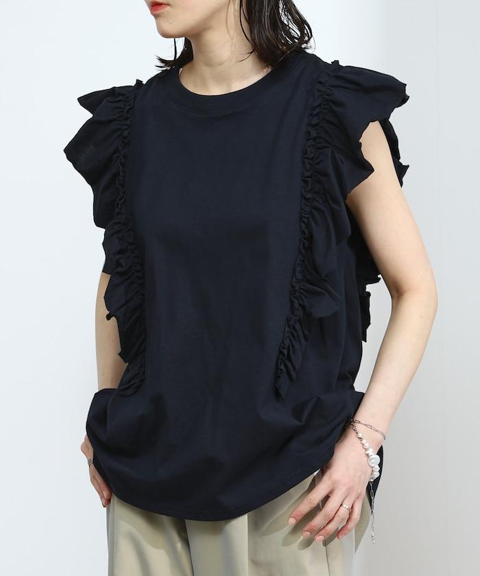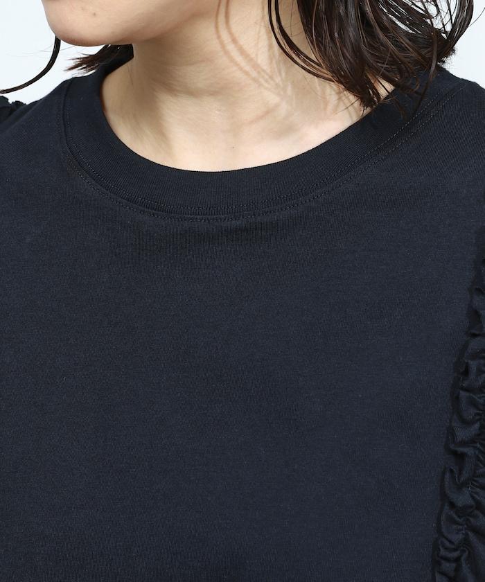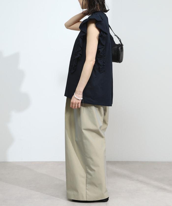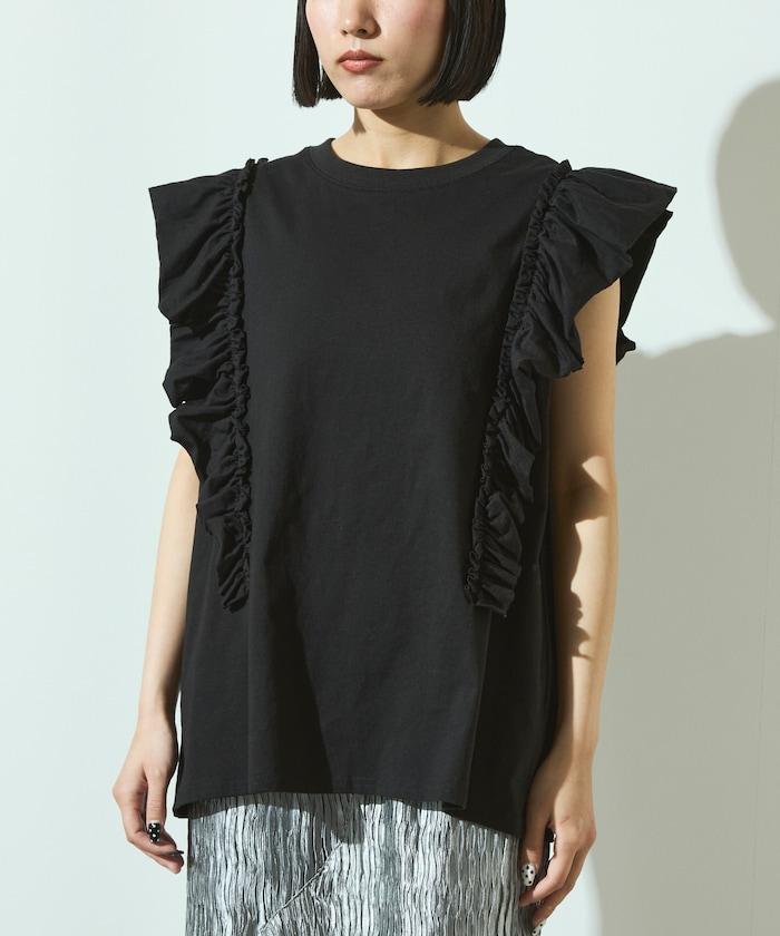 有機棉荷葉邊上衣 / 肩部荷葉設計上衣 / 後開叉法式短袖T恤