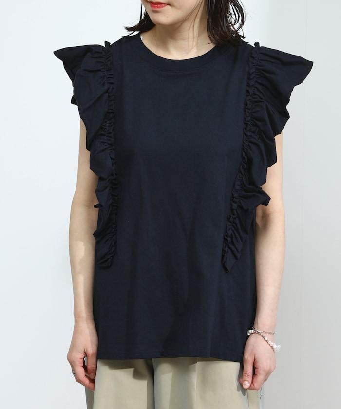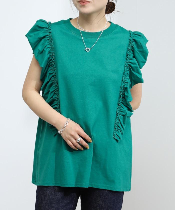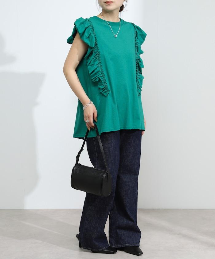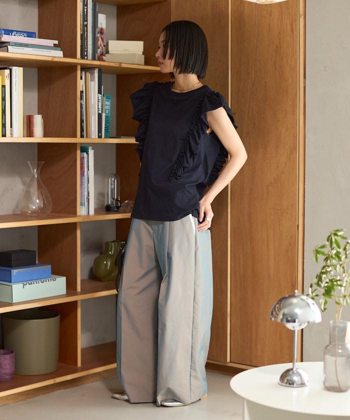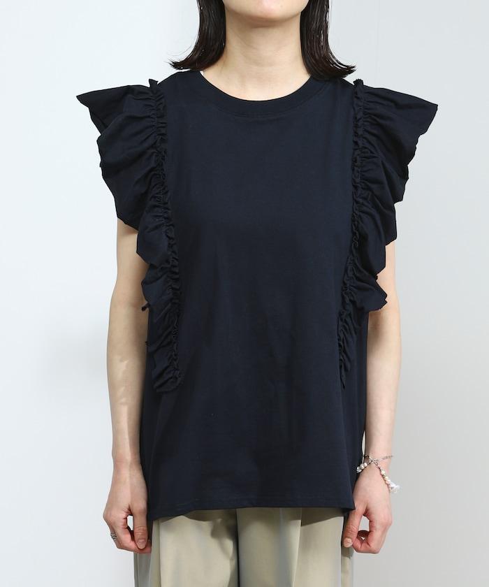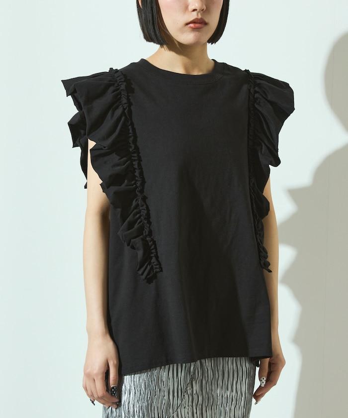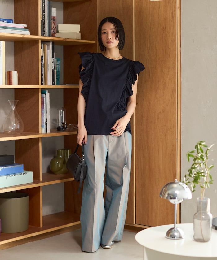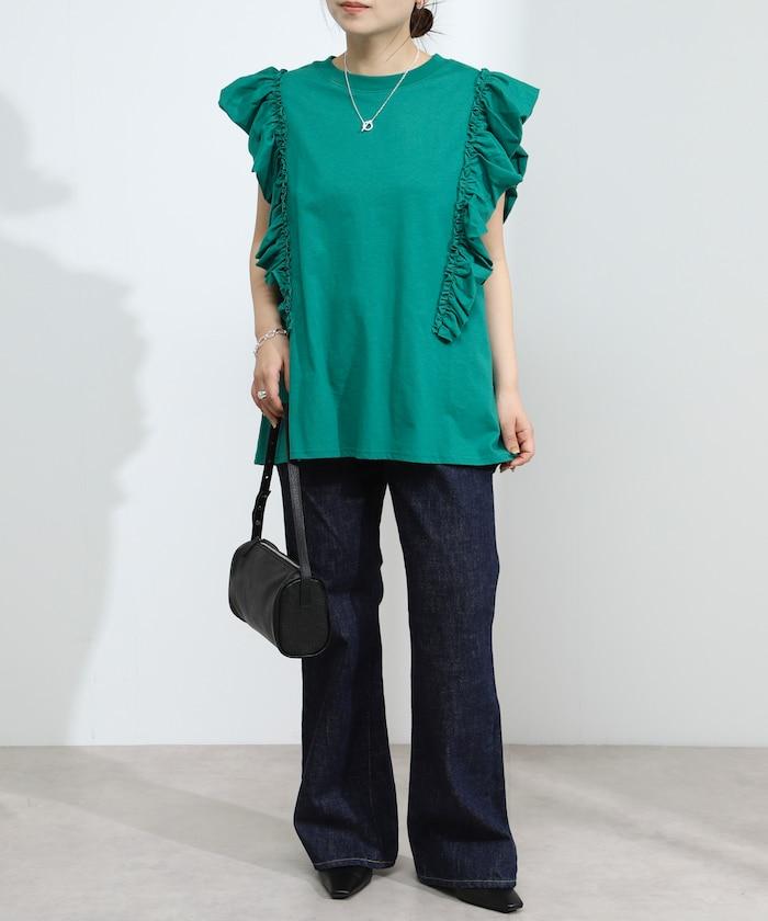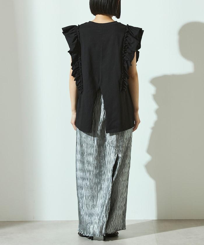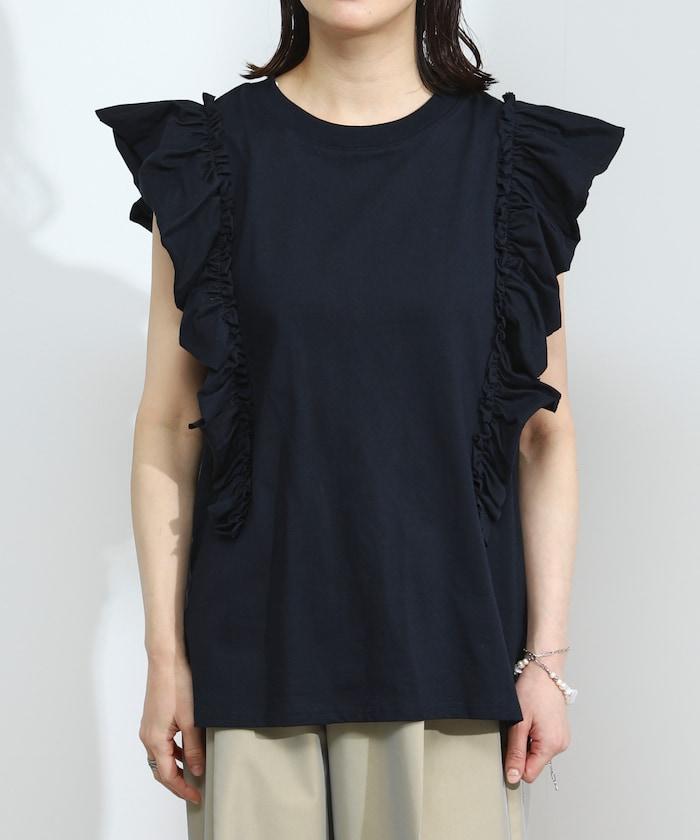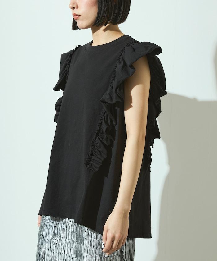 有機棉荷葉邊上衣 / 肩部荷葉設計上衣 / 後開叉法式短袖T恤
