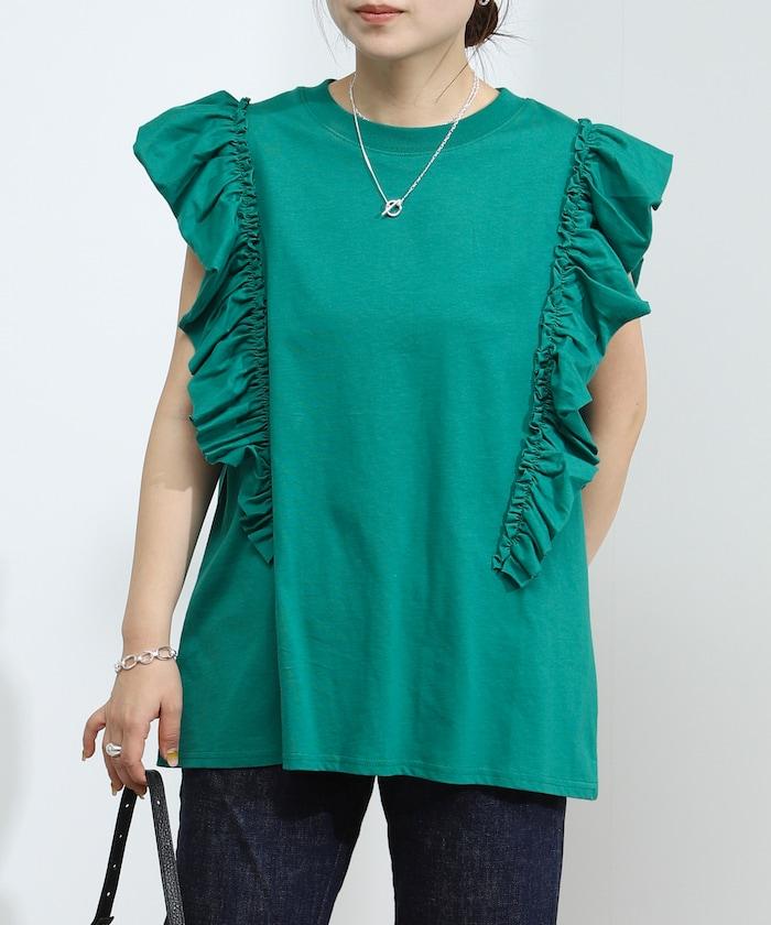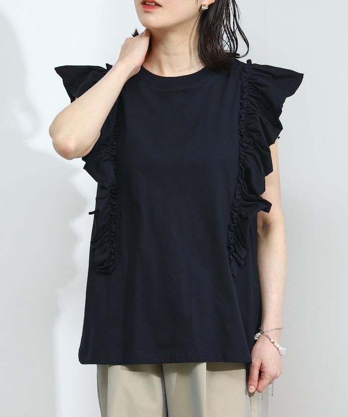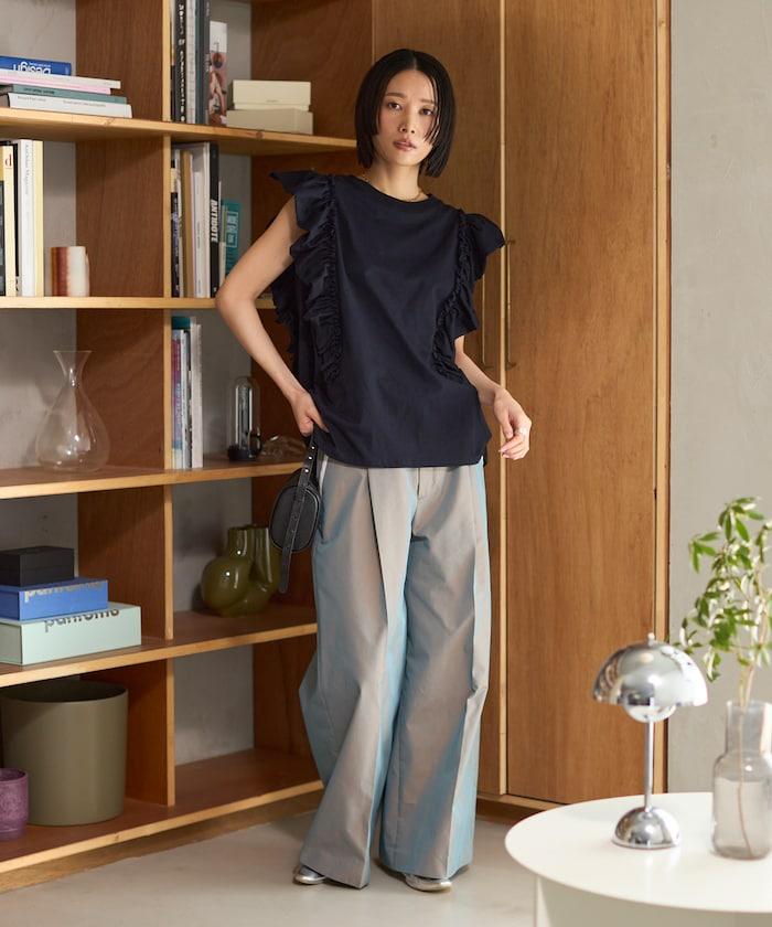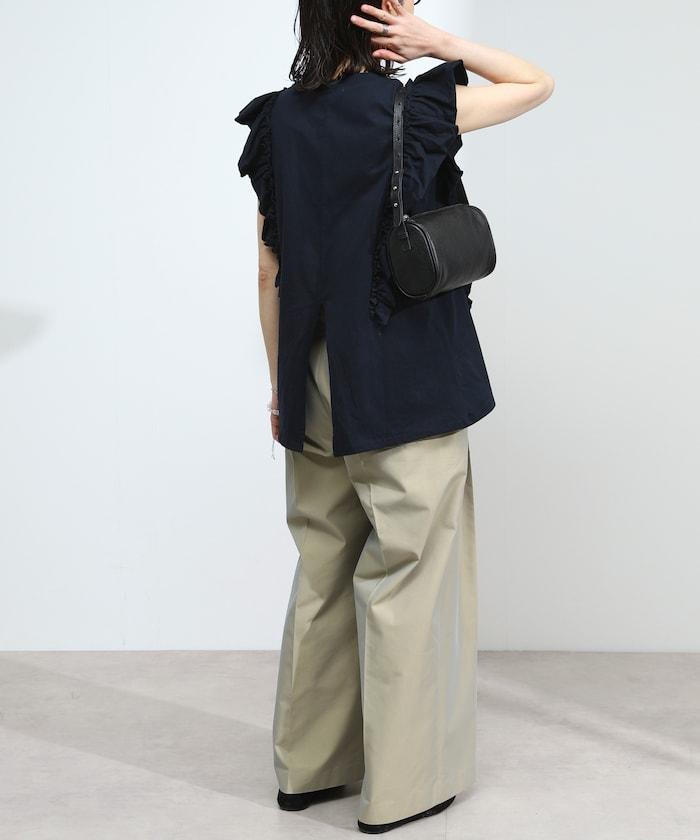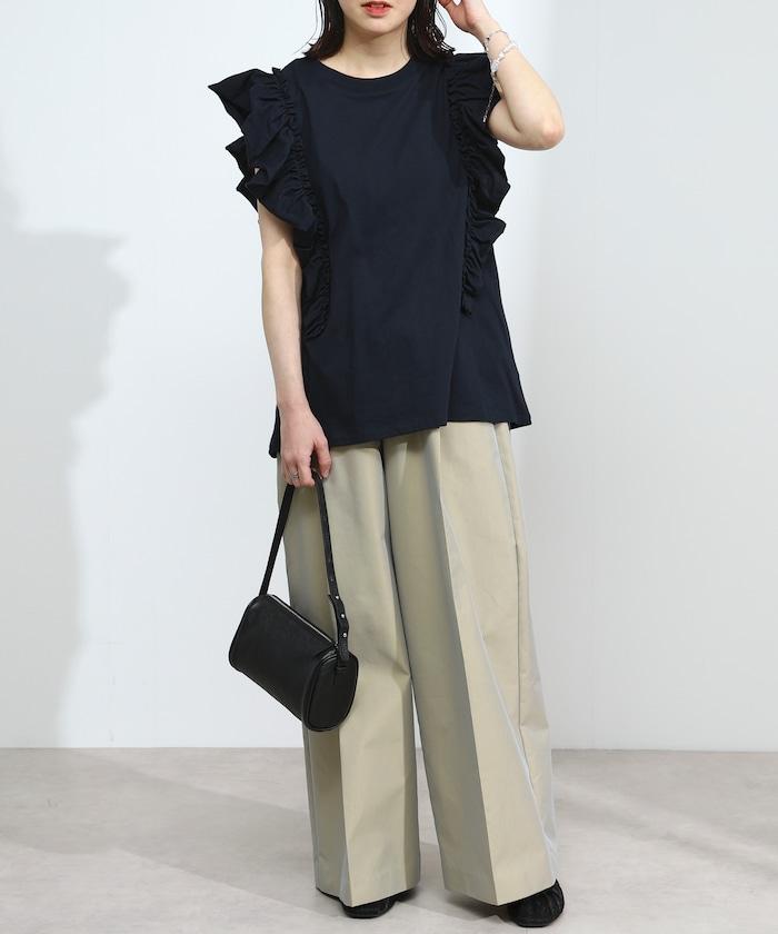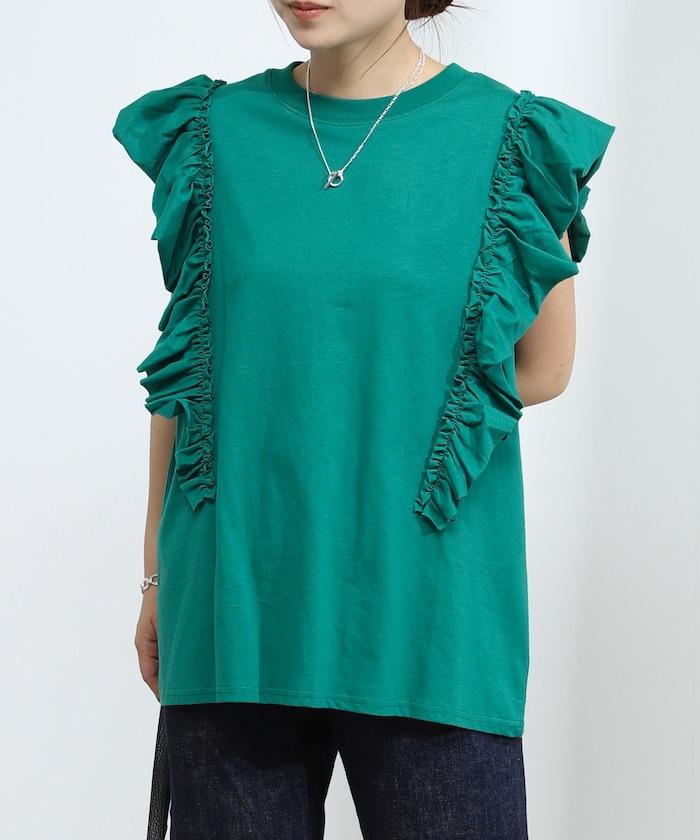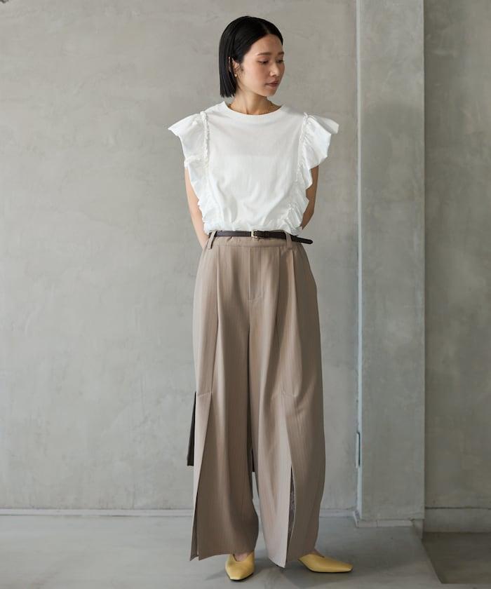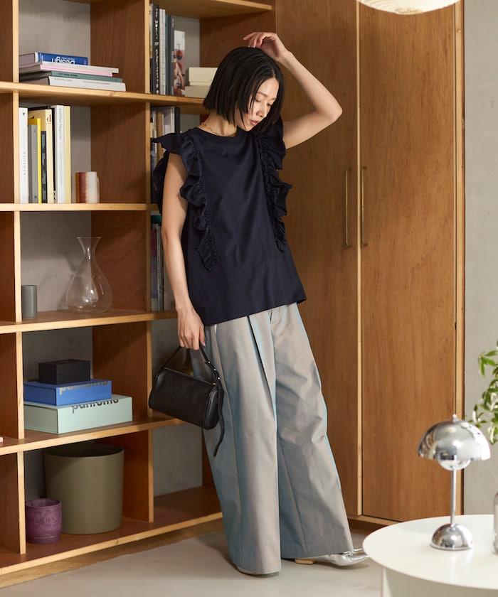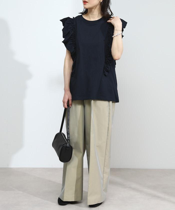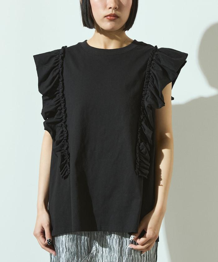有機棉荷葉邊上衣 / 肩部荷葉設計上衣 / 後開叉法式短袖T恤