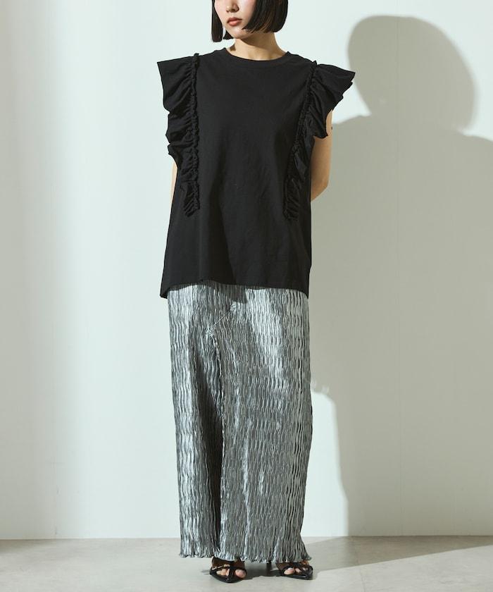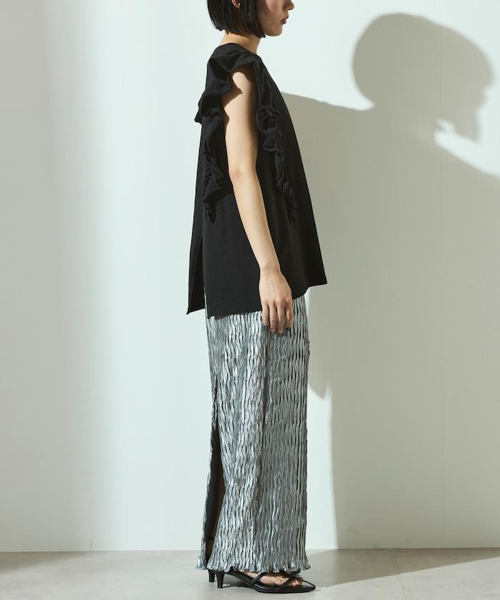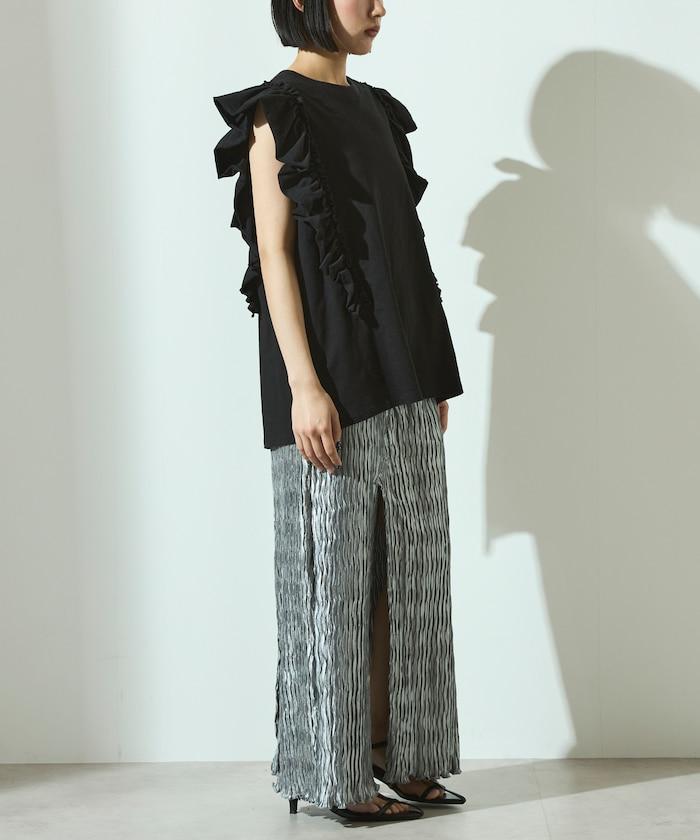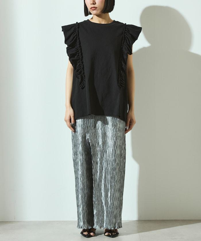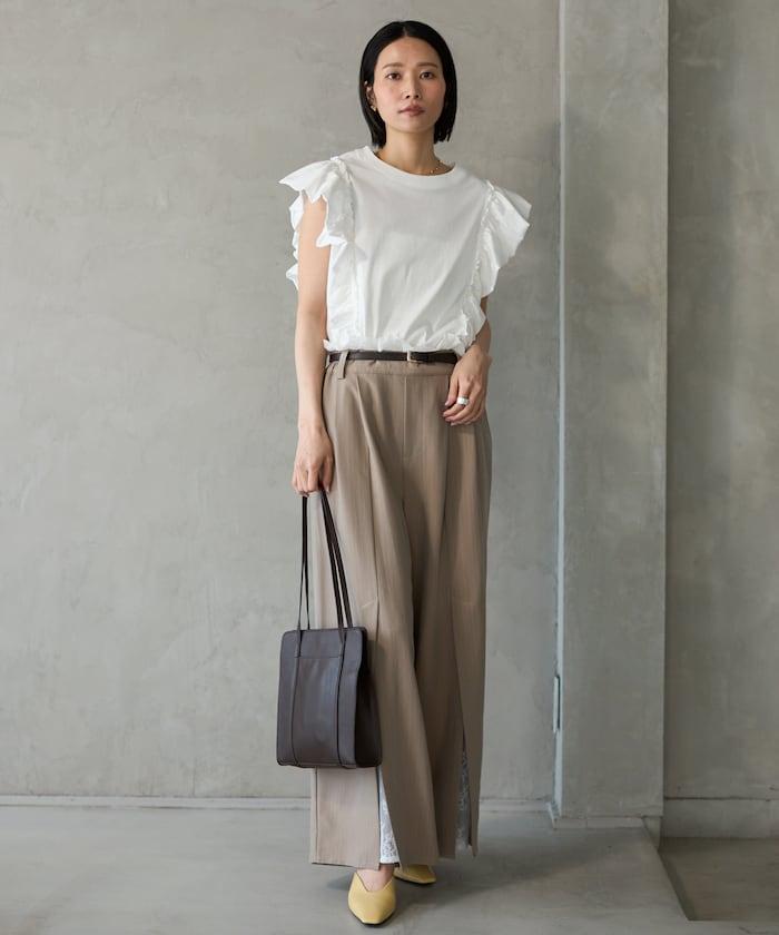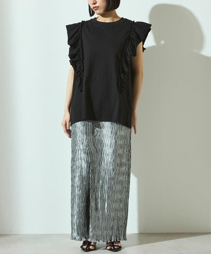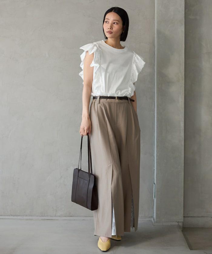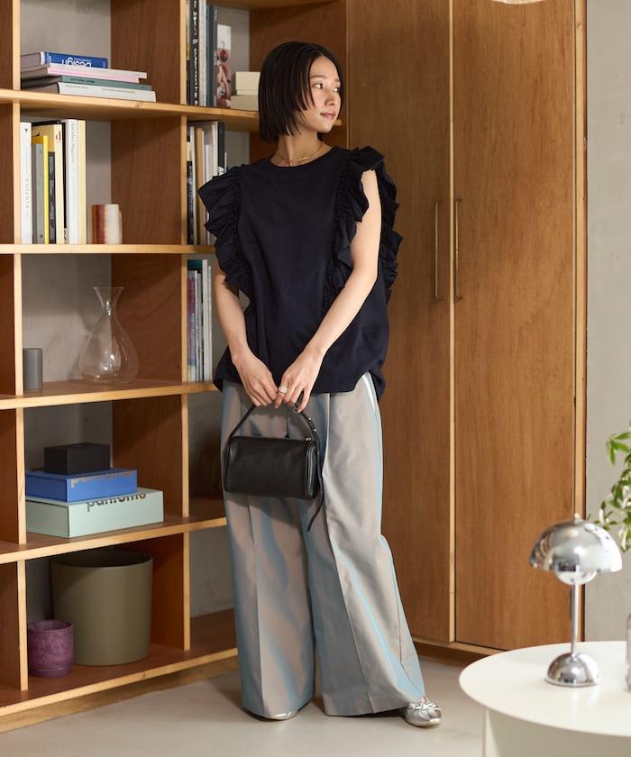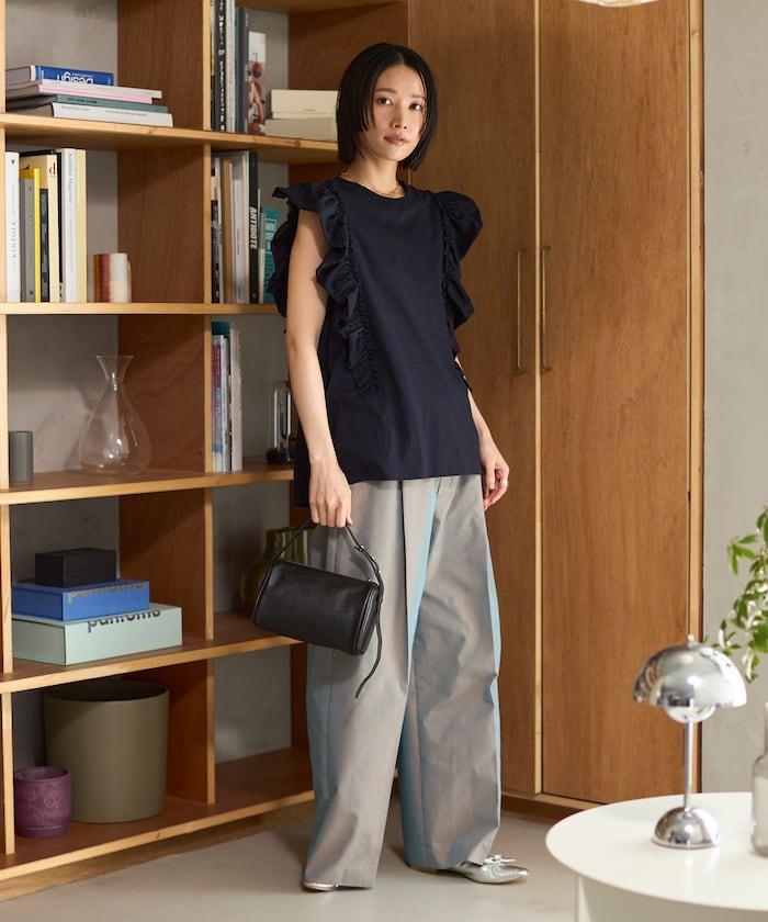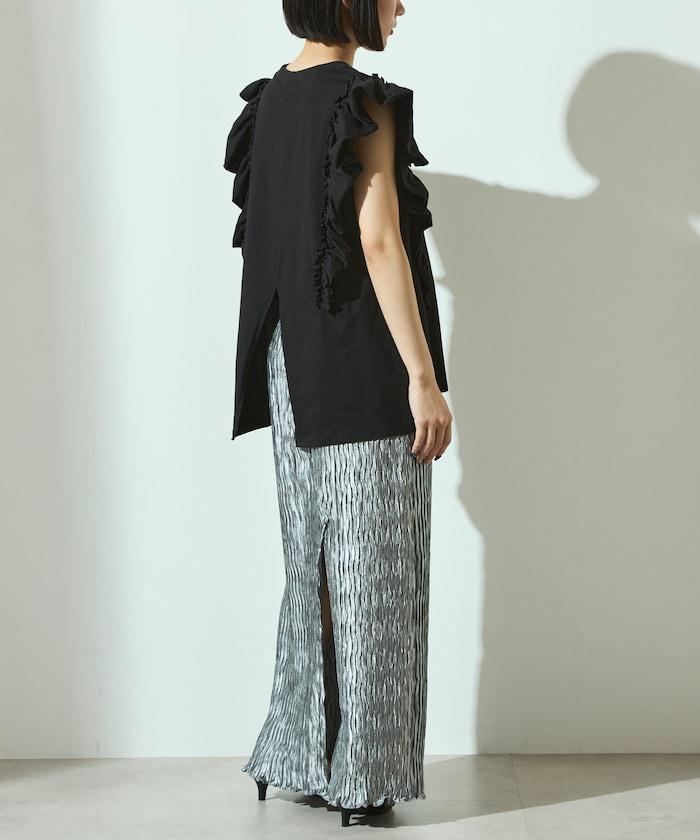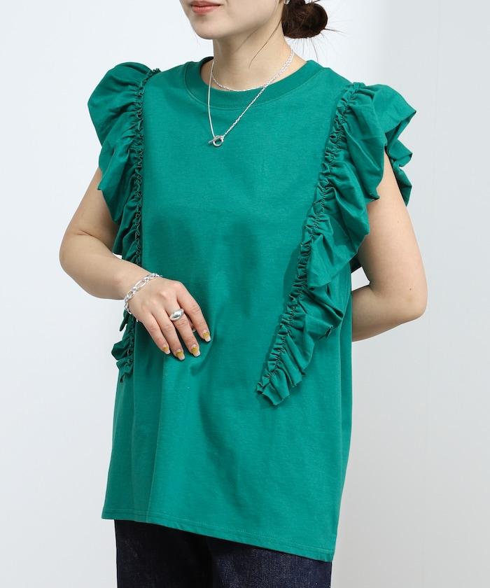 有機棉荷葉邊上衣 / 肩部荷葉設計上衣 / 後開叉法式短袖T恤