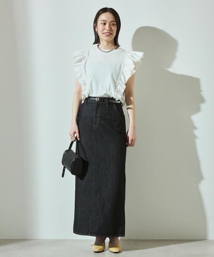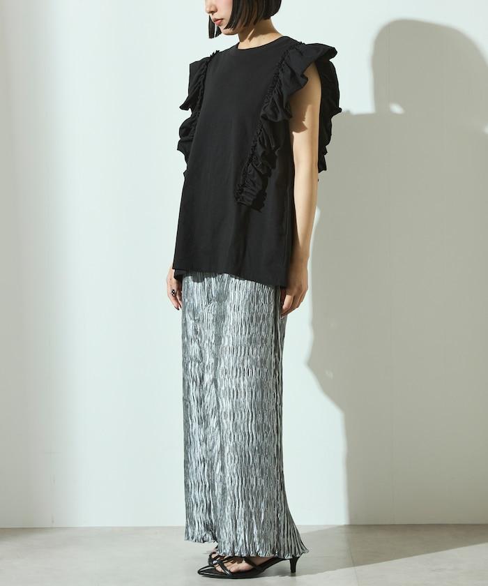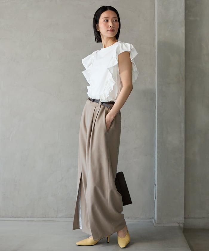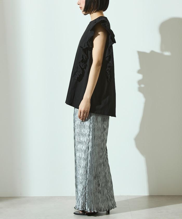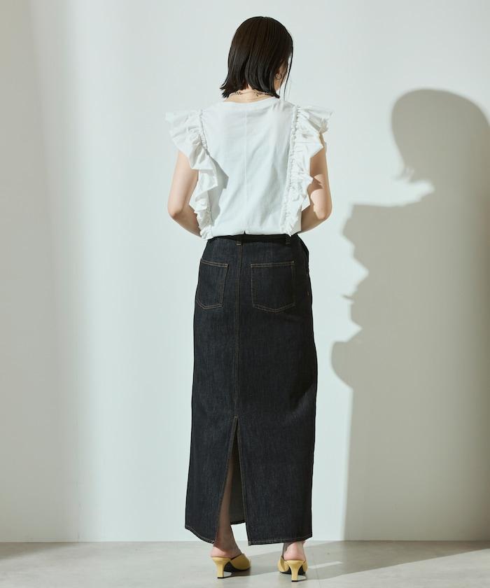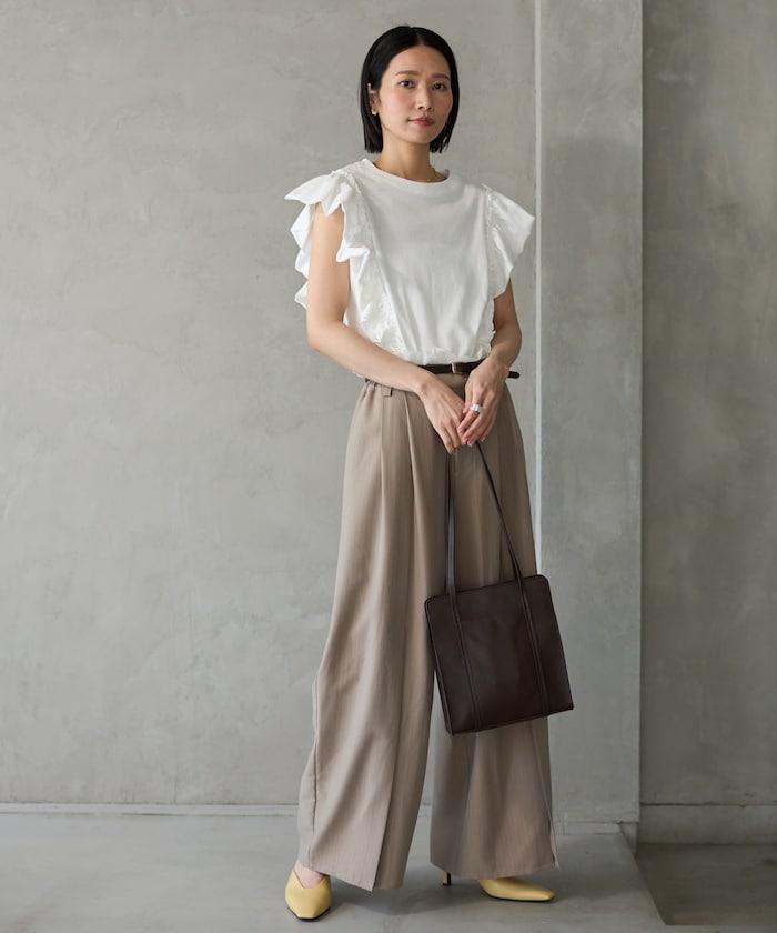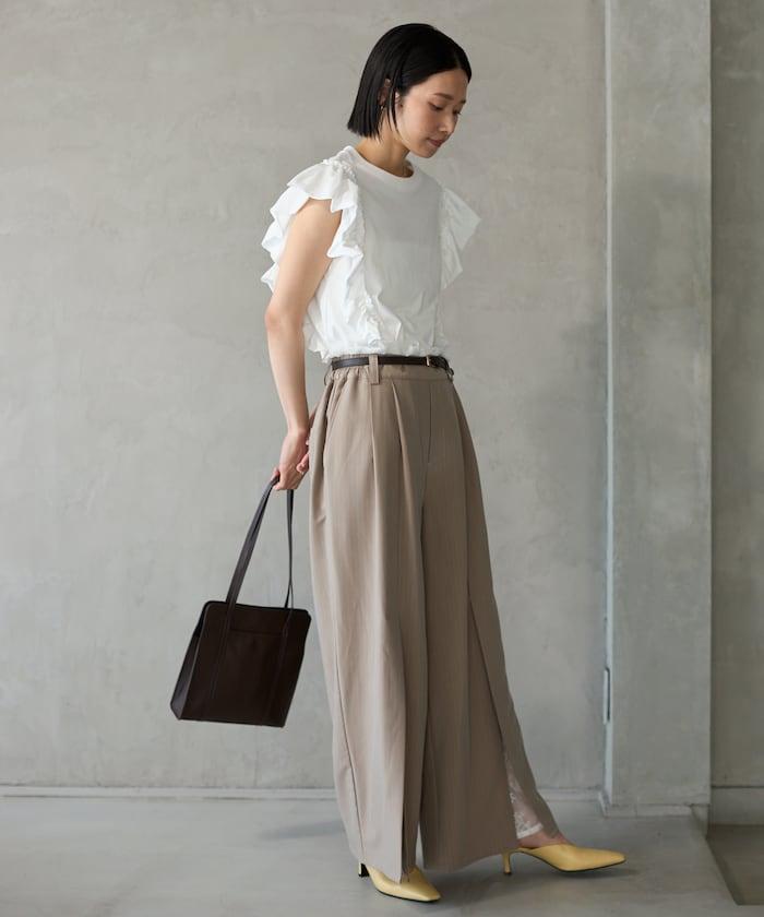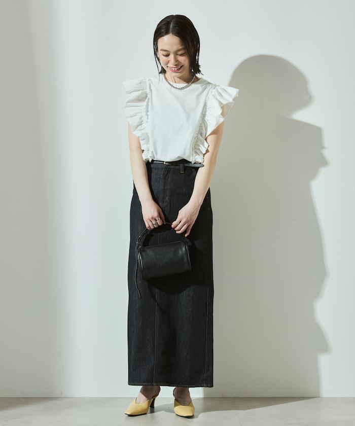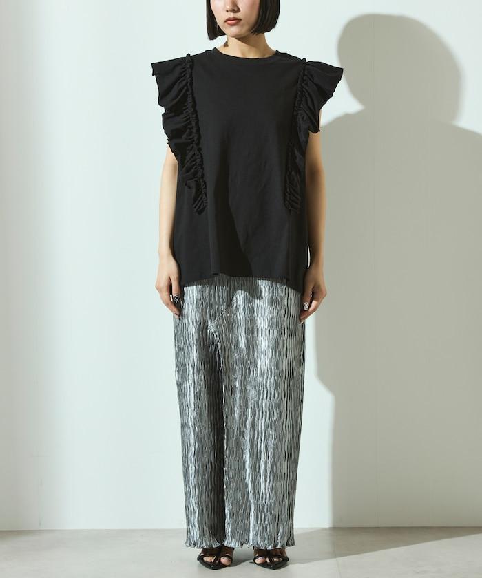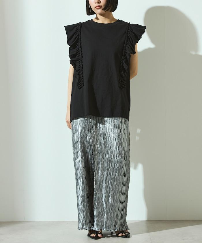 有機棉荷葉邊上衣 / 肩部荷葉設計上衣 / 後開叉法式短袖T恤