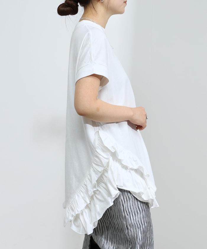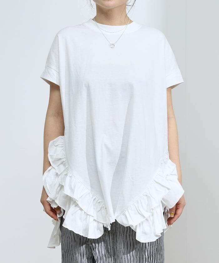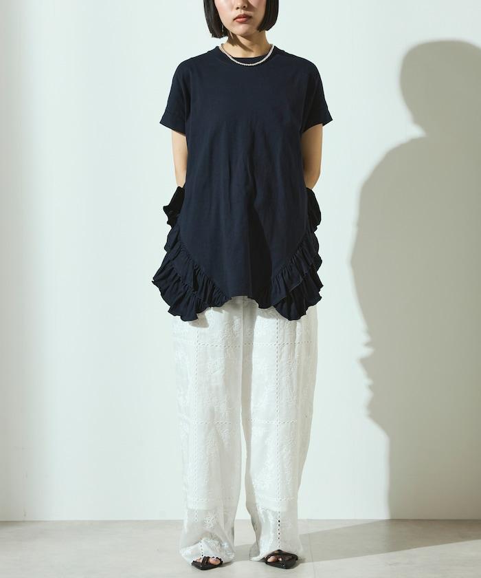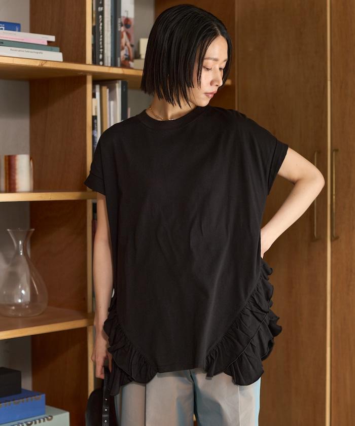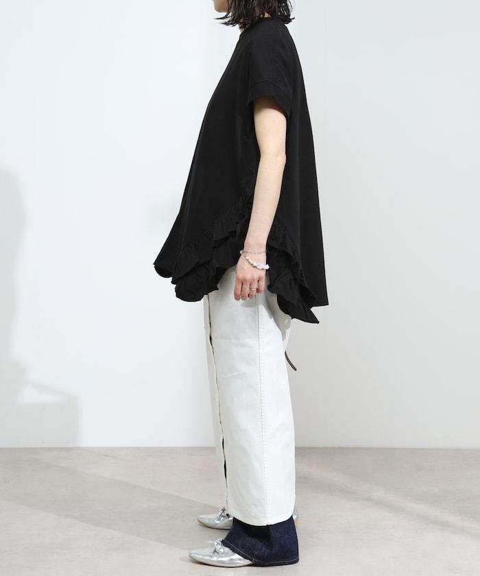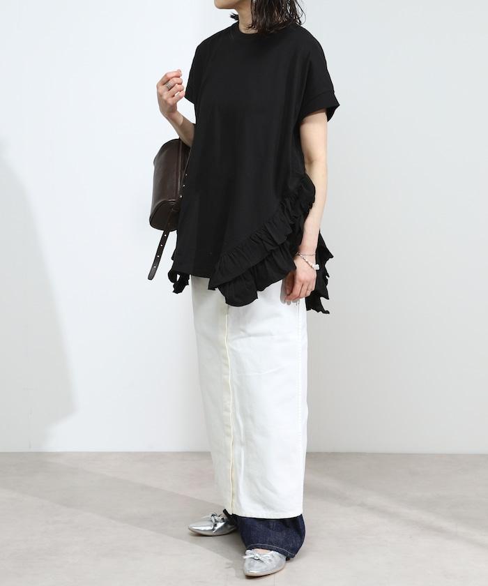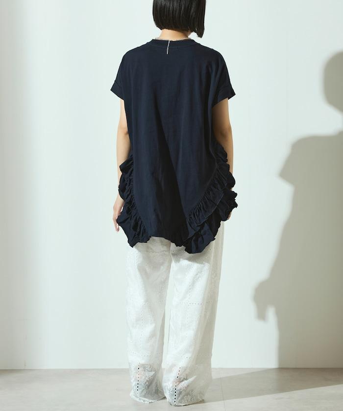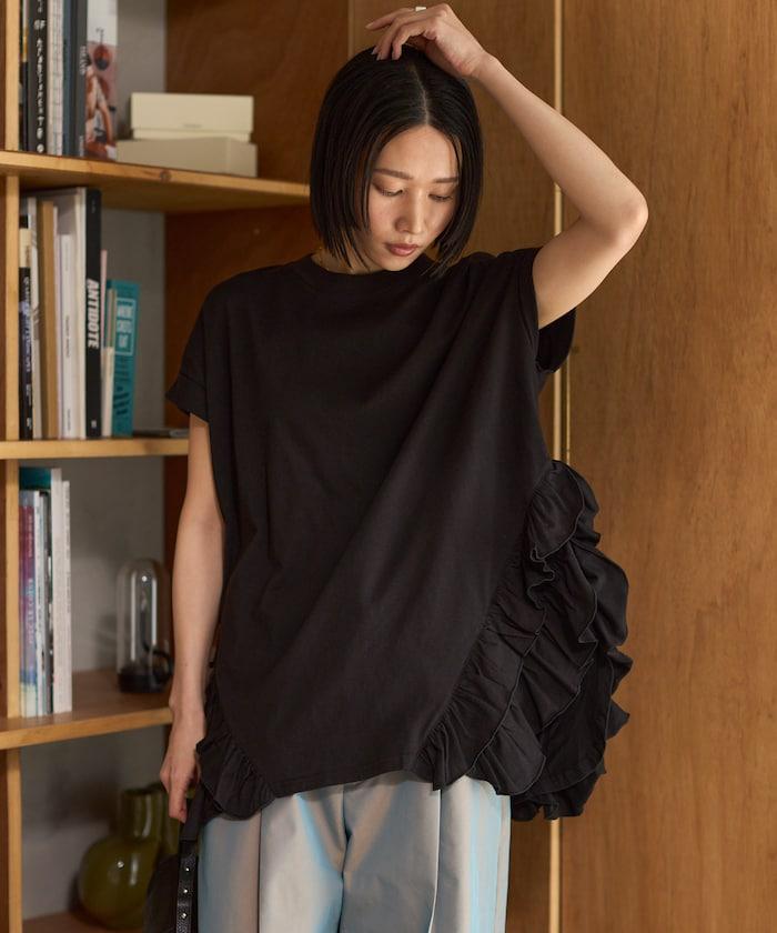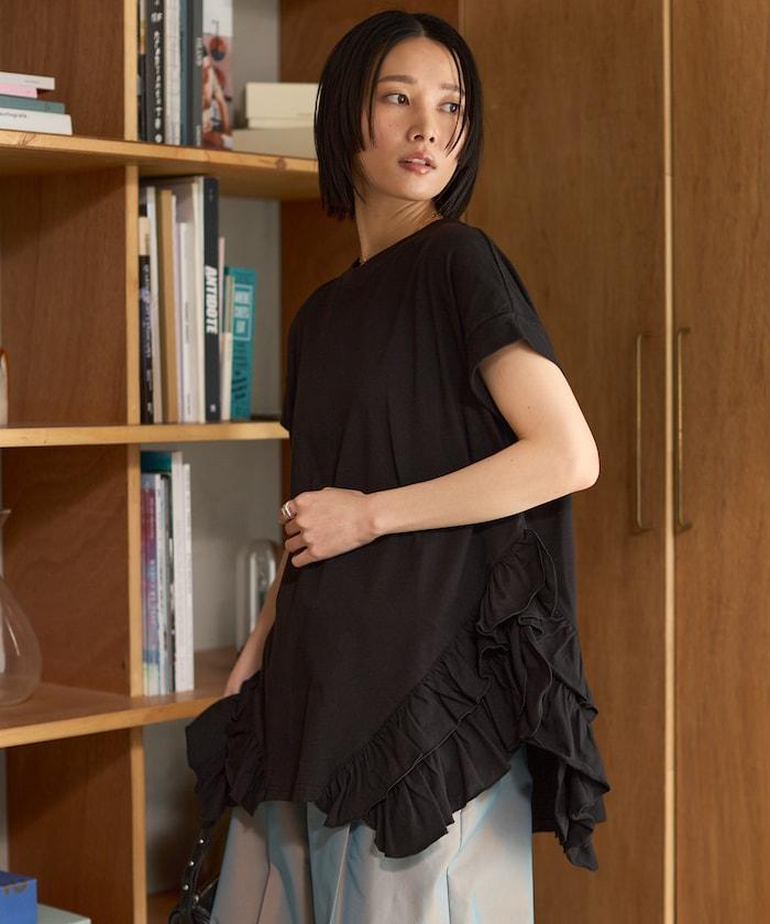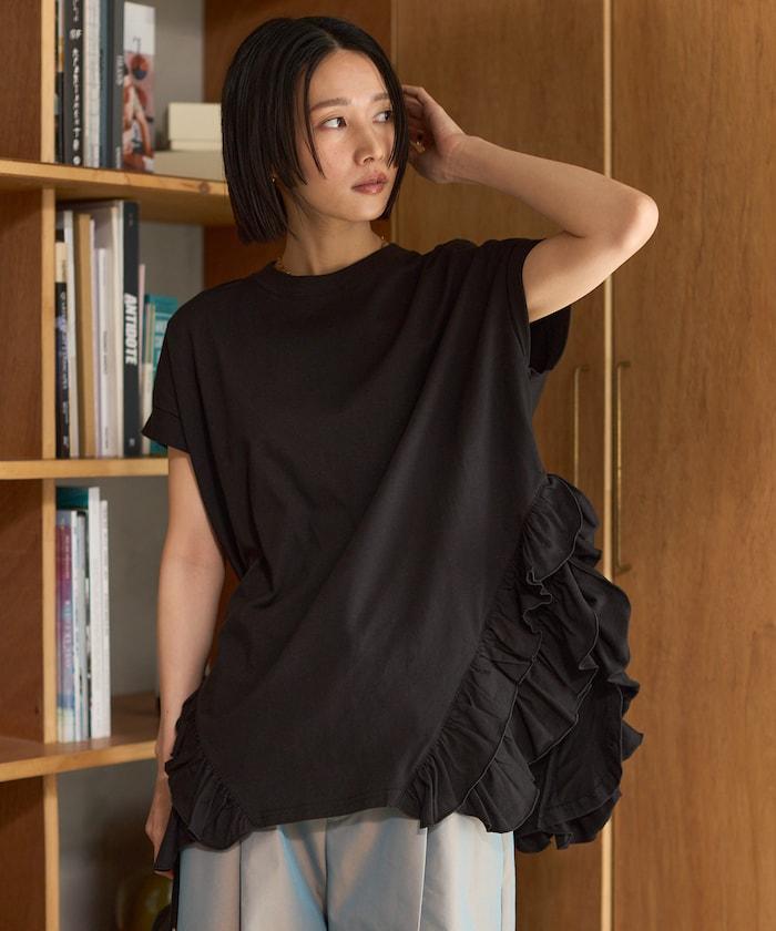 有機棉荷葉邊上衣 / 荷葉邊設計 短袖T恤 / 卷邊T恤