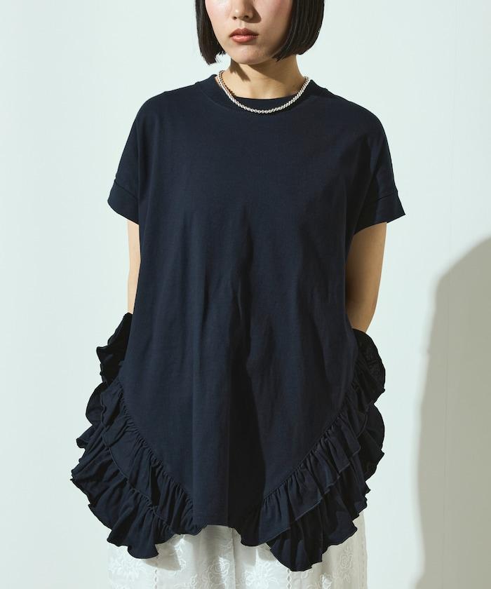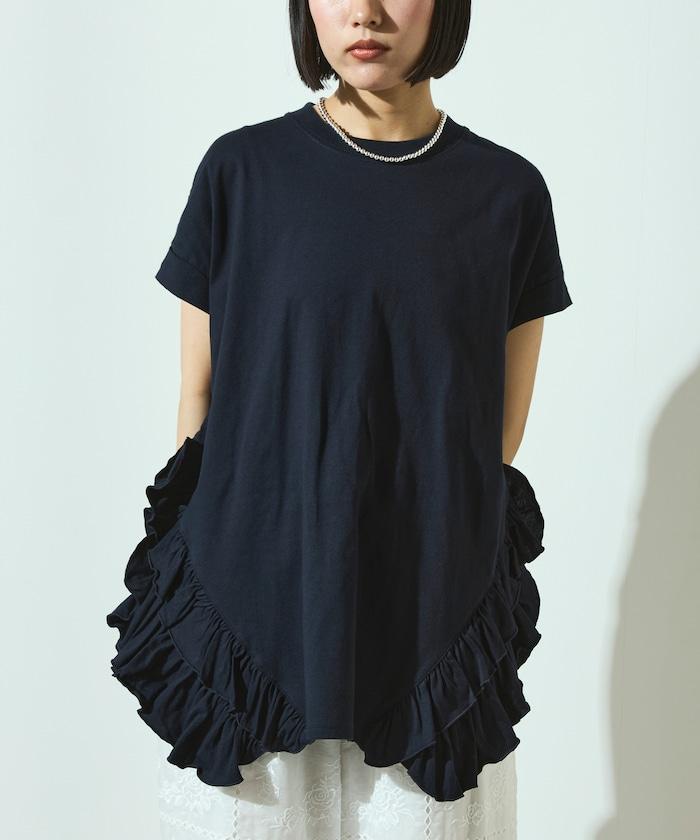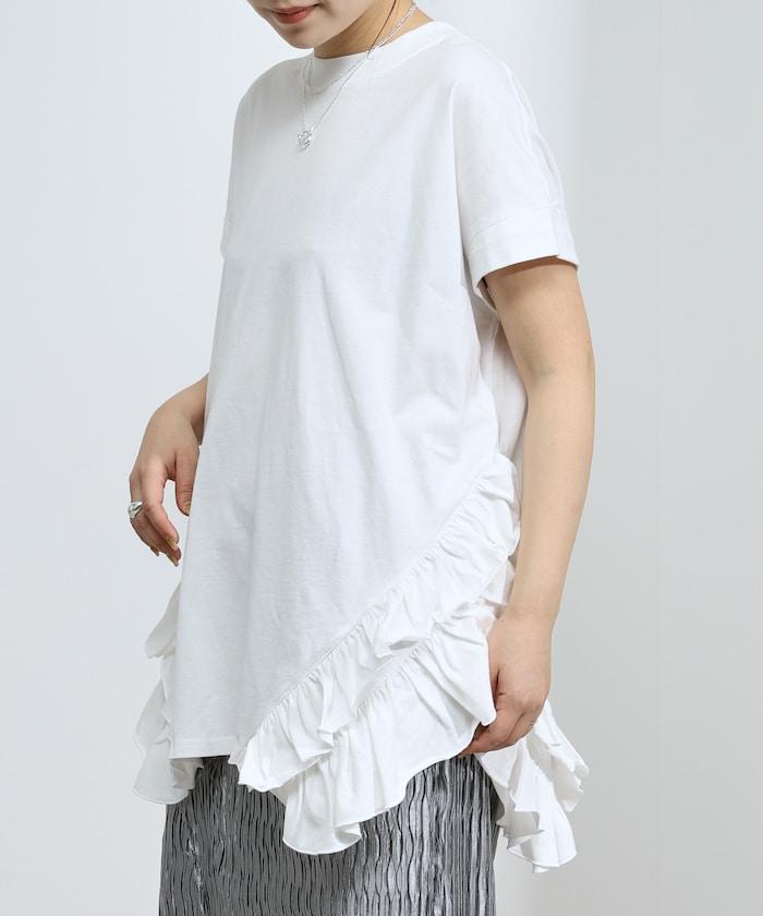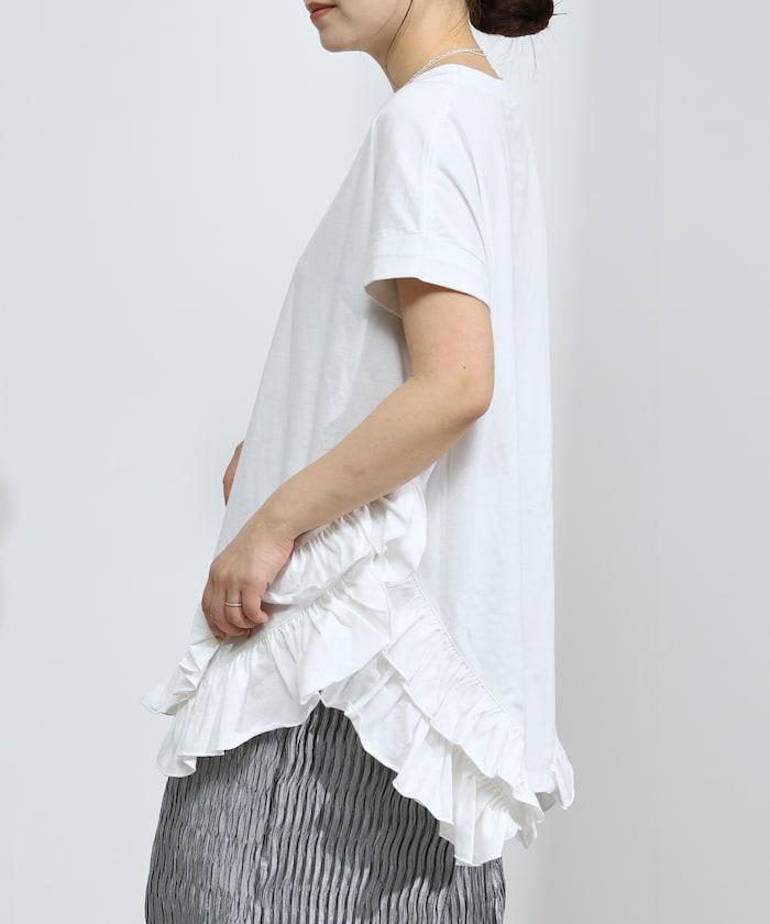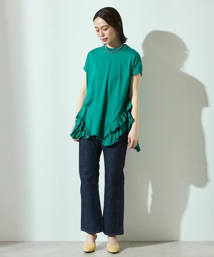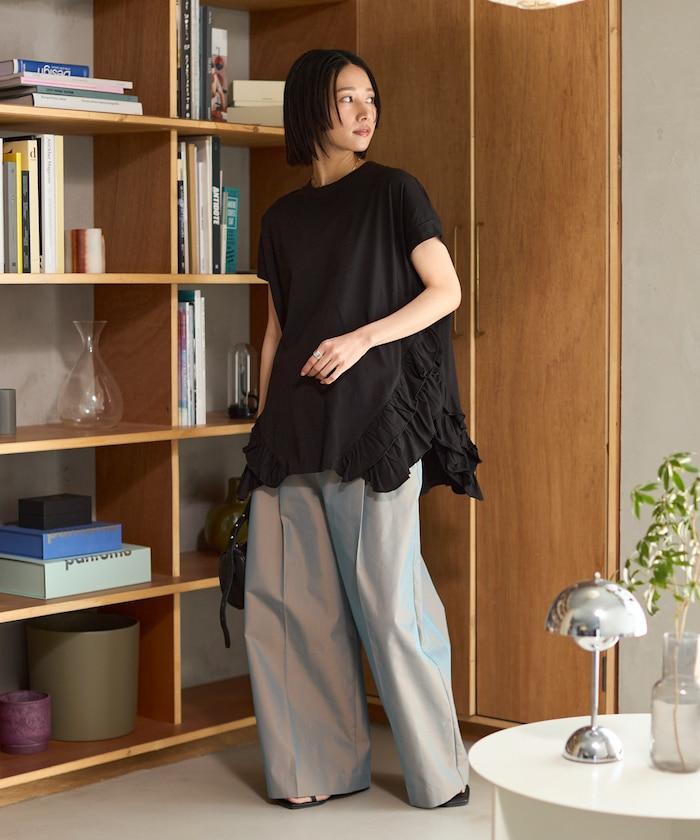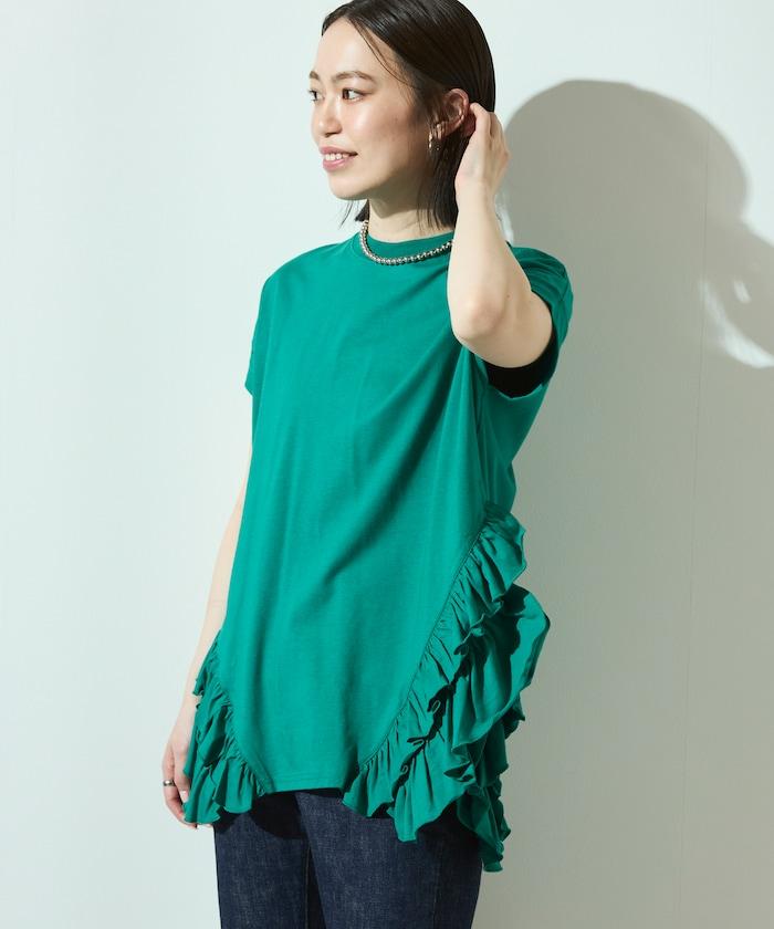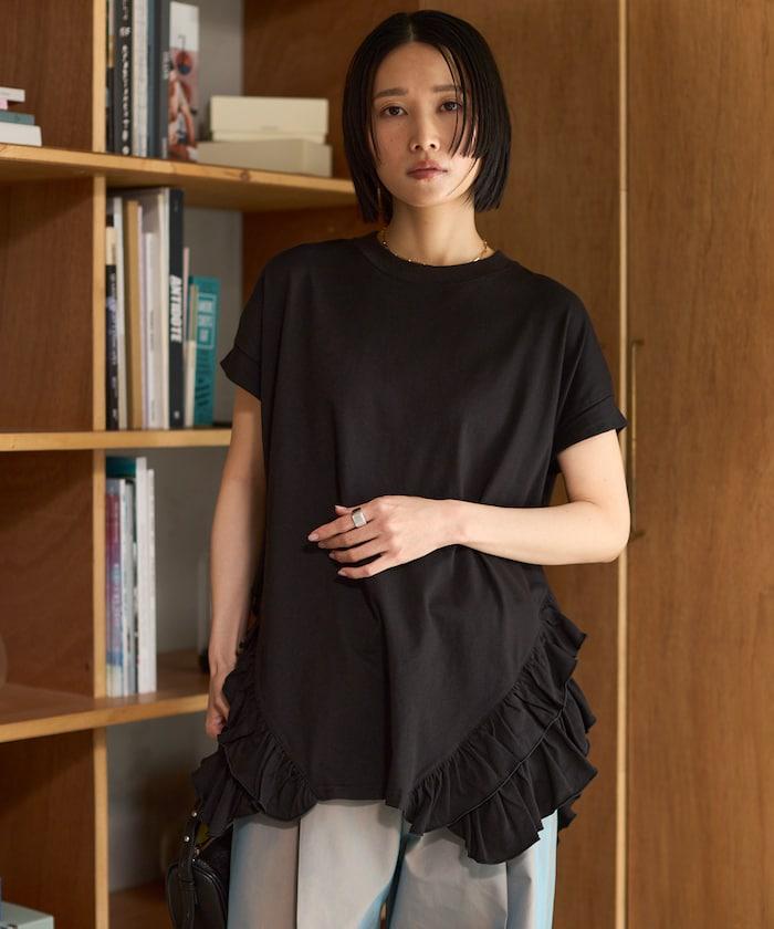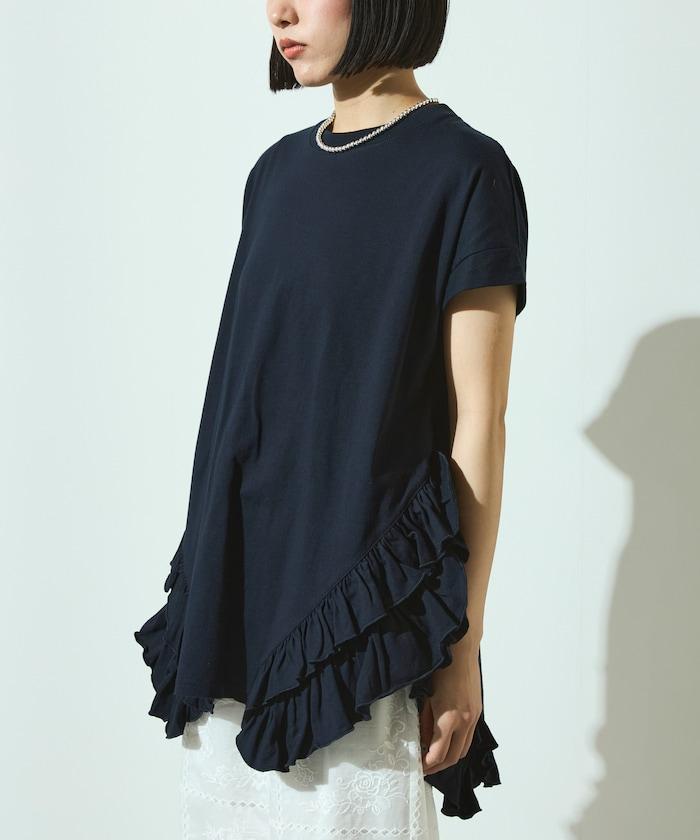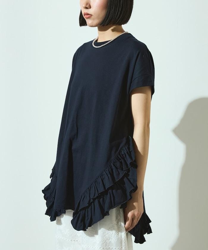 有機棉荷葉邊上衣 / 荷葉邊設計 短袖T恤 / 卷邊T恤
