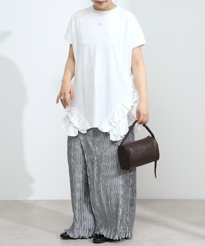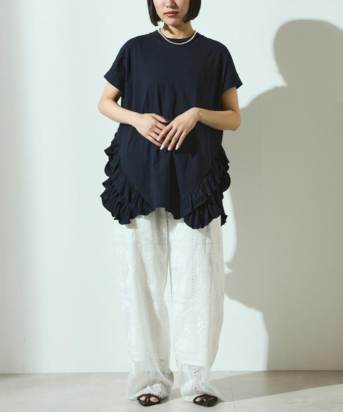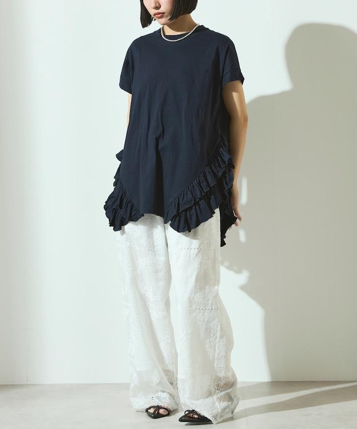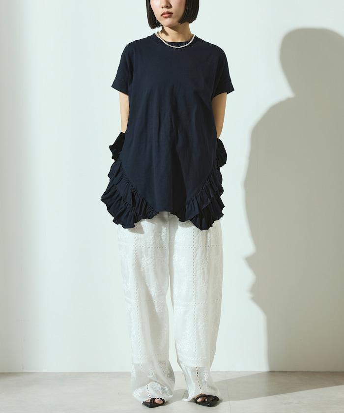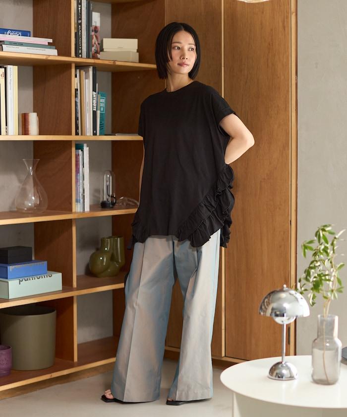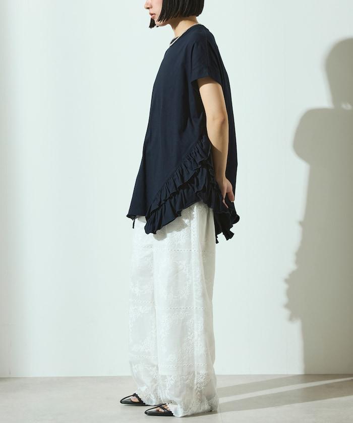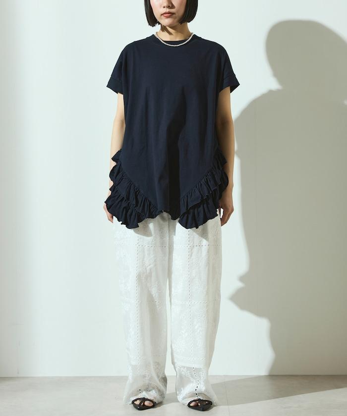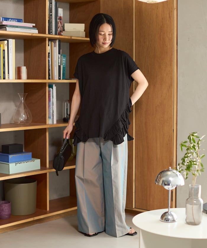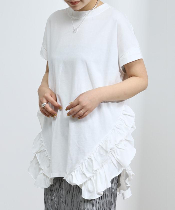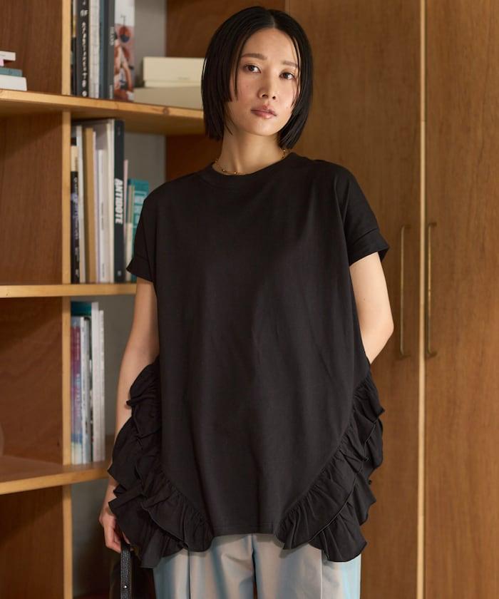 有機棉荷葉邊上衣 / 荷葉邊設計 短袖T恤 / 卷邊T恤
