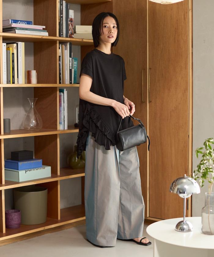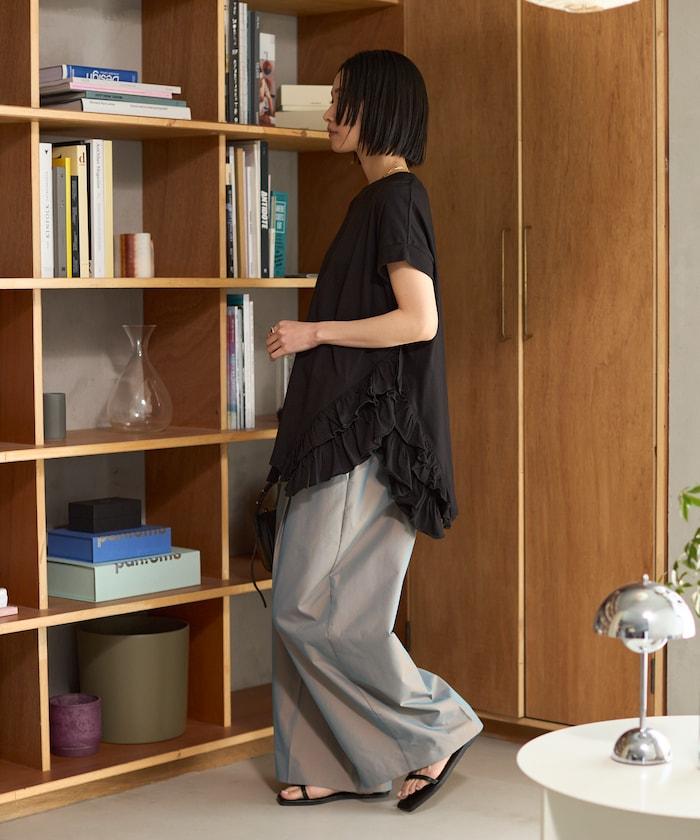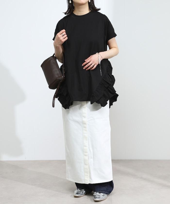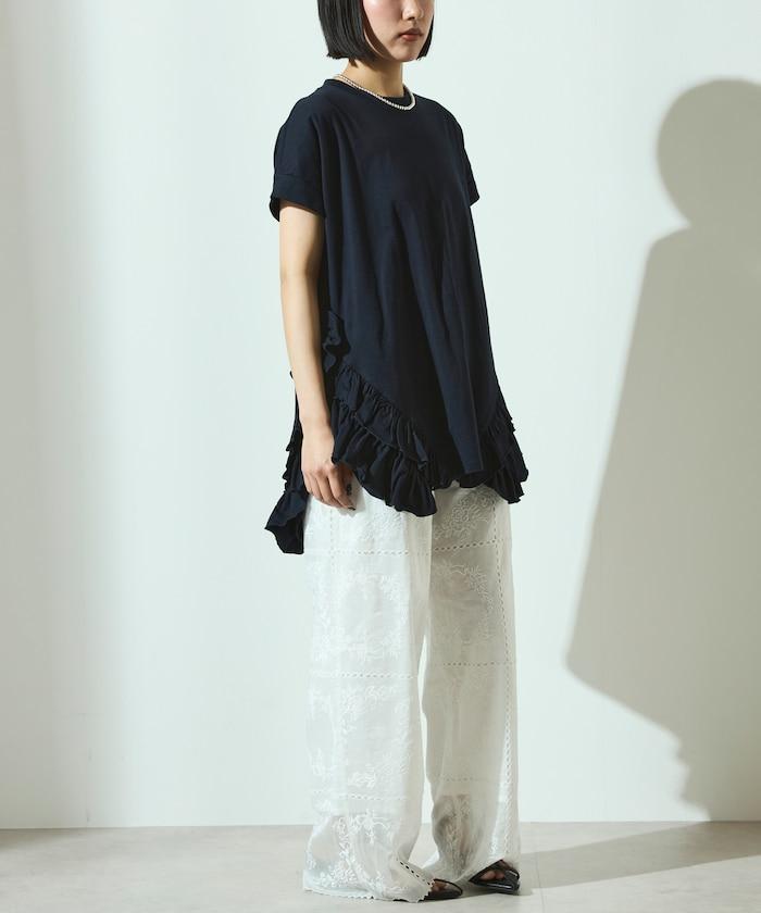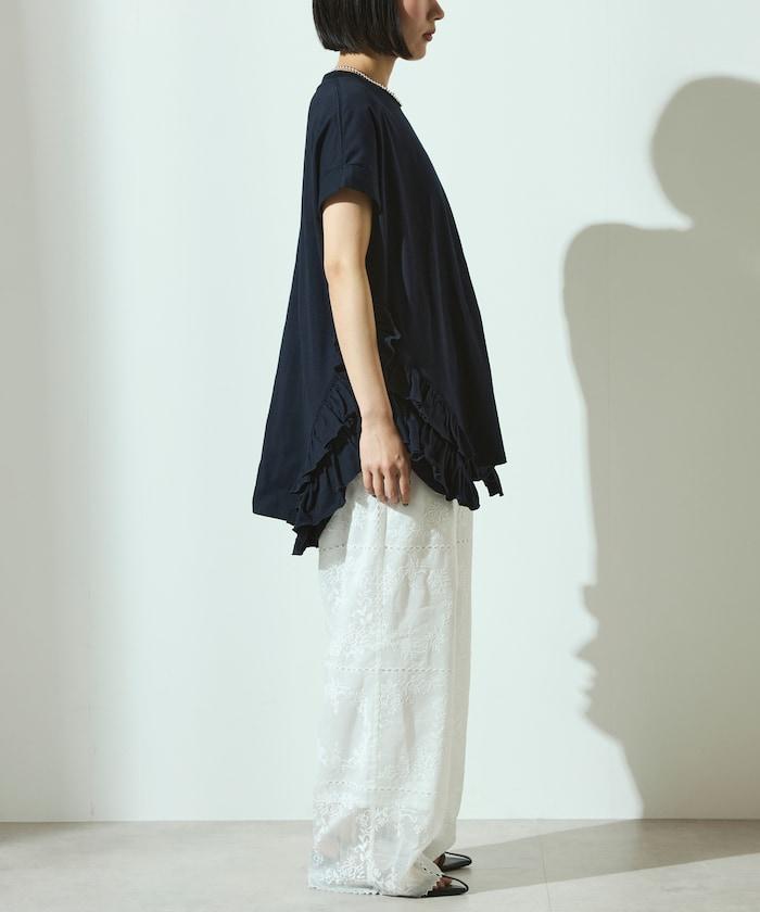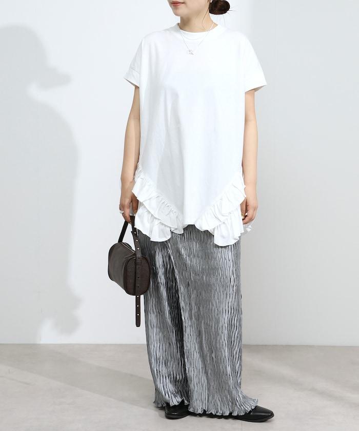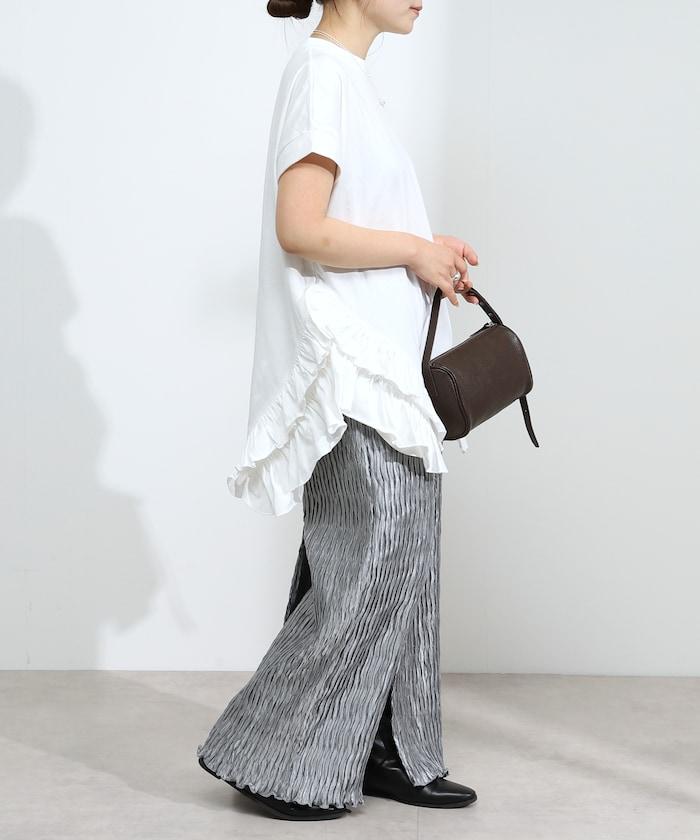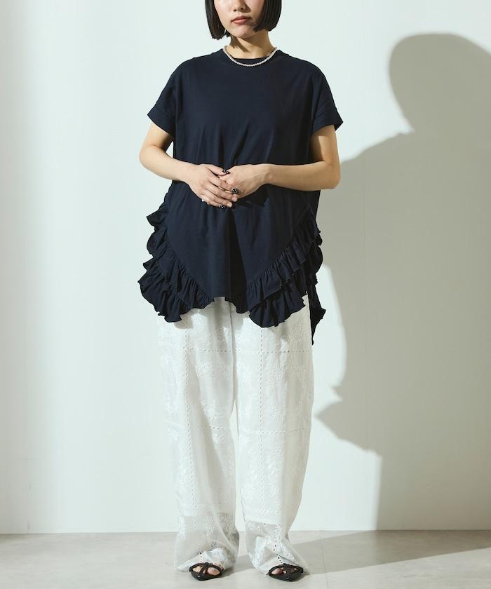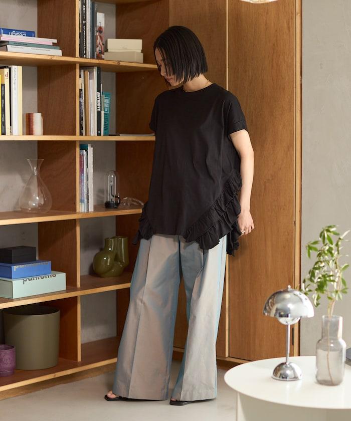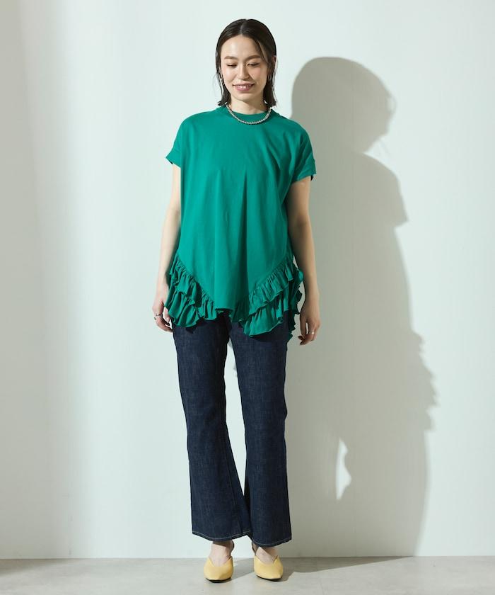 有機棉荷葉邊上衣 / 荷葉邊設計 短袖T恤 / 卷邊T恤