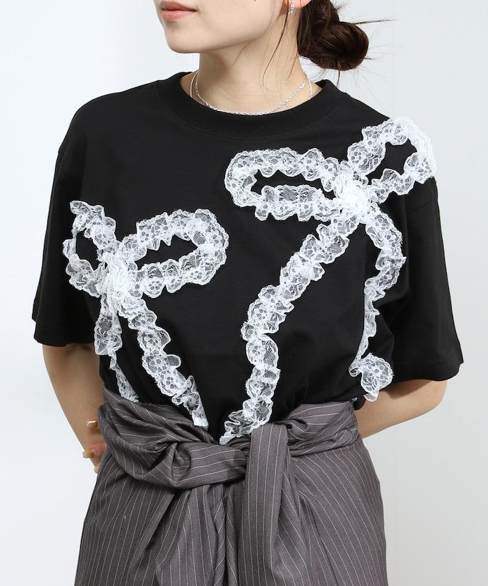 蕾絲和緞帶設計 T 恤