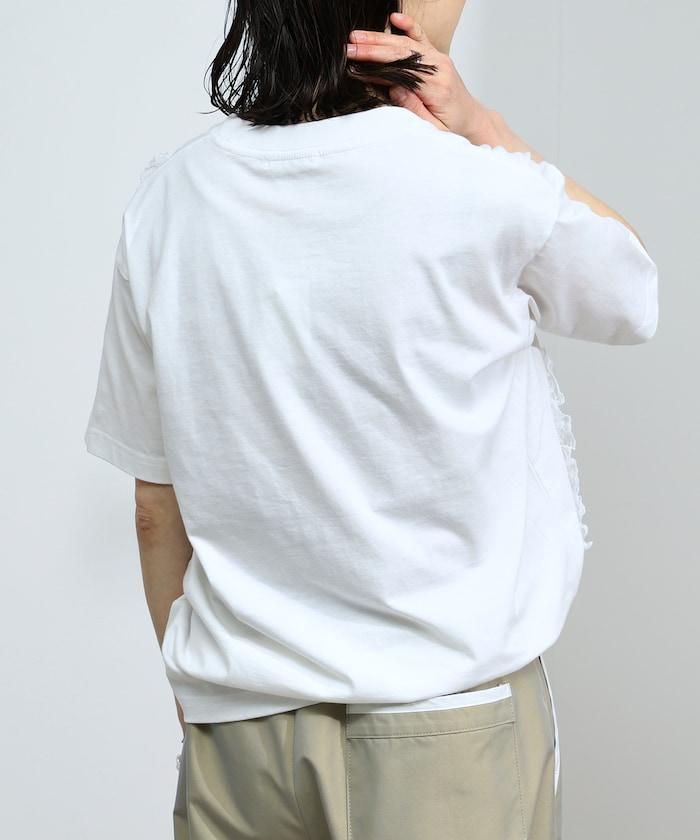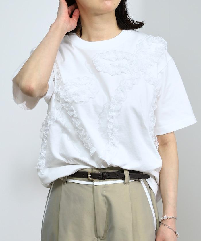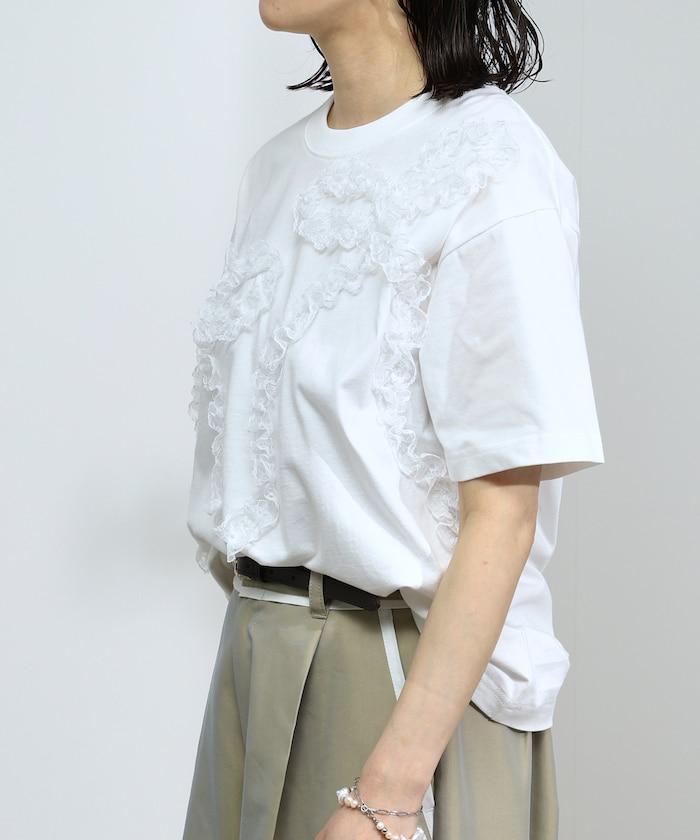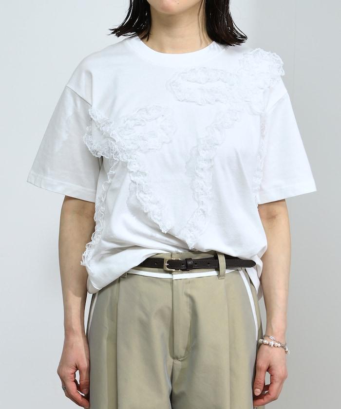蕾絲絲帶設計短袖 T 恤。