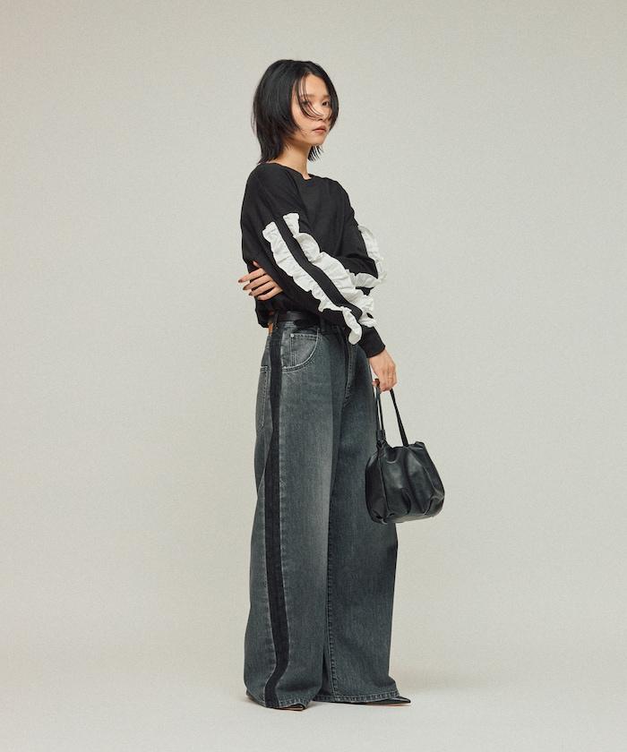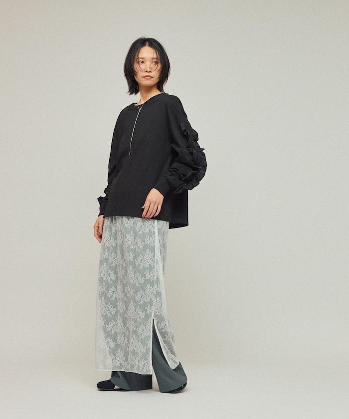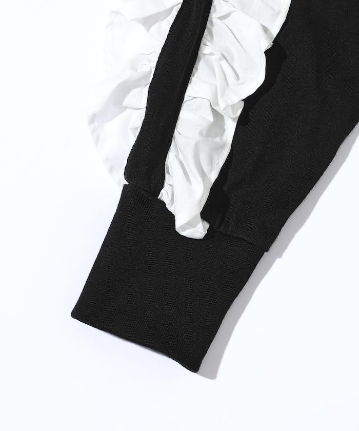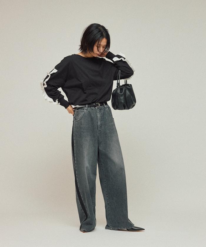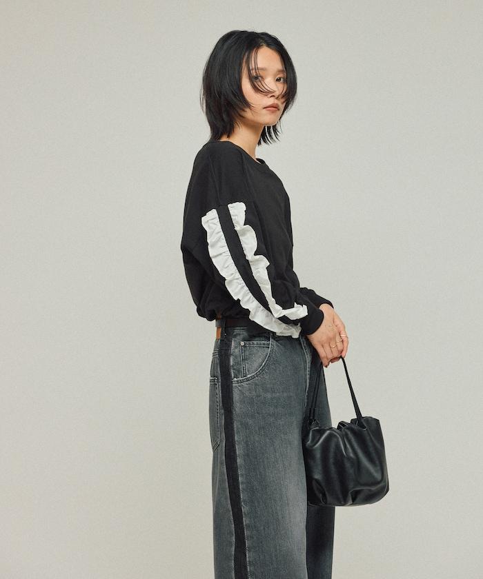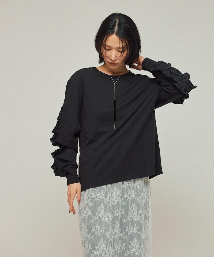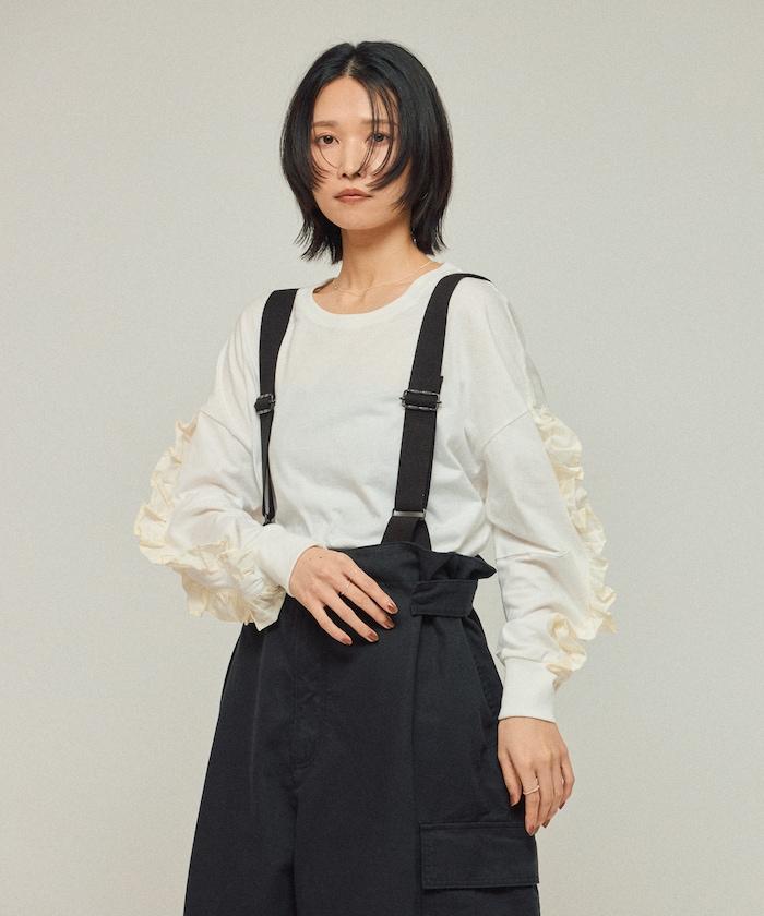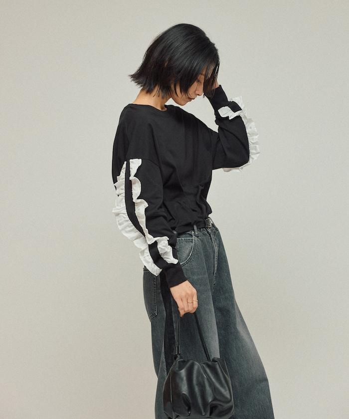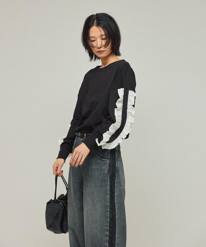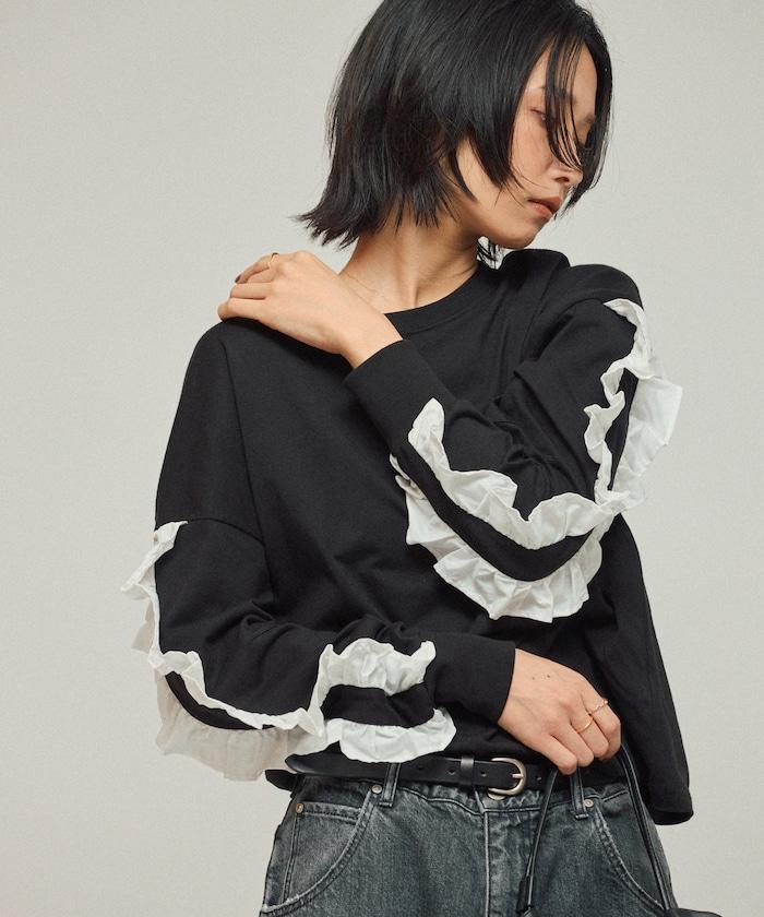 荷葉邊部分採用編織面料,呈現出立體輪廓,是一款可以穿出女人味的長袖 T。