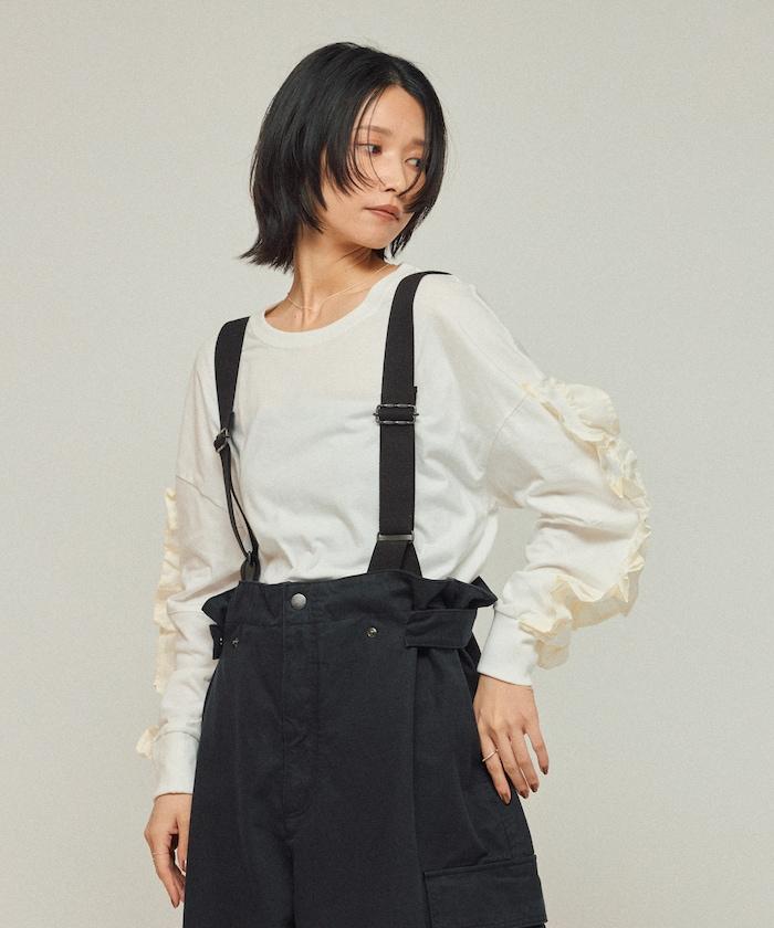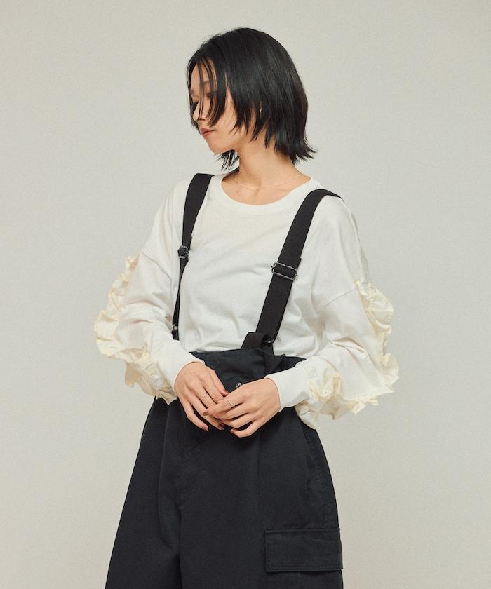 有機棉 袖飾邊 長袖T恤 / 長袖T恤