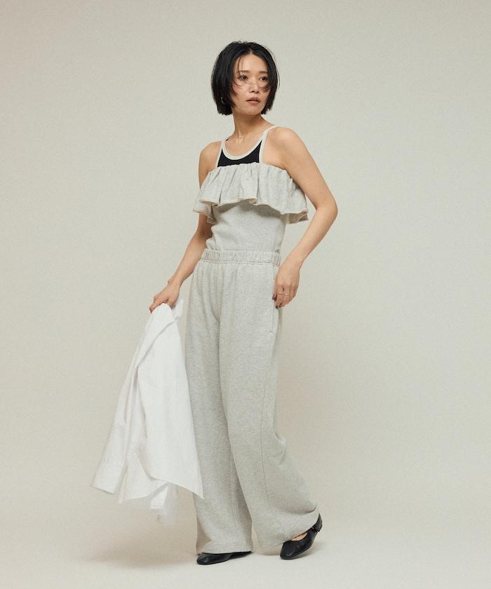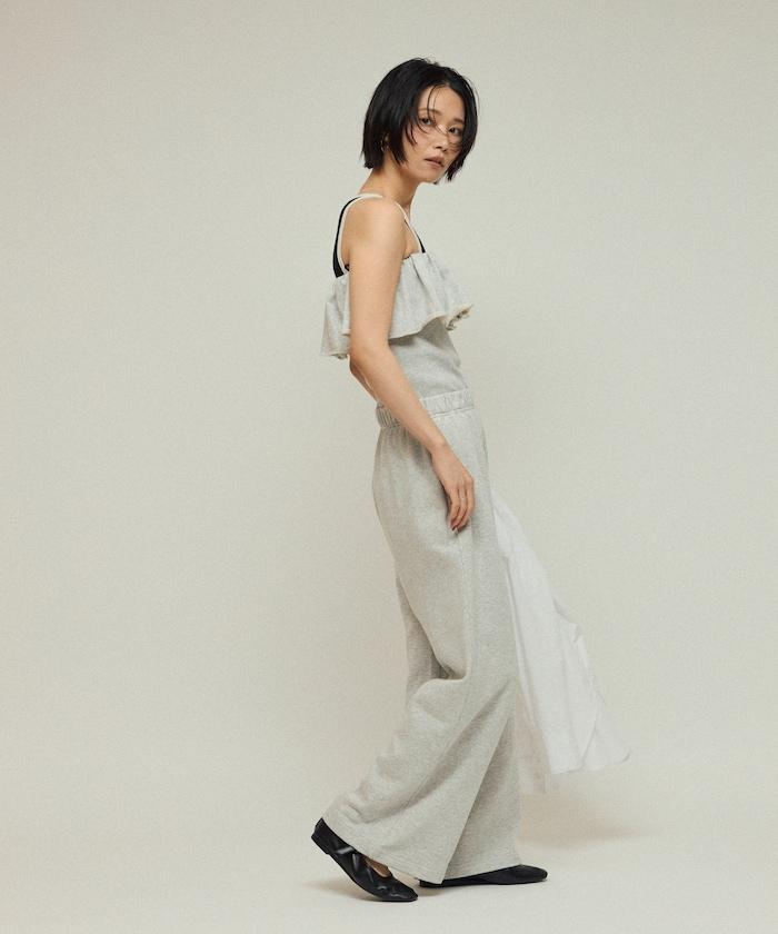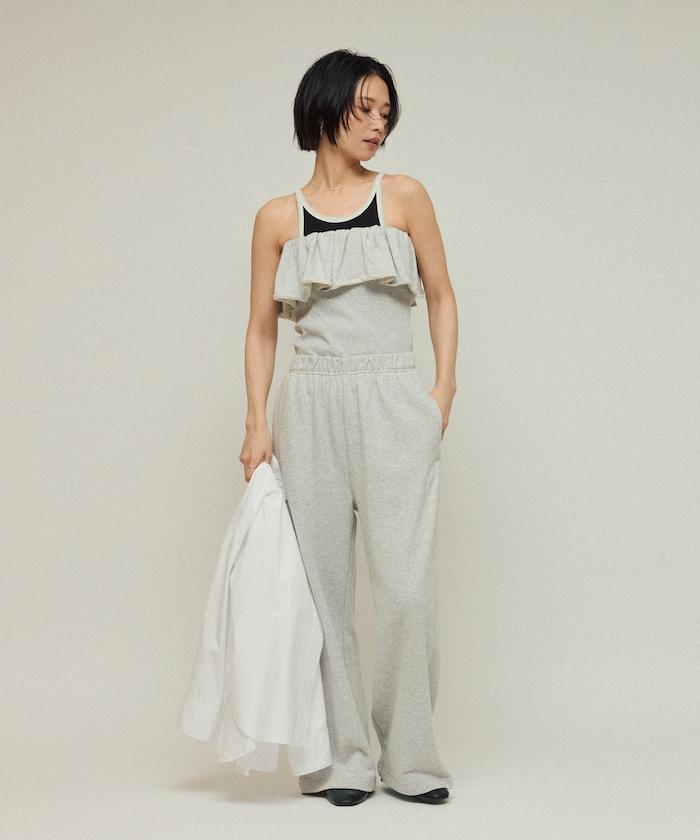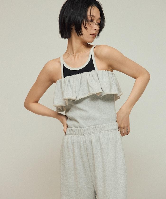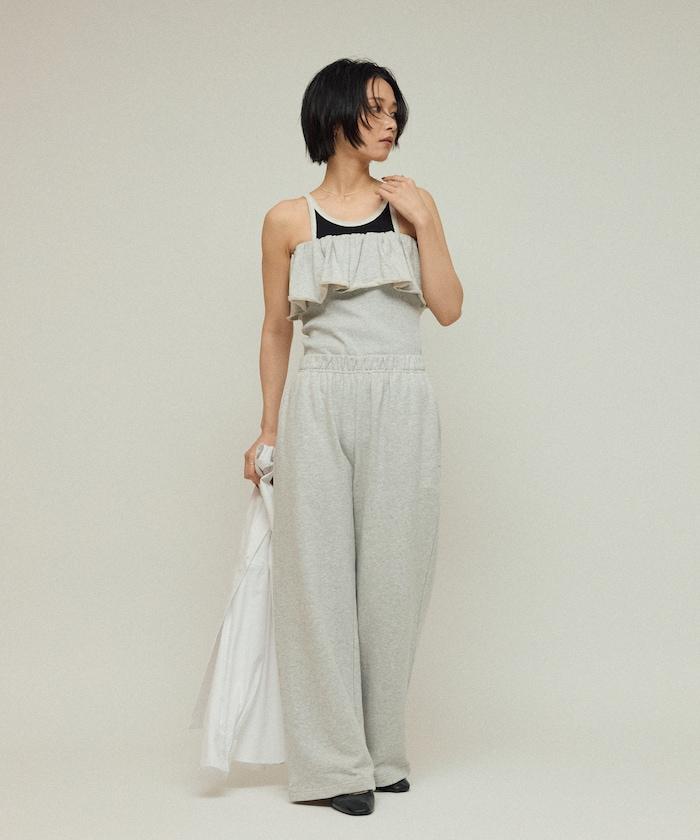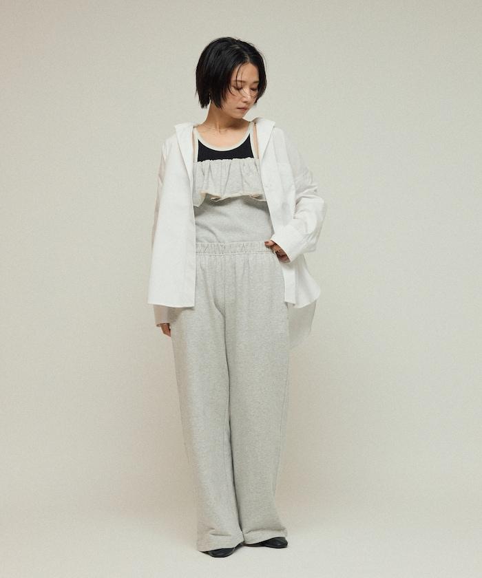 有機棉2WAY荷葉邊吊帶連體褲 / 裡毛衛衣