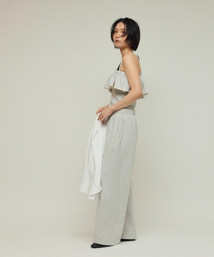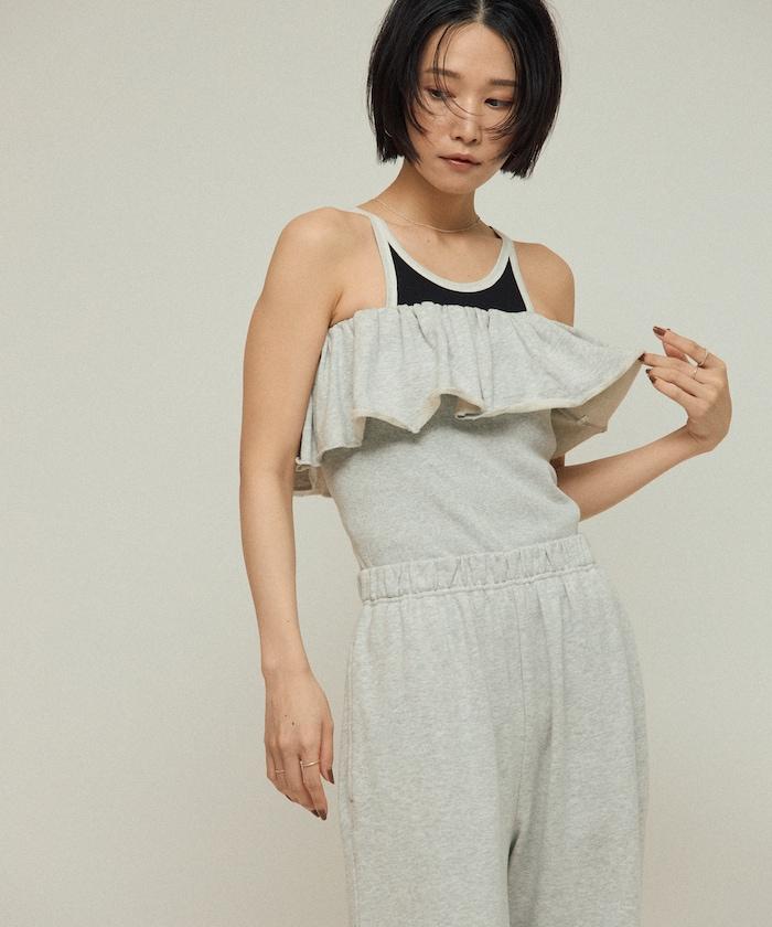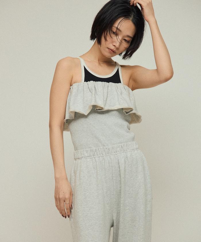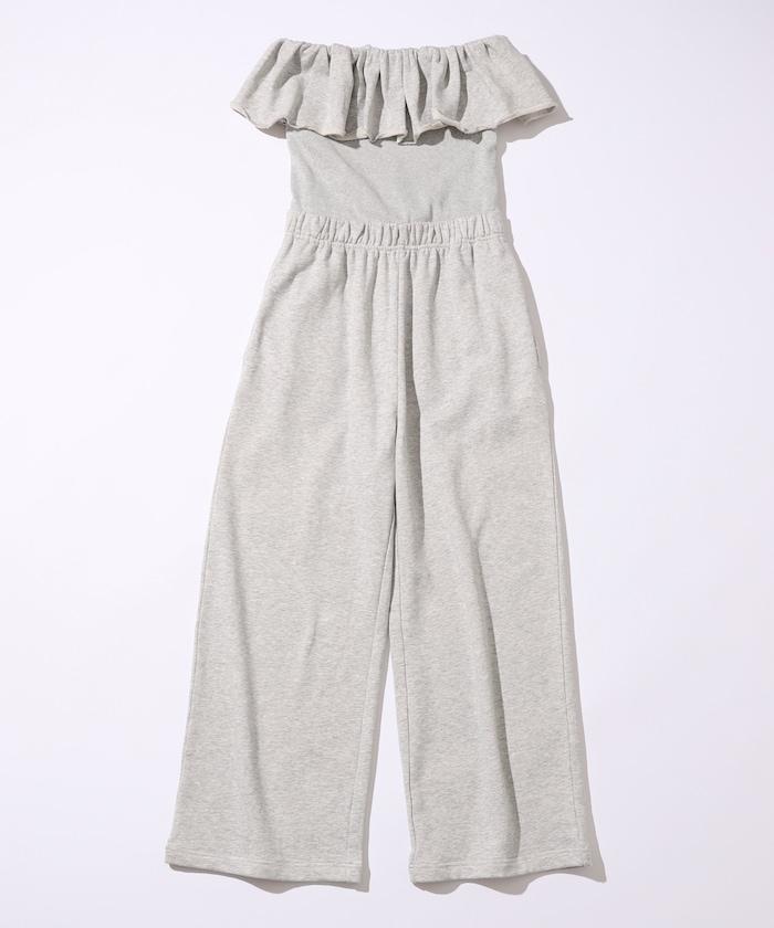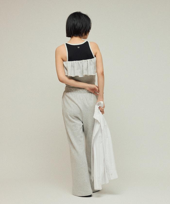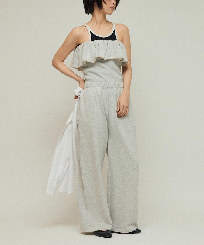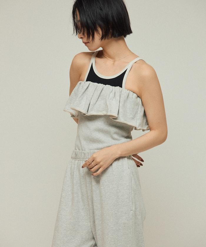 有機棉2WAY荷葉邊吊帶連體褲 / 裡毛衛衣