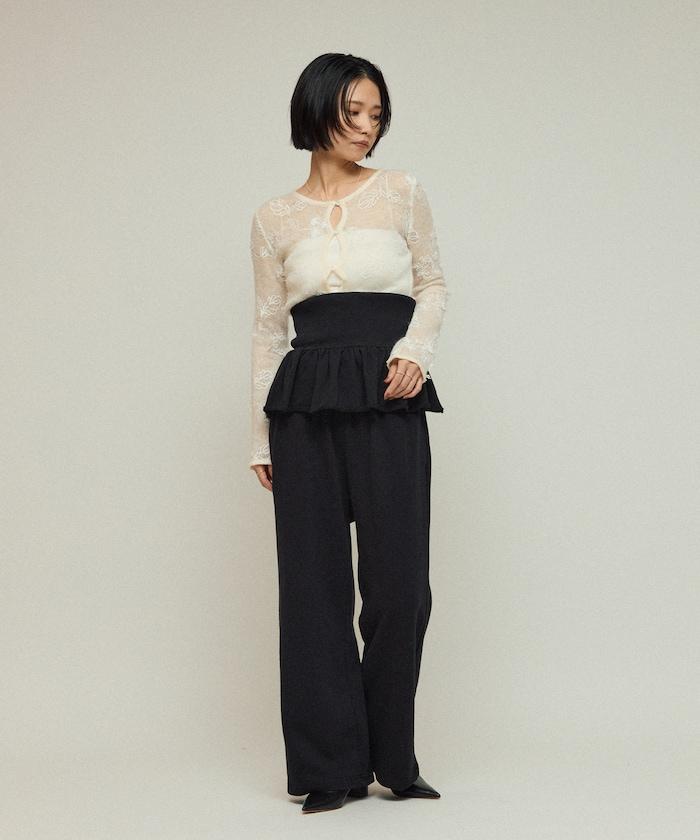 取下褶邊部分後,可換成長褲款式,看起來就像多層次的裙子。