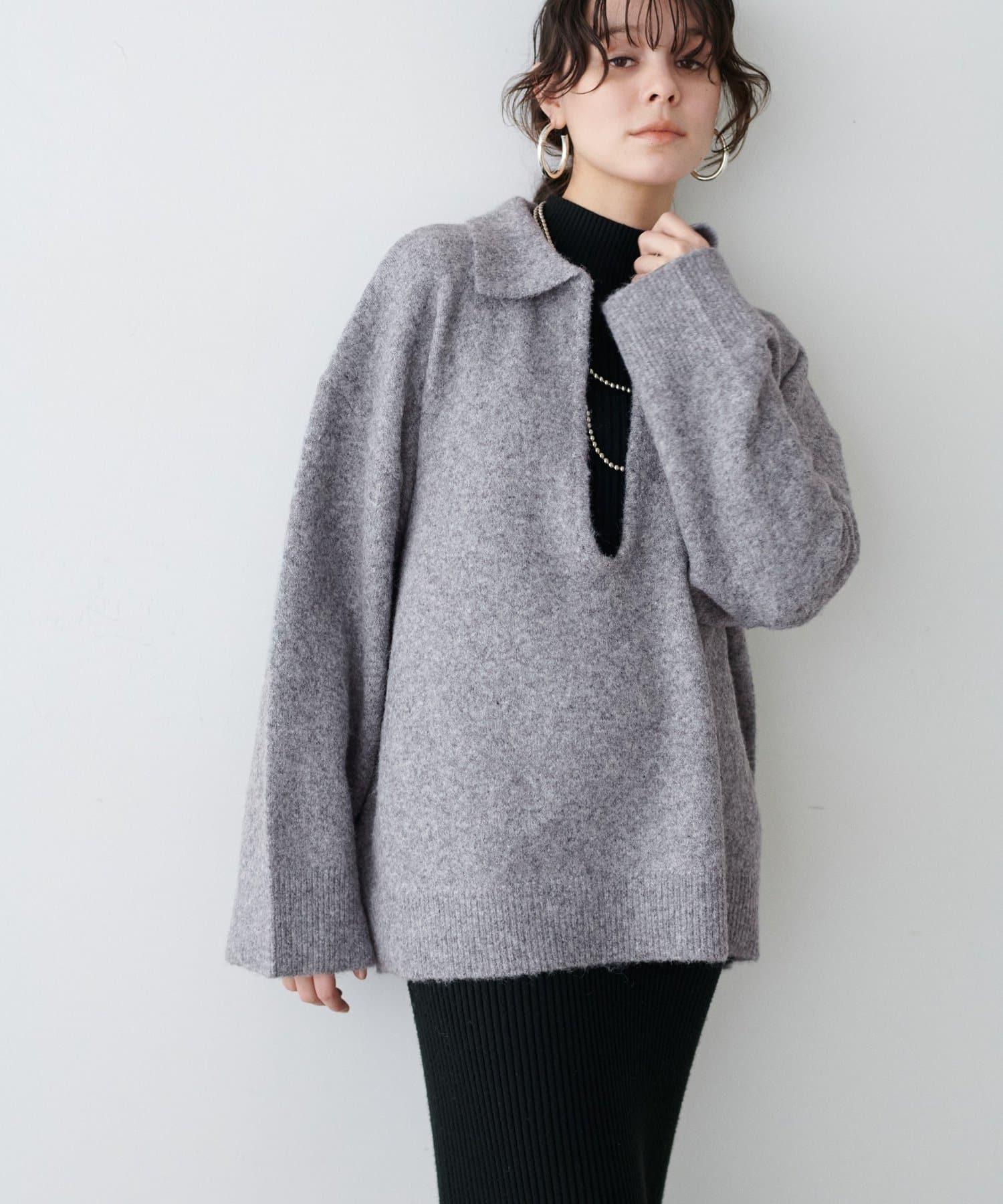 一字領毛線針織衫