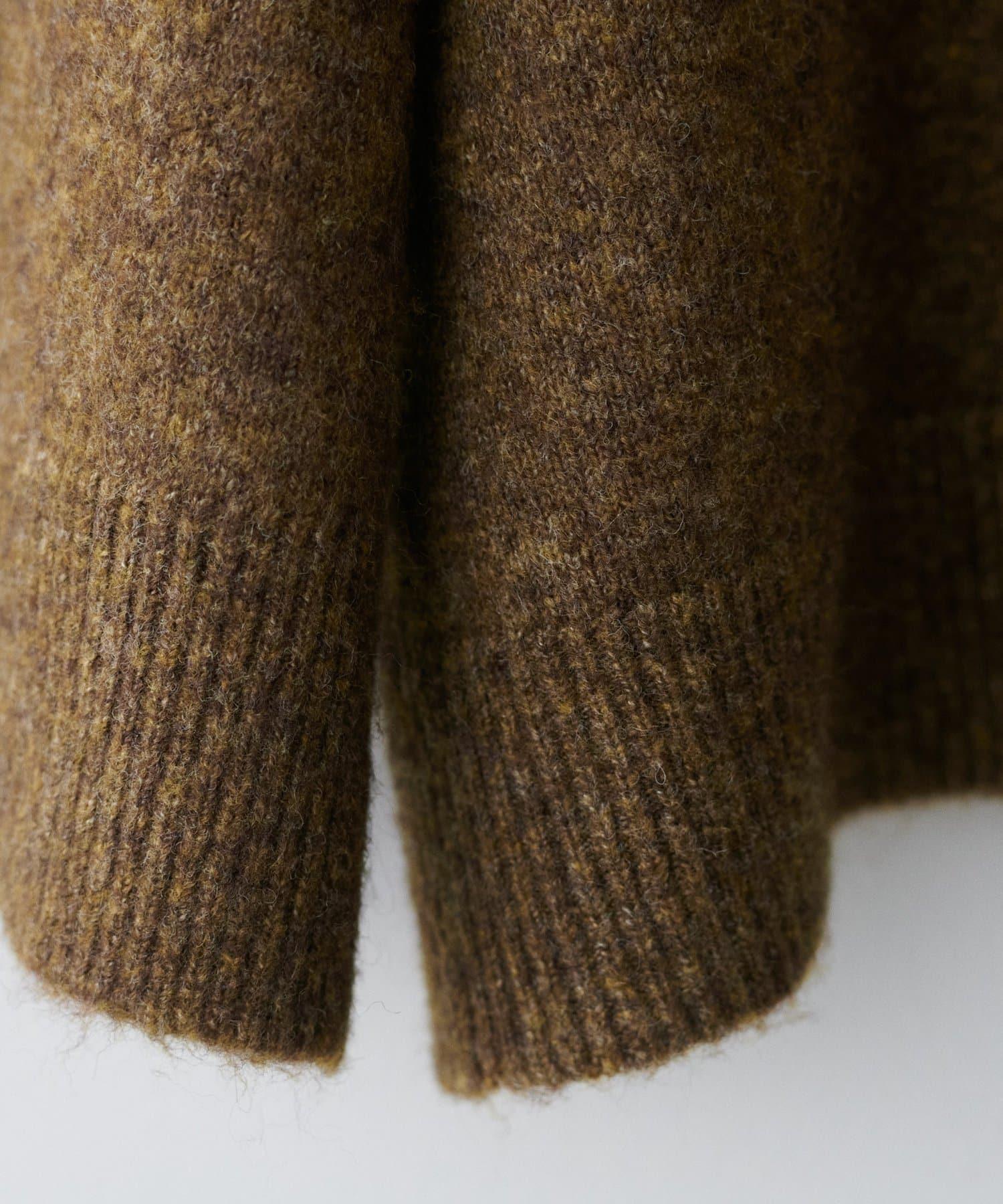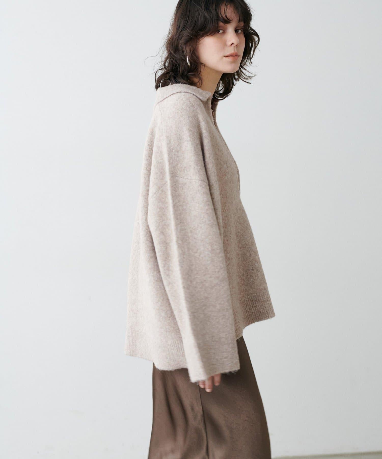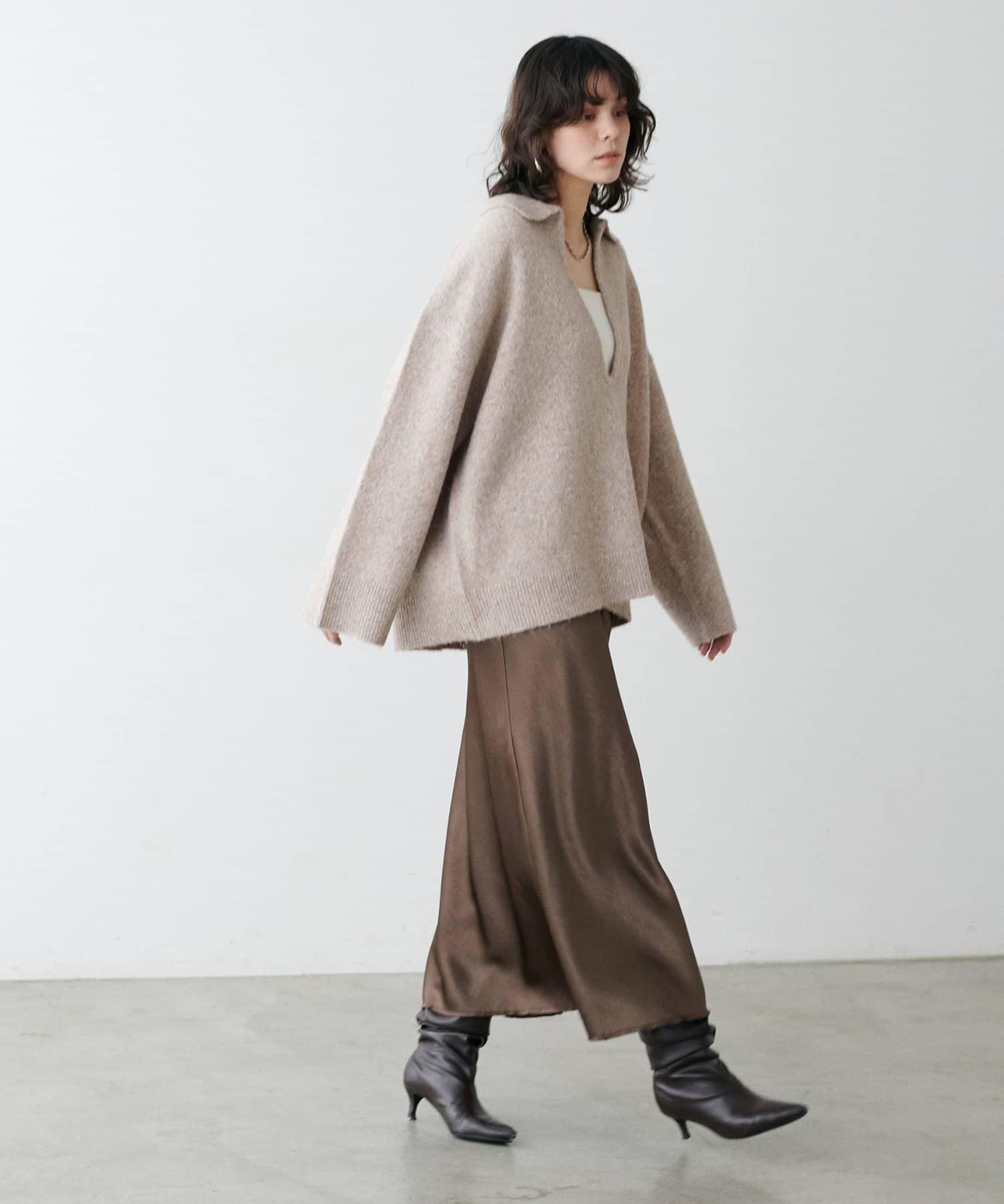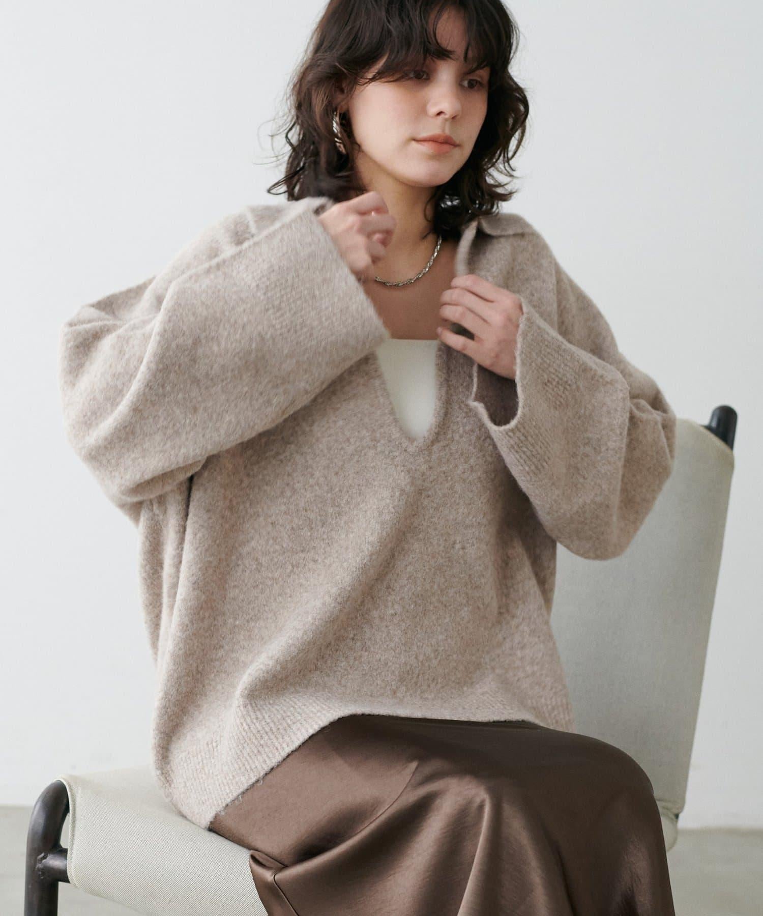 領口設計的針織套頭衫,採用木質色調,給人留下深刻印象。