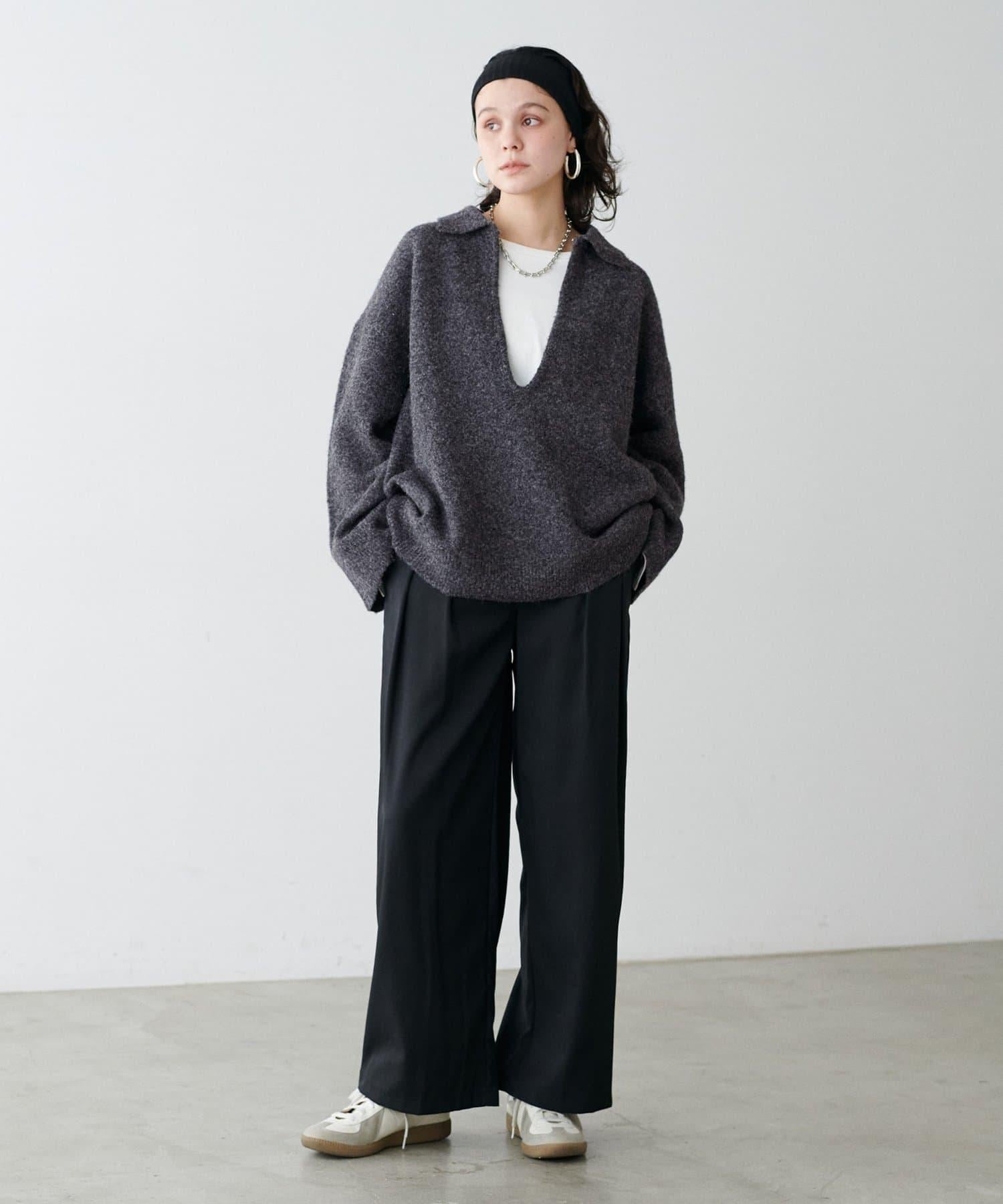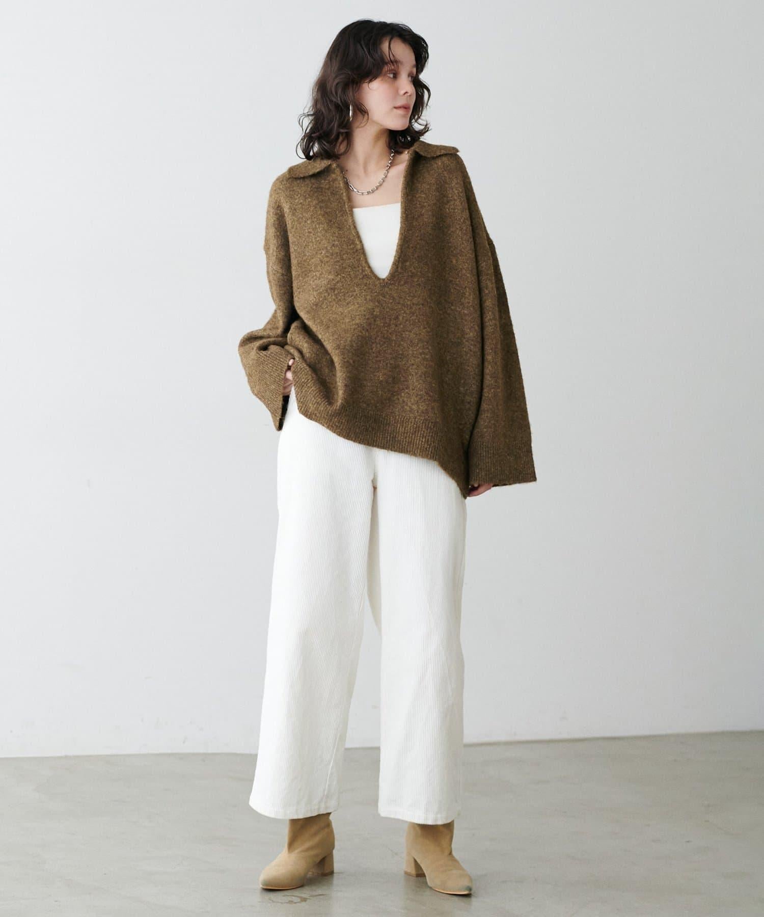 如果搭配 V 領,就能以輕鬆的感覺完成成人休閒造型。