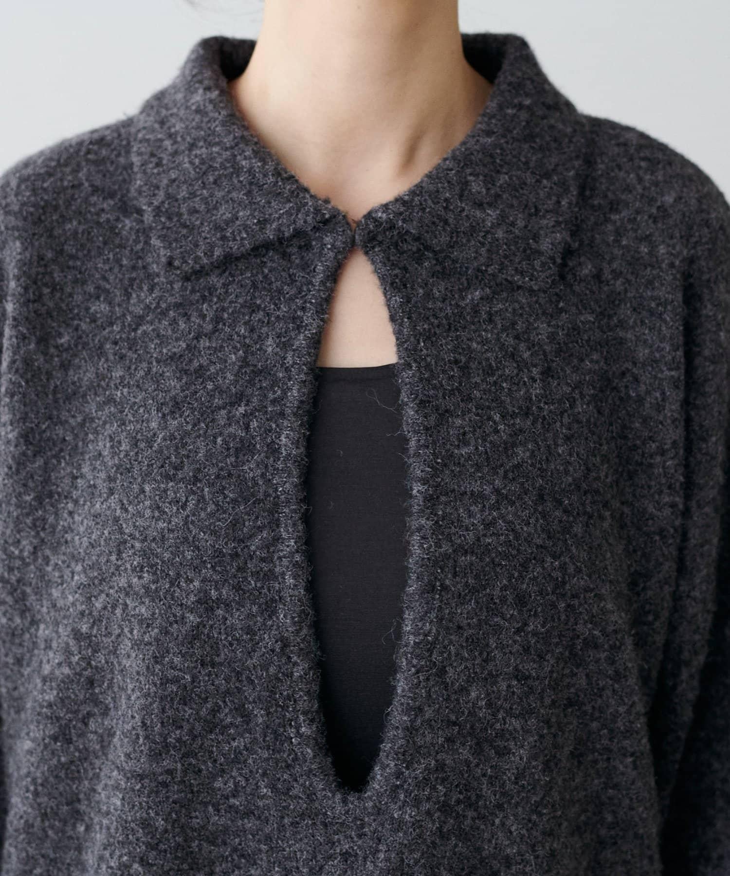 頸部有鉤扣,扣上後可作為有領針織衫穿著、