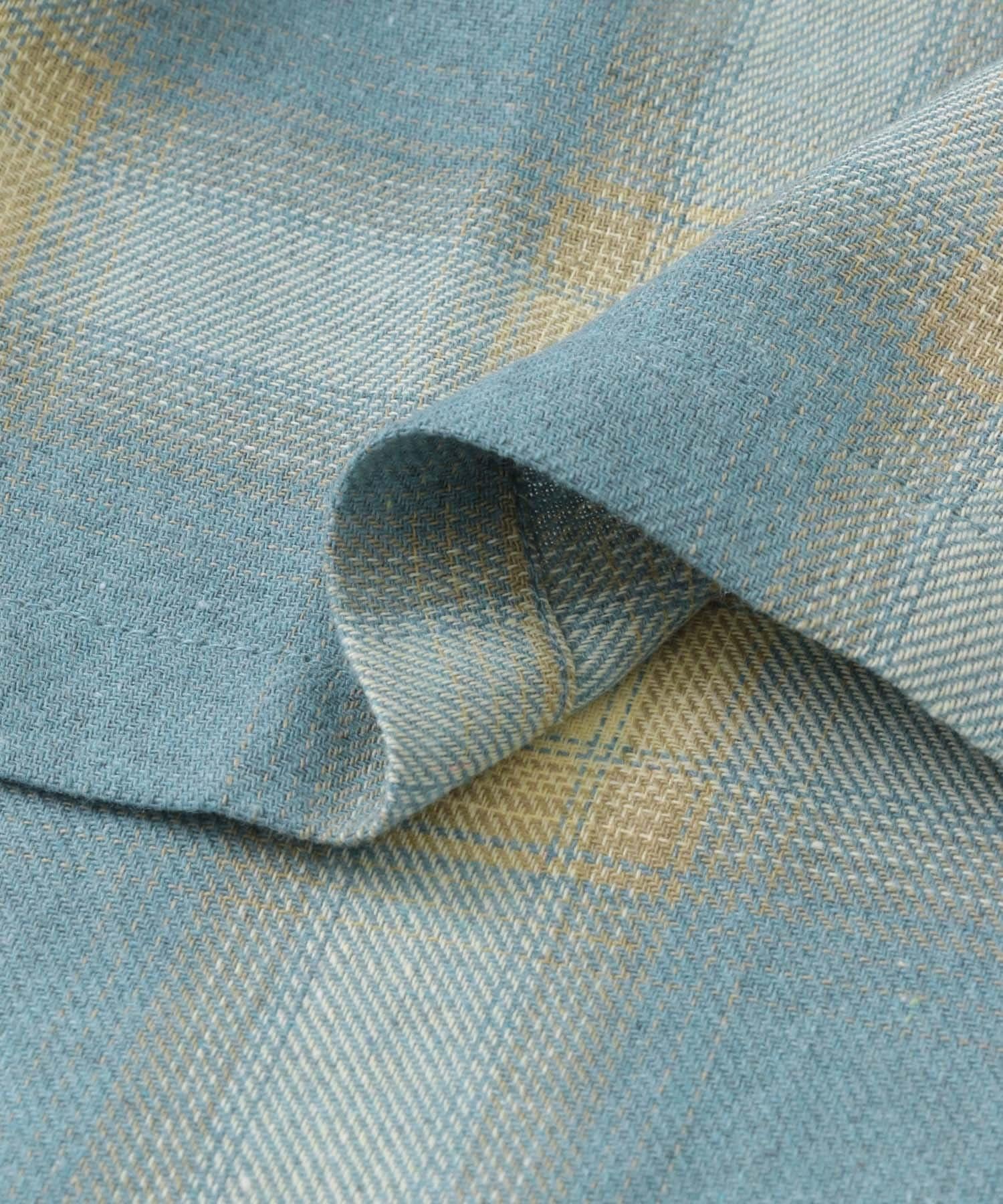面料表面乾爽粗糙,質感如同舊衣服。人造絲混紡面料使其具有適度的潔淨感和垂墜感。