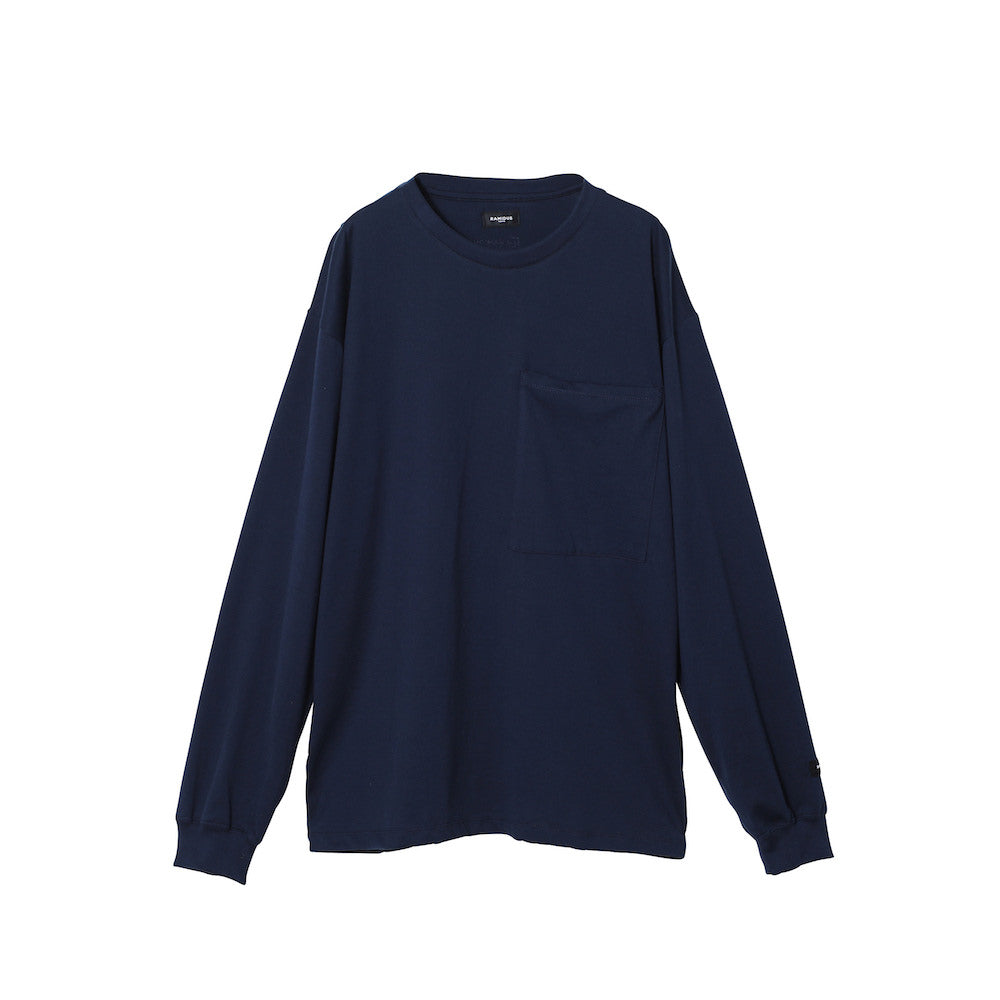 RAMIDUS原創長袖T恤,輪廓略大,設計簡單,使用GIZA棉基紗線,儘管是棉,但有優雅的光澤和柔軟的質地。有垂直的前袋。