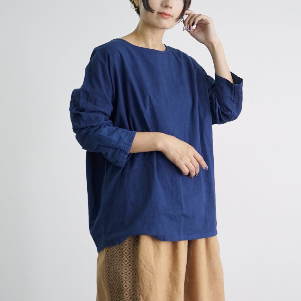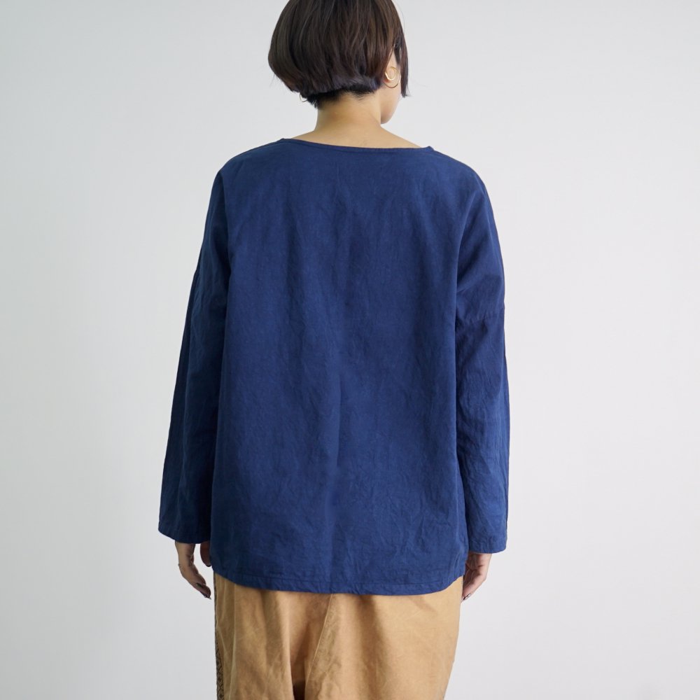 重量:約 176 克 [材質] 棉 85%、木棉 15%(靜岡縣產) [染色] UZUiRO / 靛藍染色(印度靛藍) [縫製] 愛知縣 *布料中的棉花廢料信息 由於原材料的特性,可能會有一些飛絮、汙染和棉花廢料。