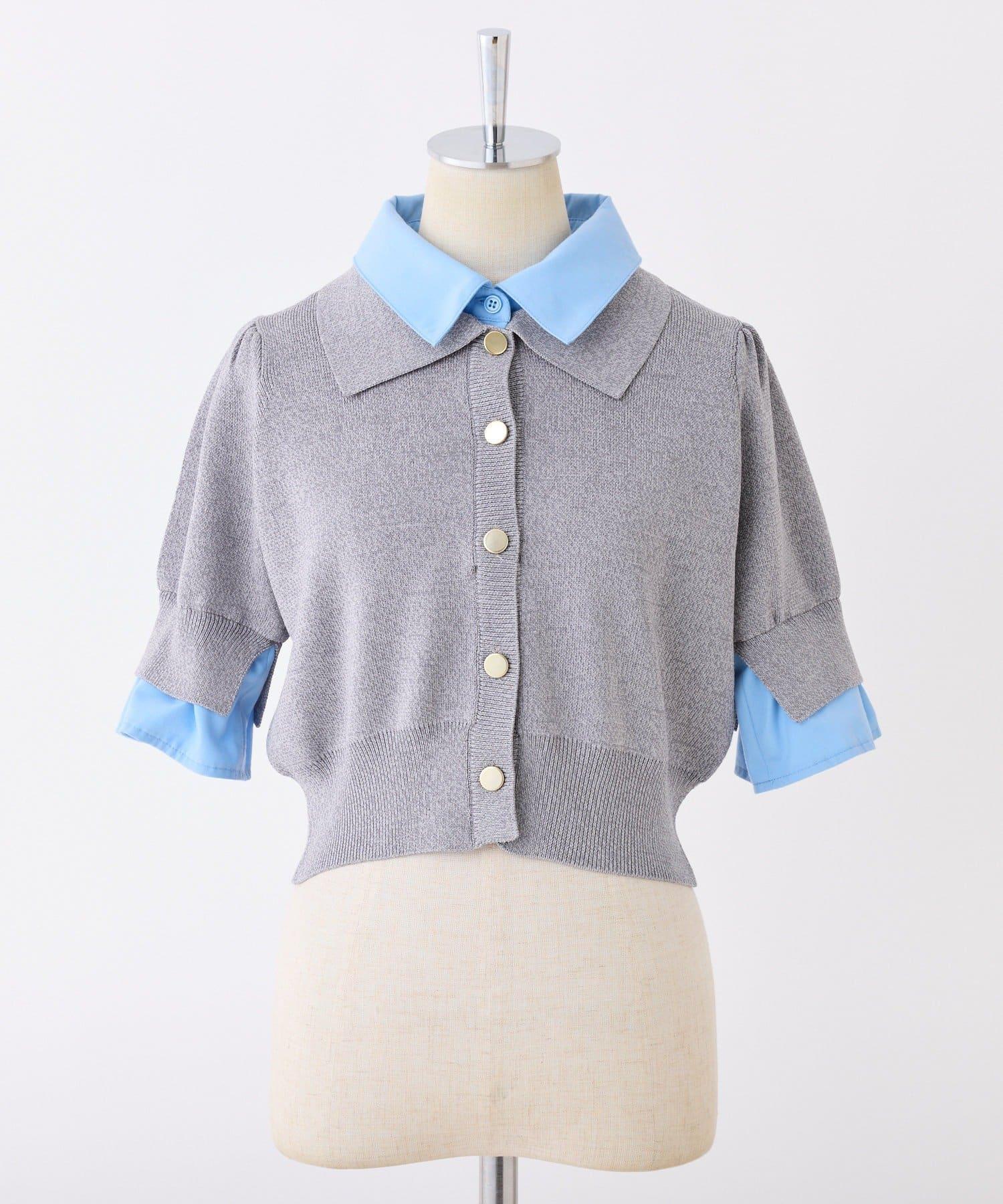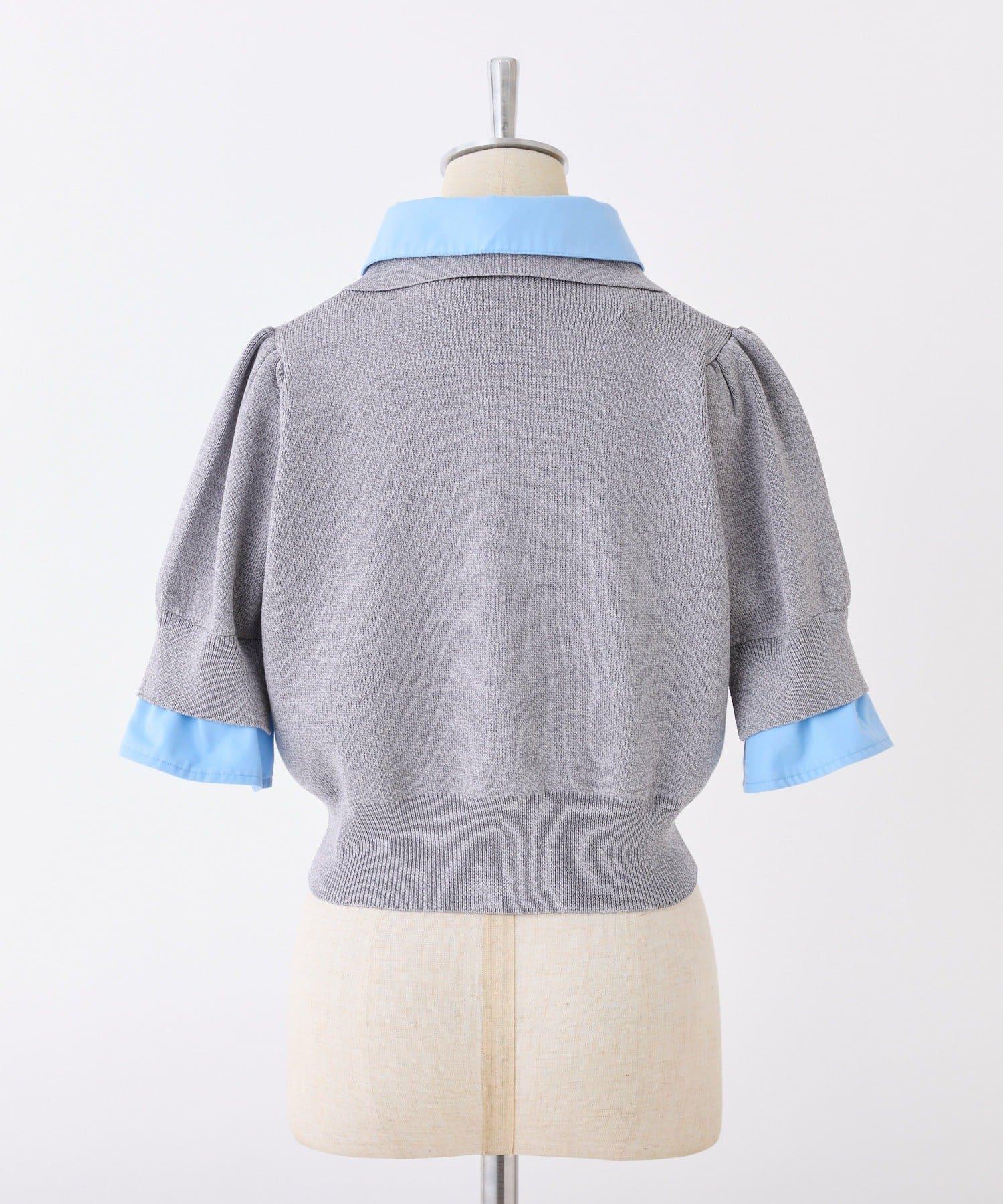 本季流行/拼接領短袖針織衫