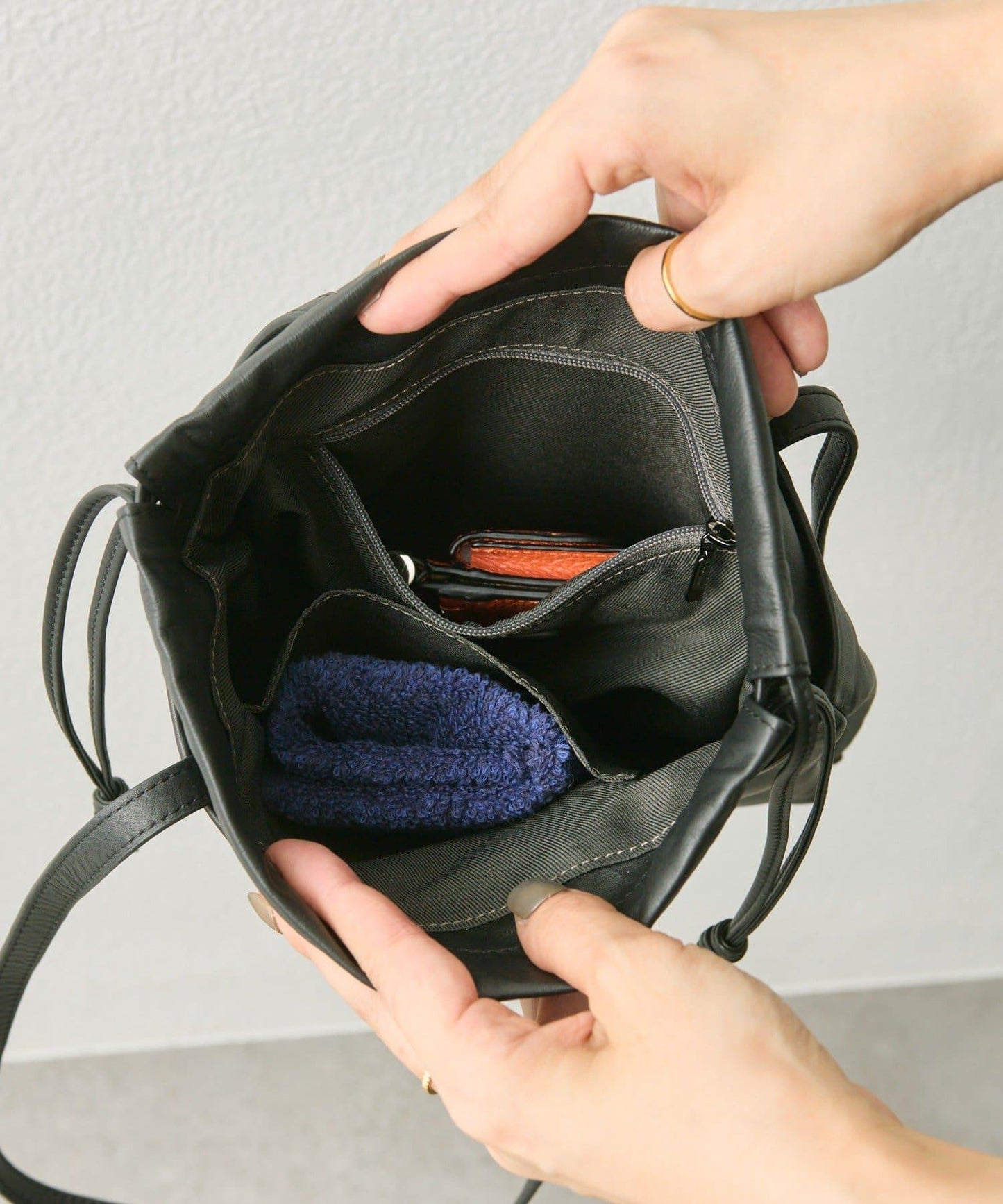 包包有兩種佩戴方式:抽繩包或長方形包。