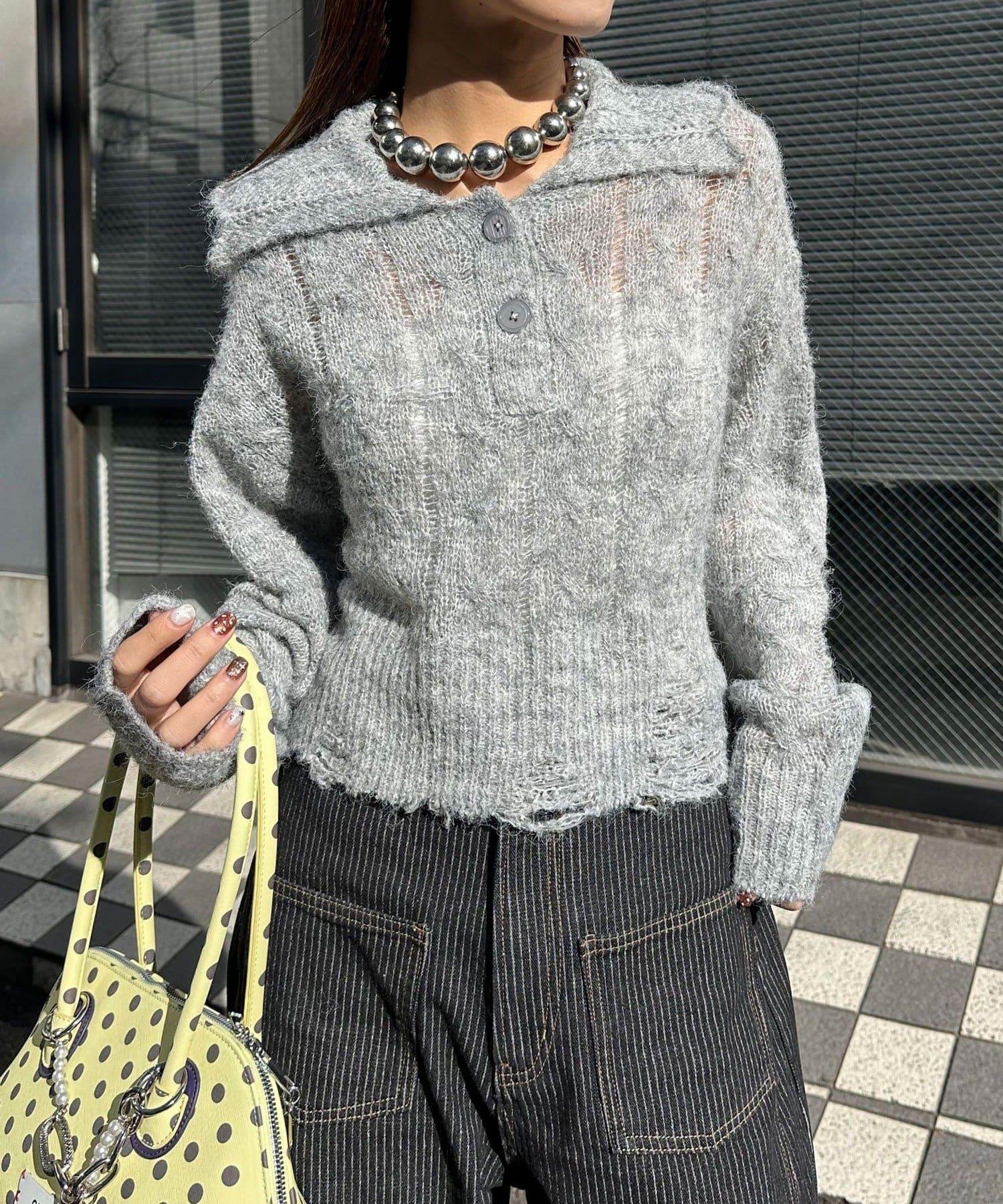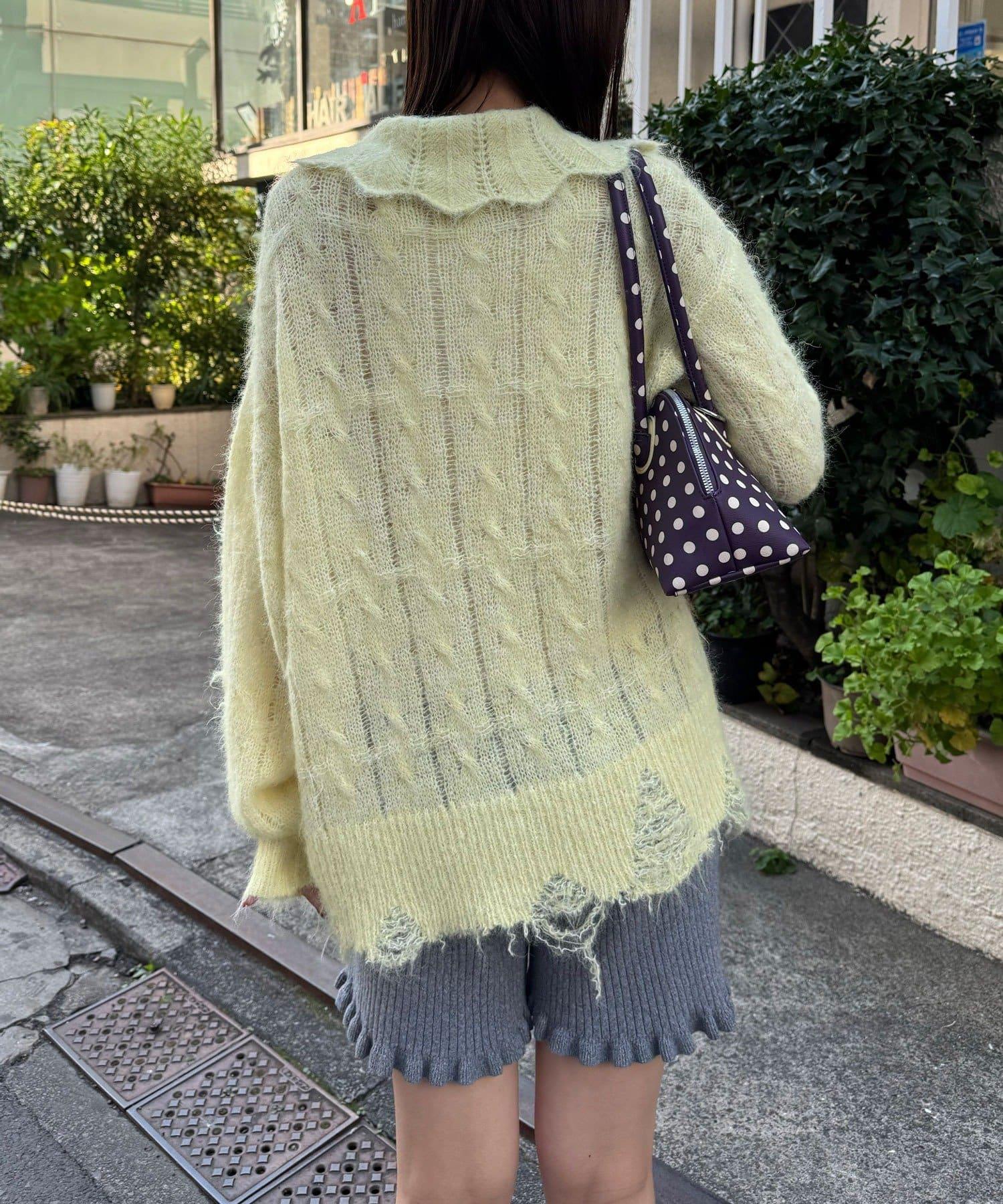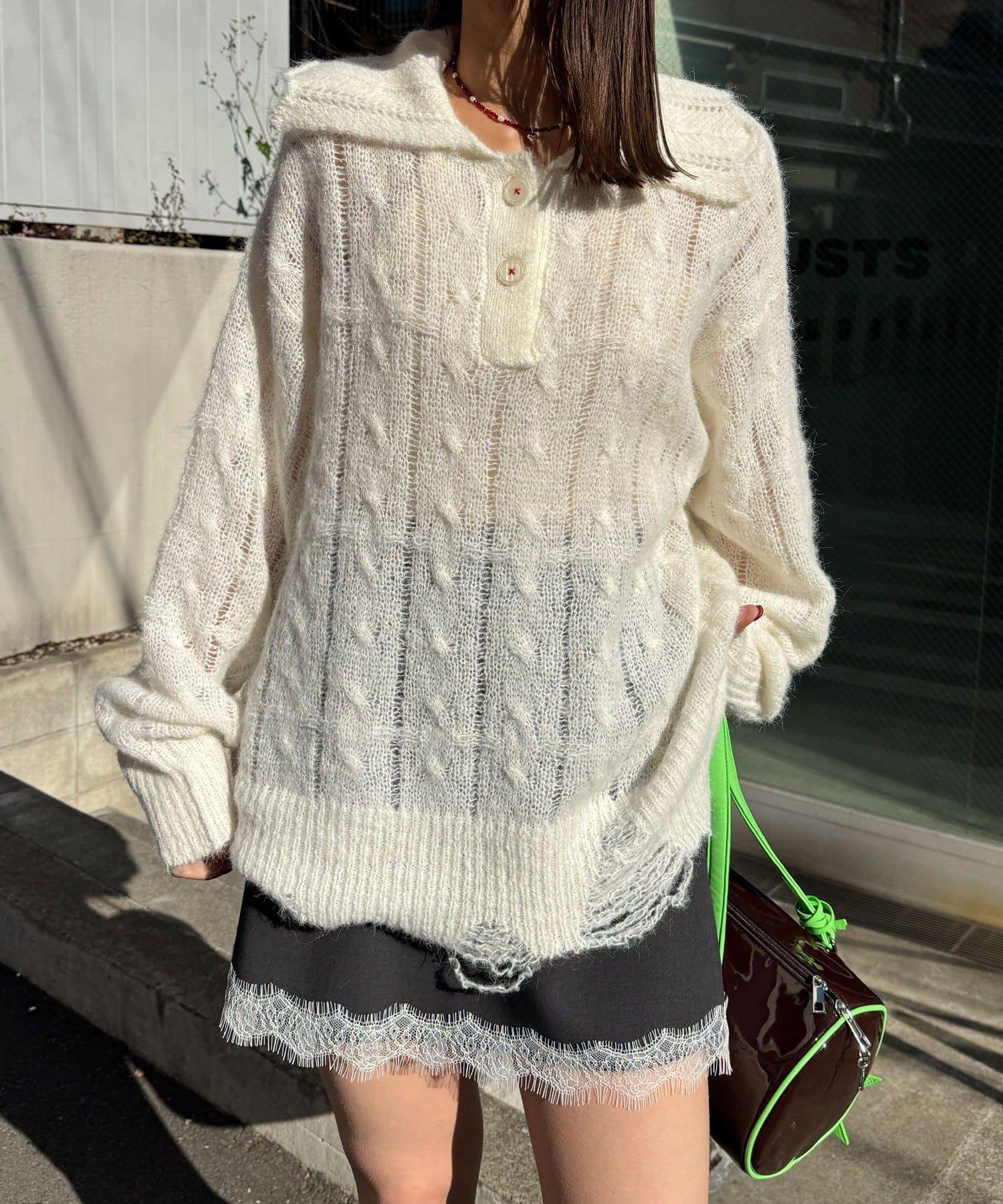 針織圖案的立體感和透明度巧妙地重疊在一起,創造出一件從正面和背面都能表現的作品。